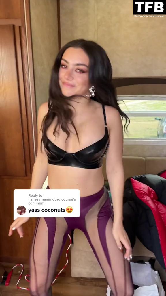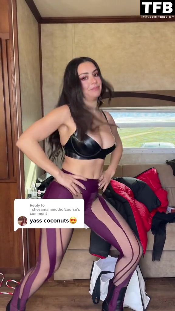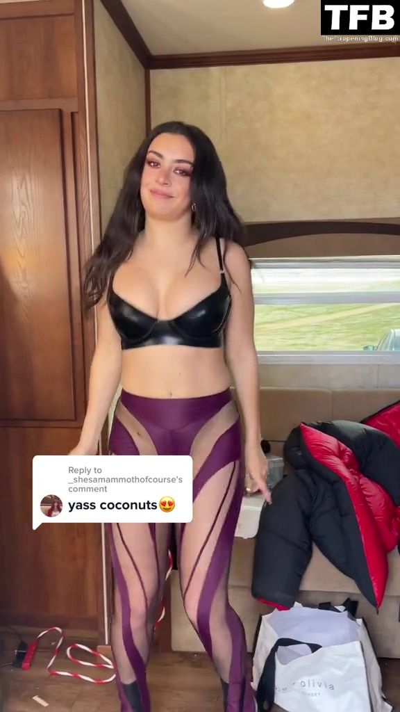La cantante Charli XCX mostra il suo seno sexy che rimbalza nel video TikTok qui sotto, 29/01/2022.