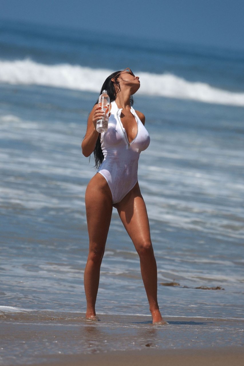 Playboy Playmate Charlie Riina (34) mostra il suo corpo sexy in bikini con una tuta trasparente durante un servizio fotografico in spiaggia per 138 Water con il fotografo Lee LHGFX a Santa Monica, 25/11/2018.