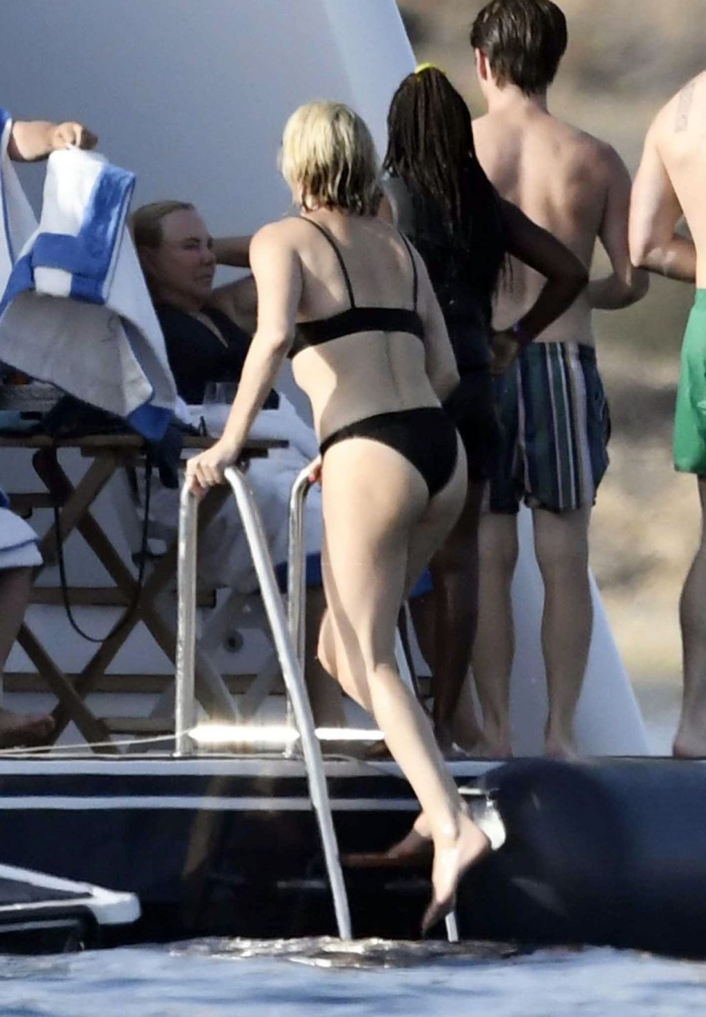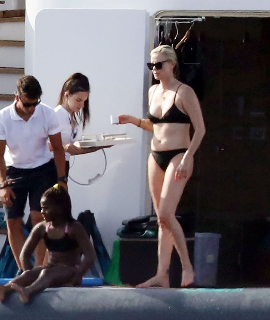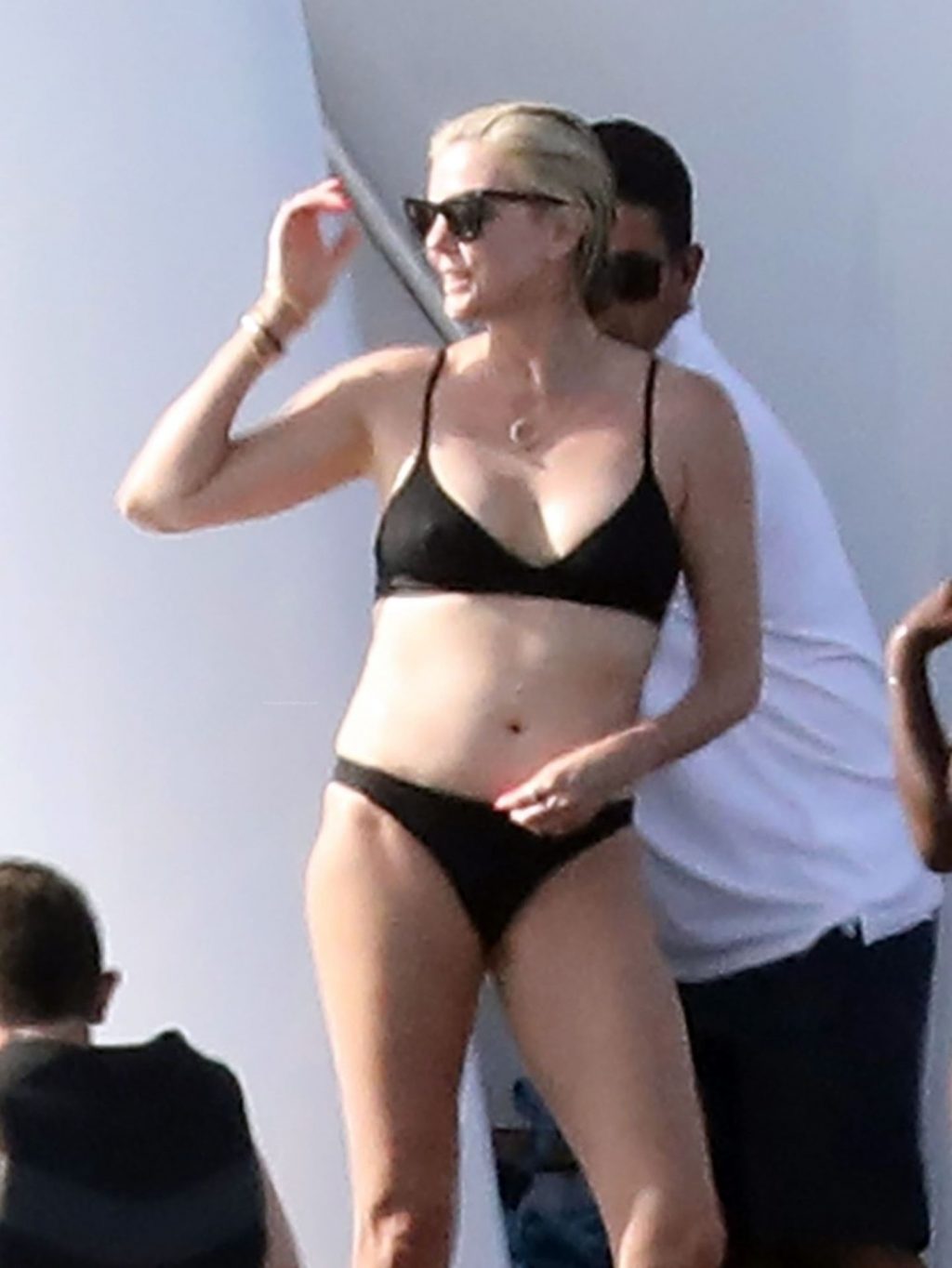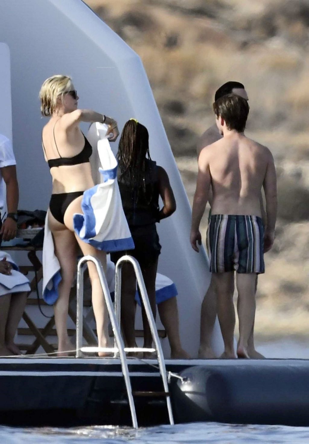 Mentre il sole splendeva sull’attrice, Charlize indossava il suo bikini nero mettendo in mostra la sua figura sexy su uno yacht, navigando nel Mar Egeo.