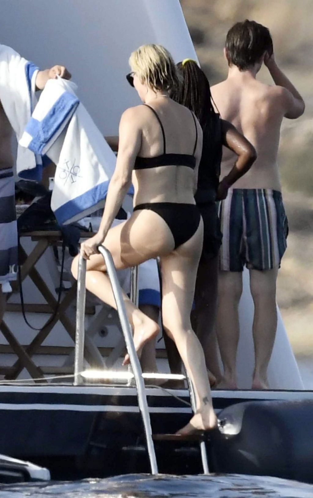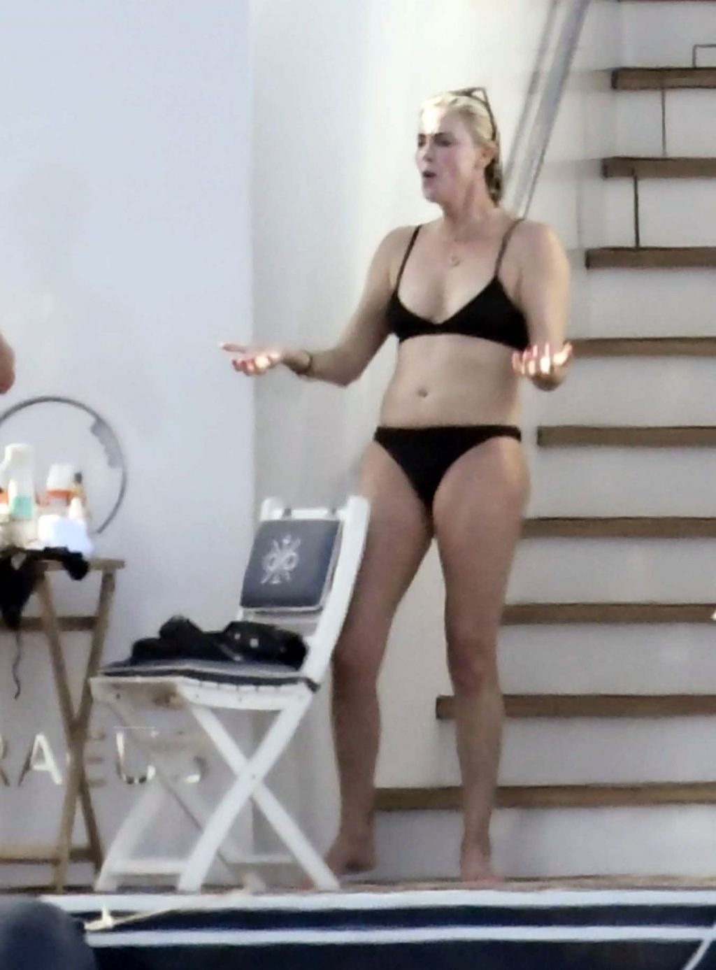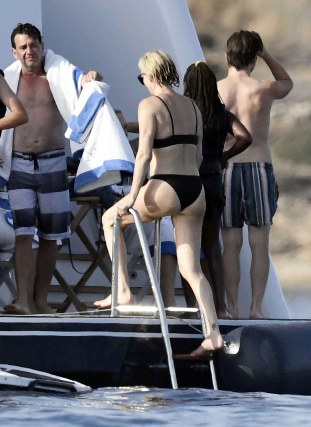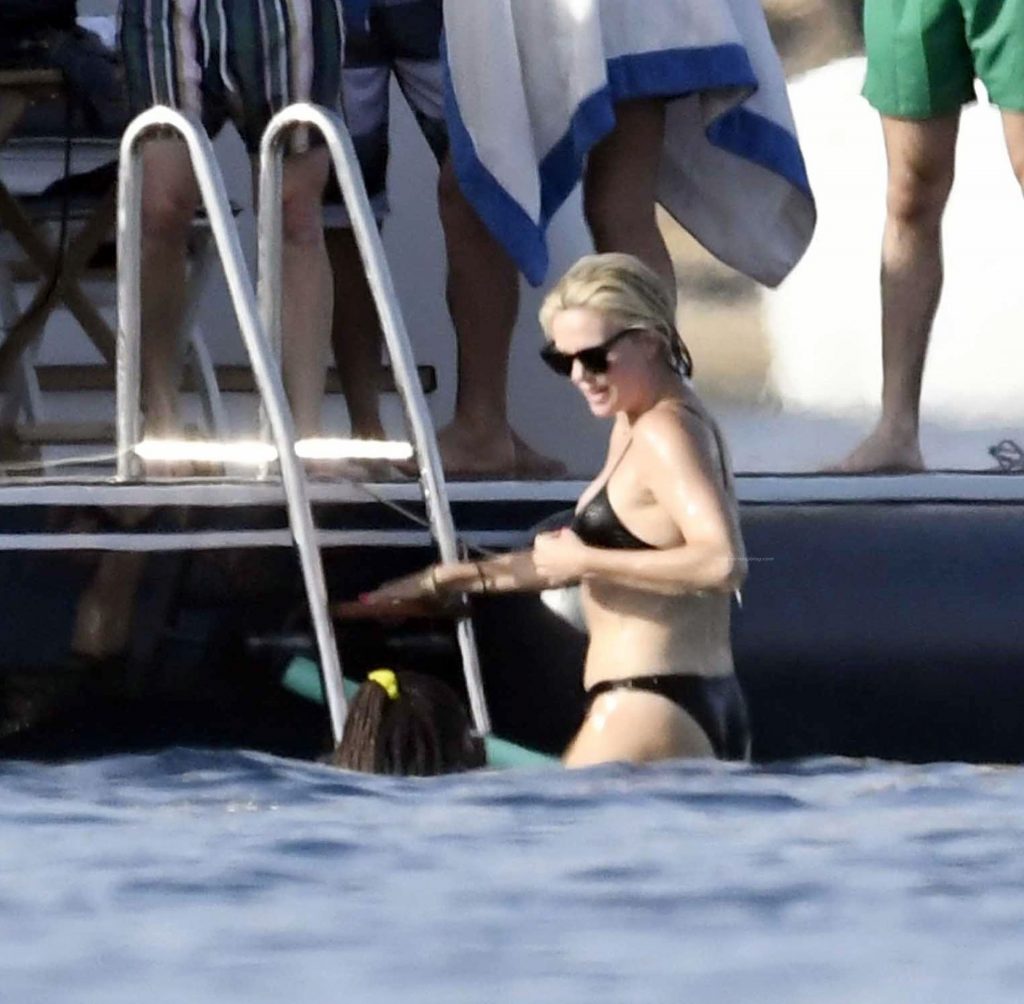 Mentre il sole splendeva sull’attrice, Charlize indossava il suo bikini nero mettendo in mostra la sua figura sexy su uno yacht, navigando nel Mar Egeo.