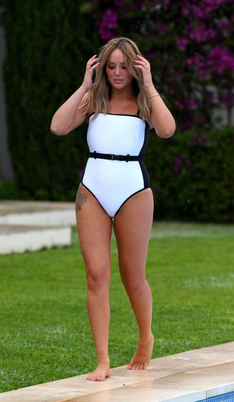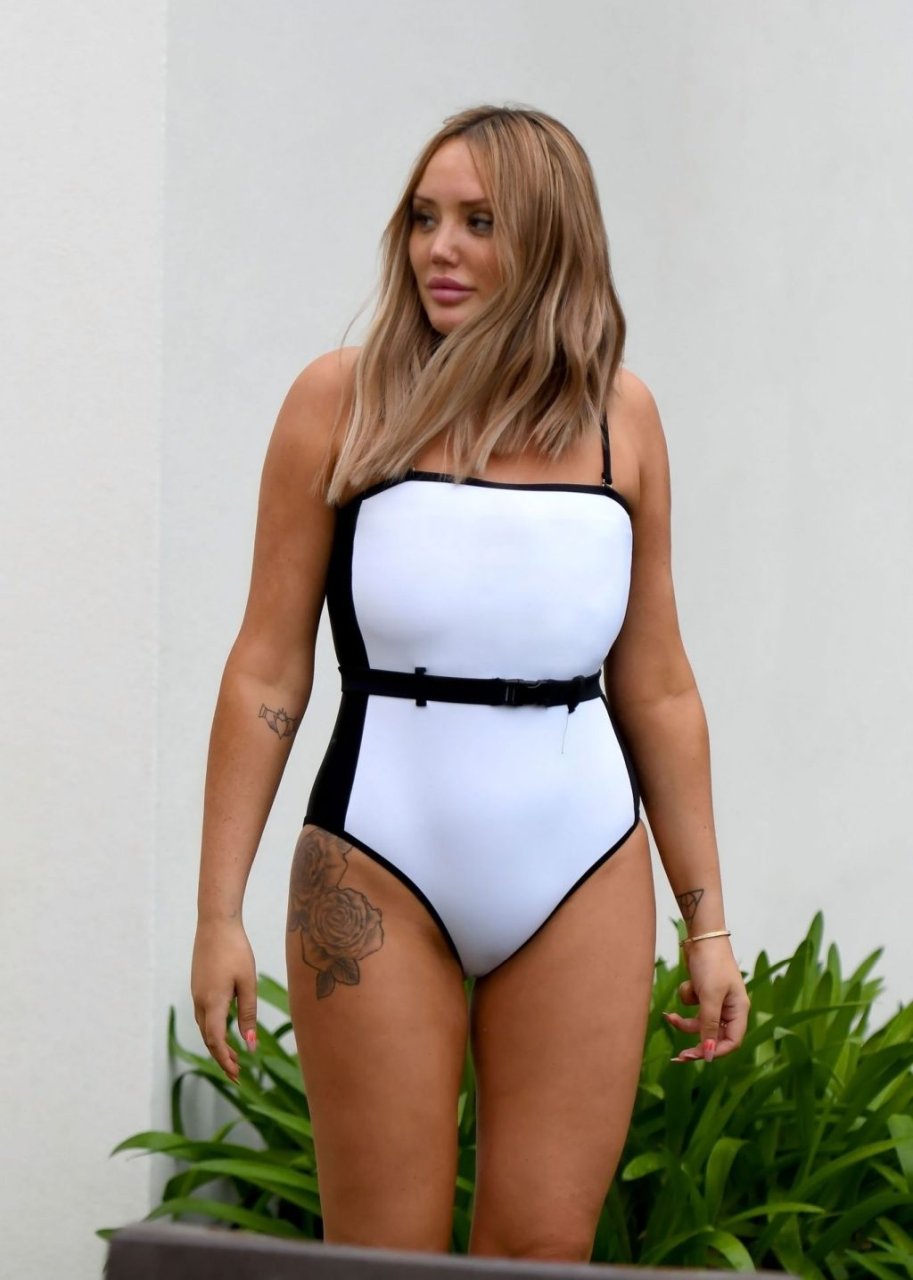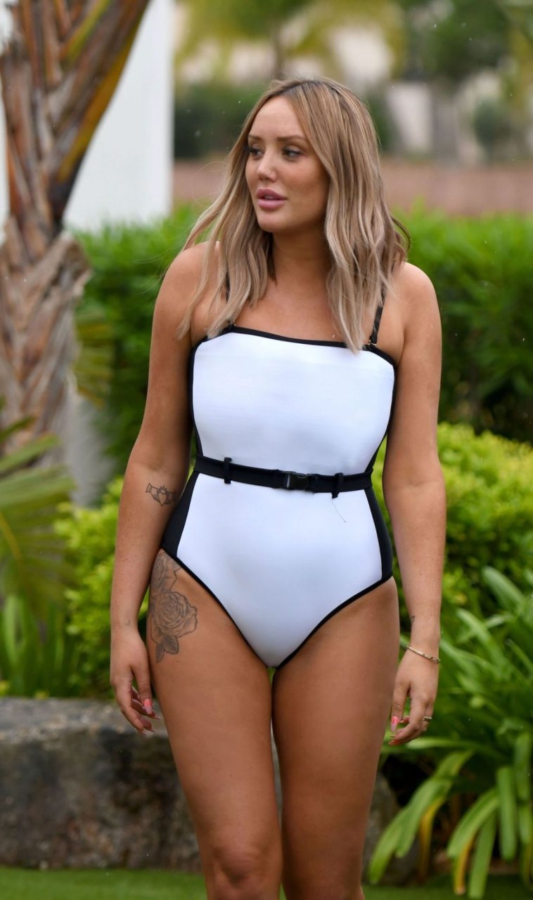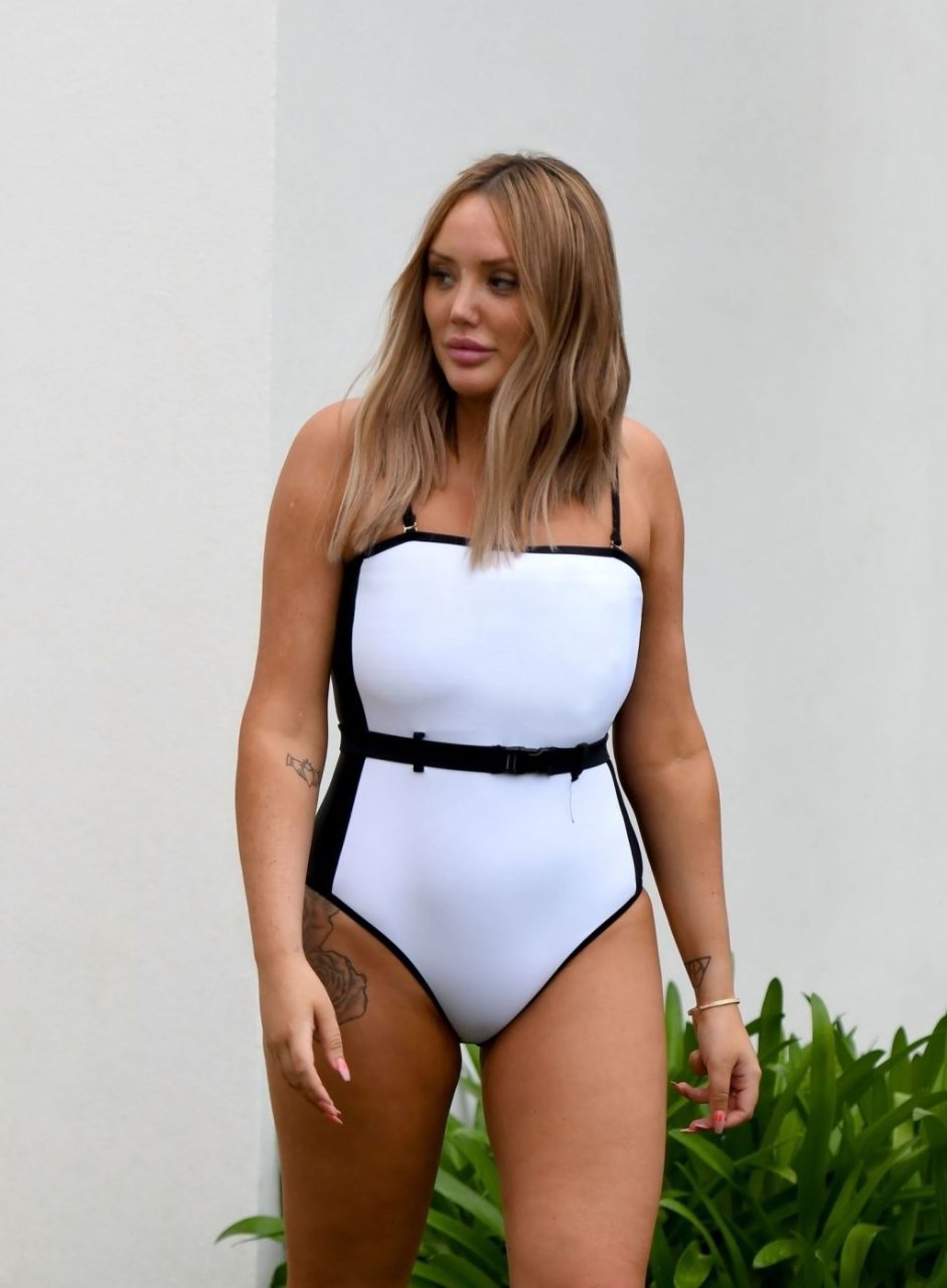 Charlotte Crosby è stata vista sfoggiare il suo nuovo corpo a Ibiza dopo aver rimosso gli impianti al seno un paio di settimane fa, dopo aver girato la terza serie del suo show in Brasile, 24/05/2019.