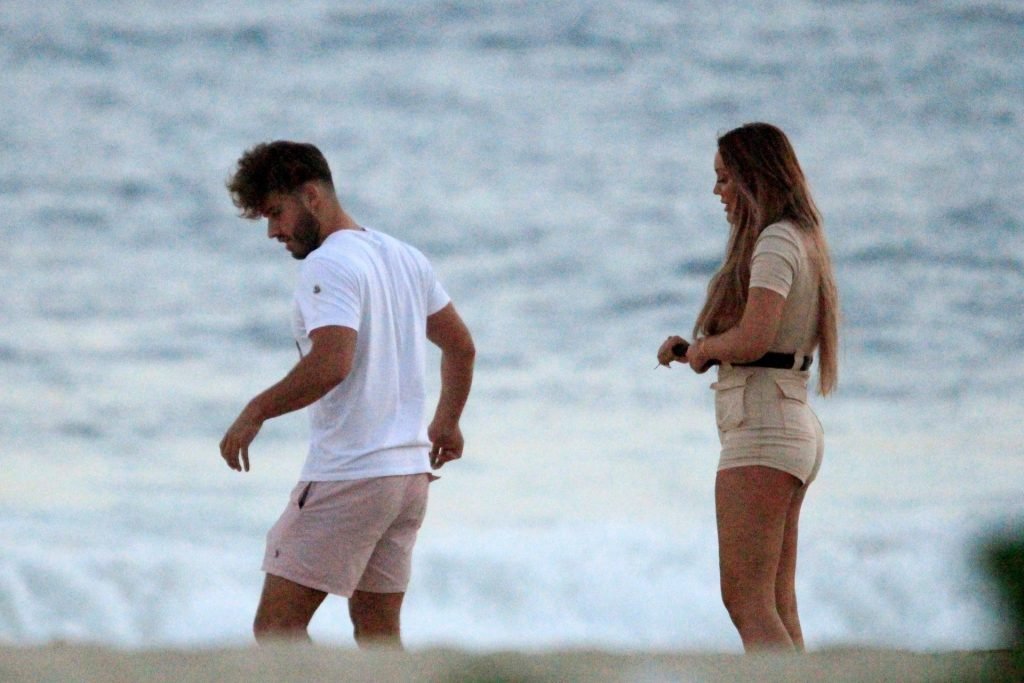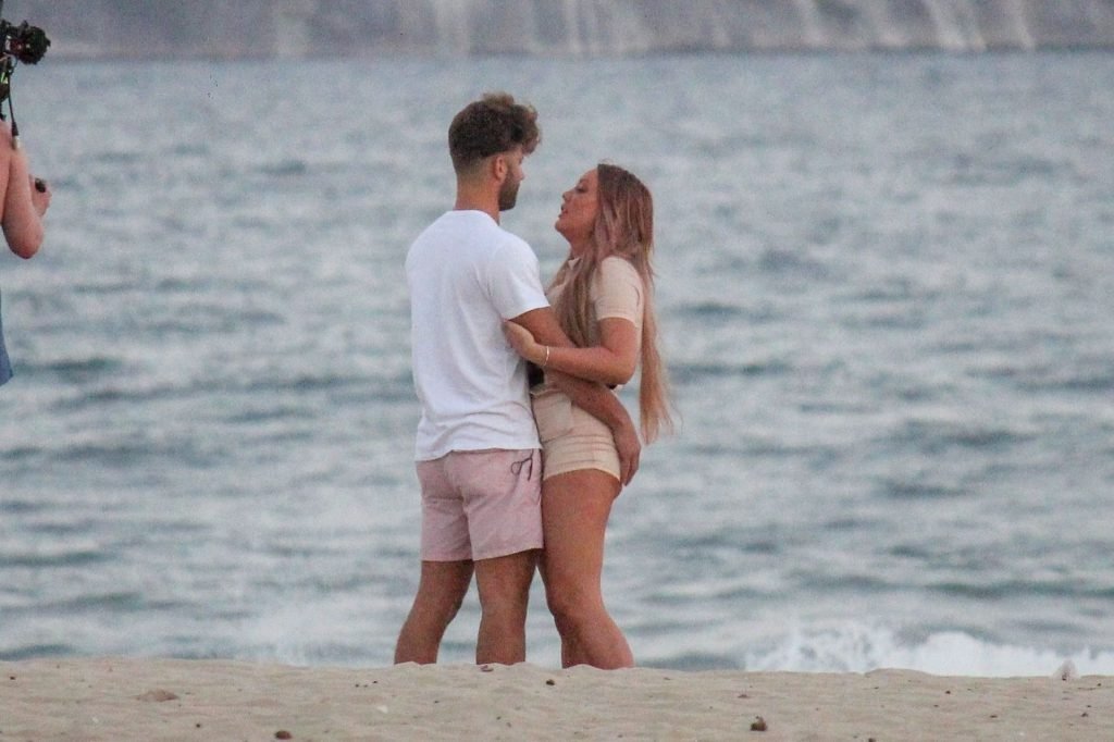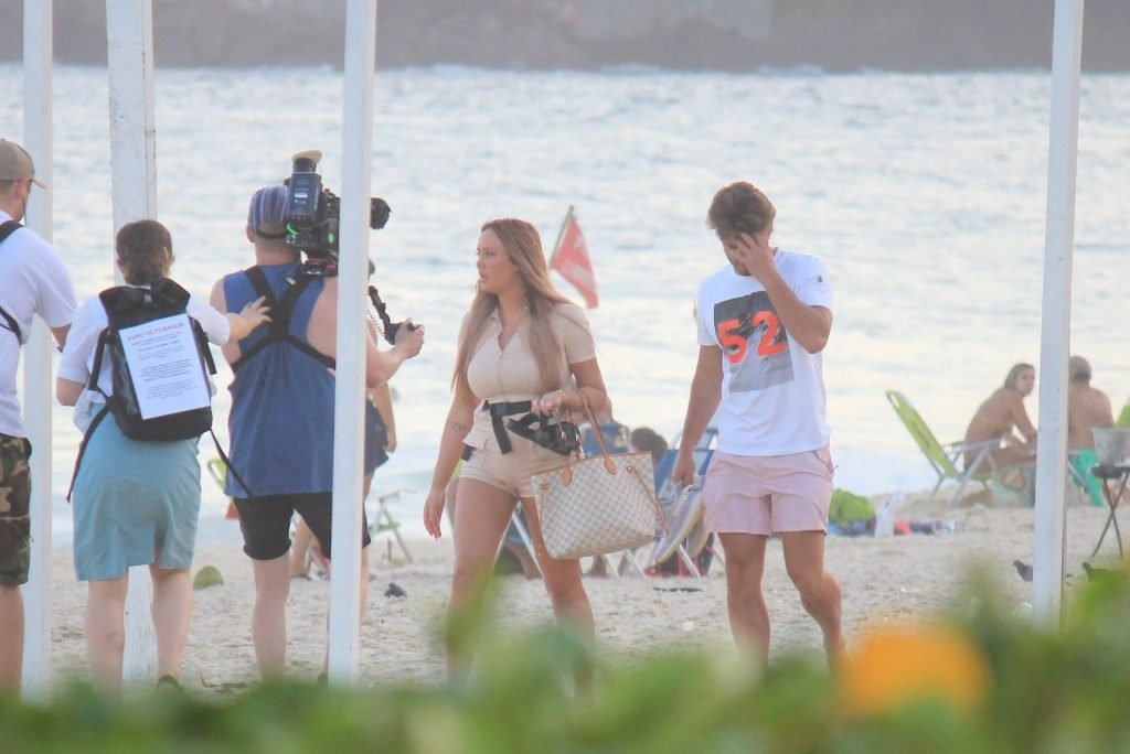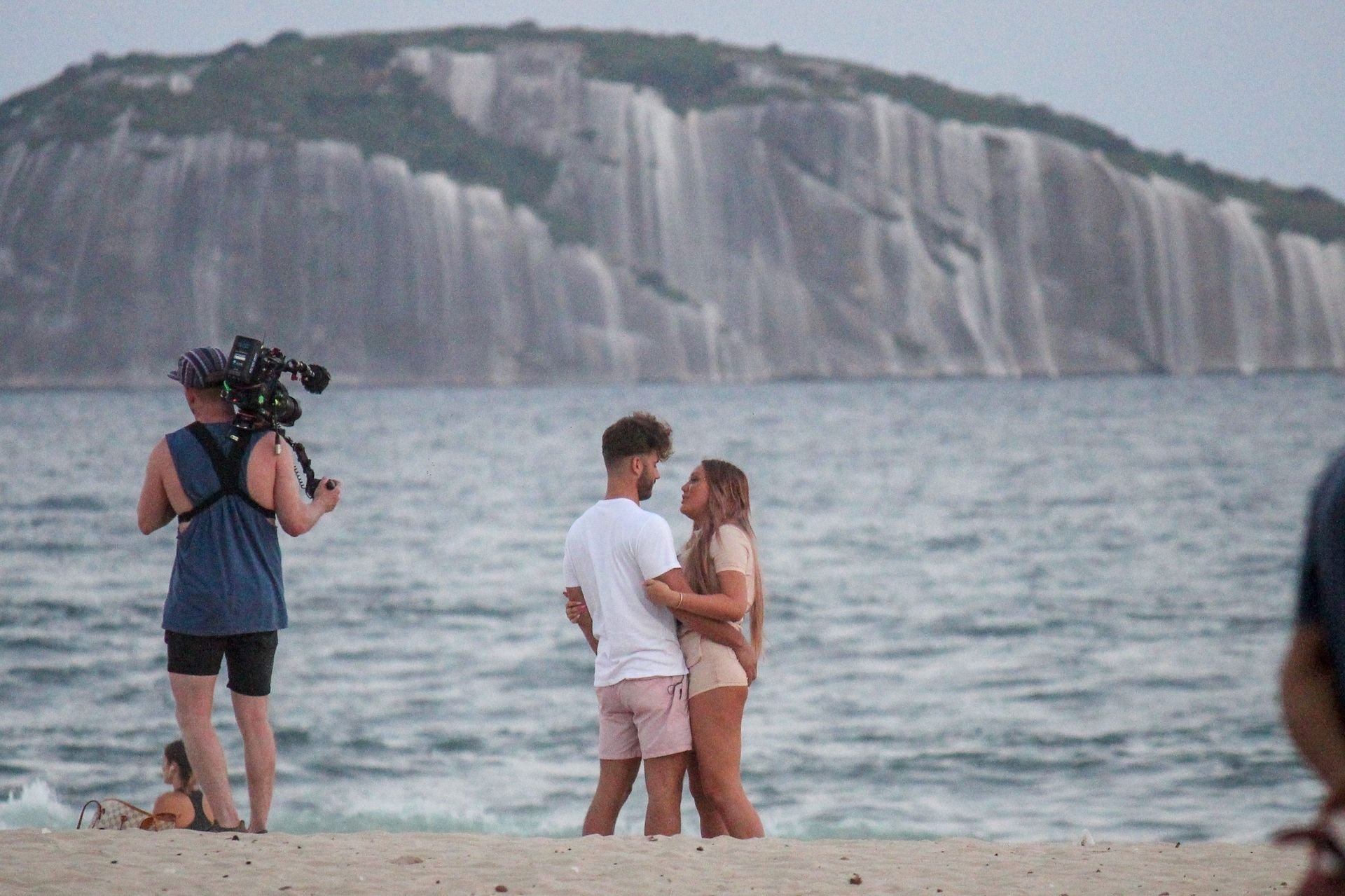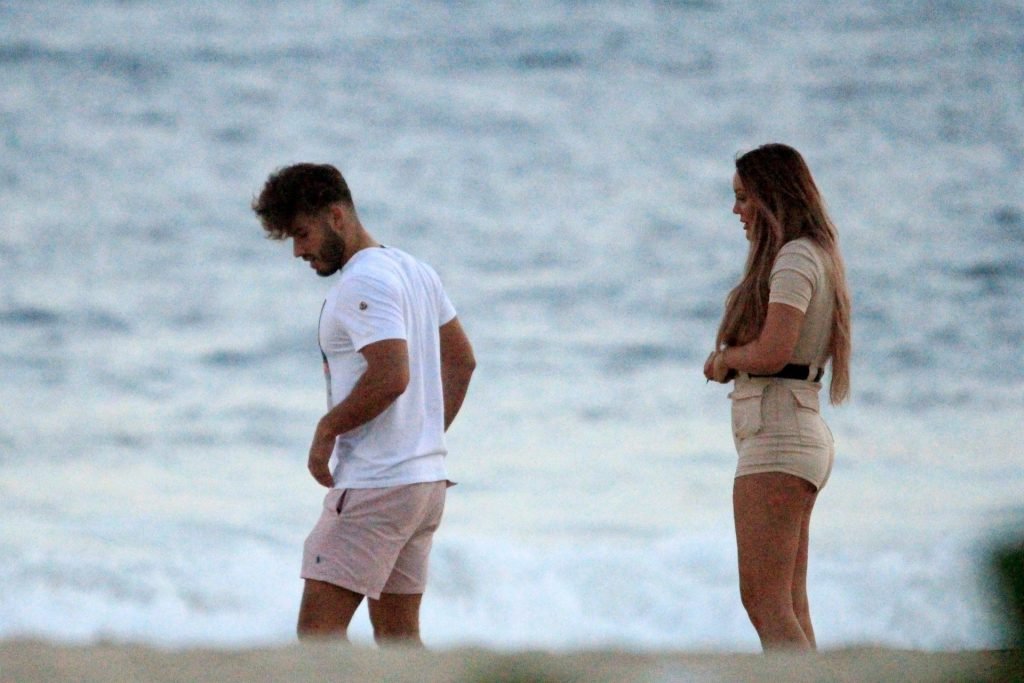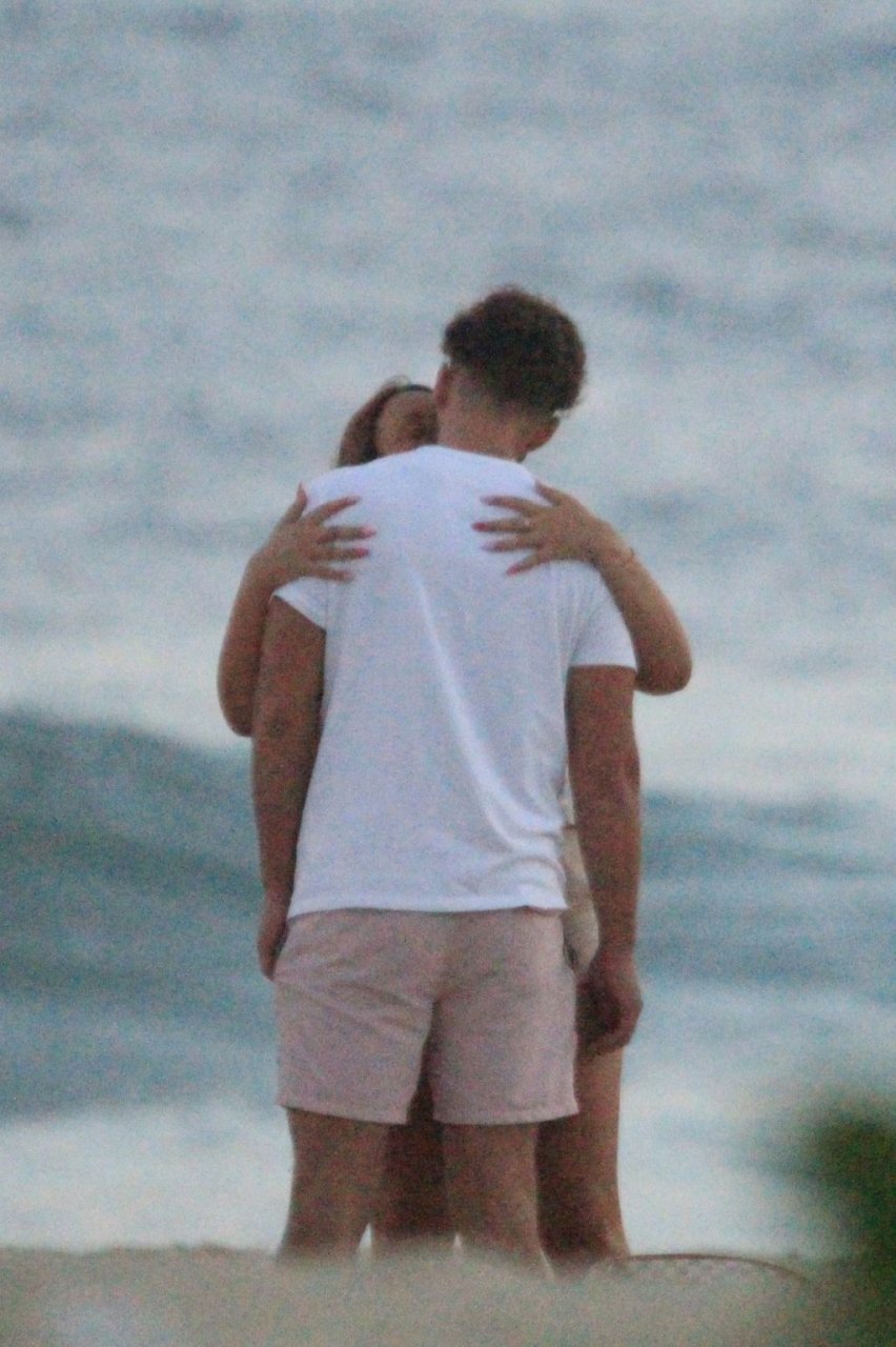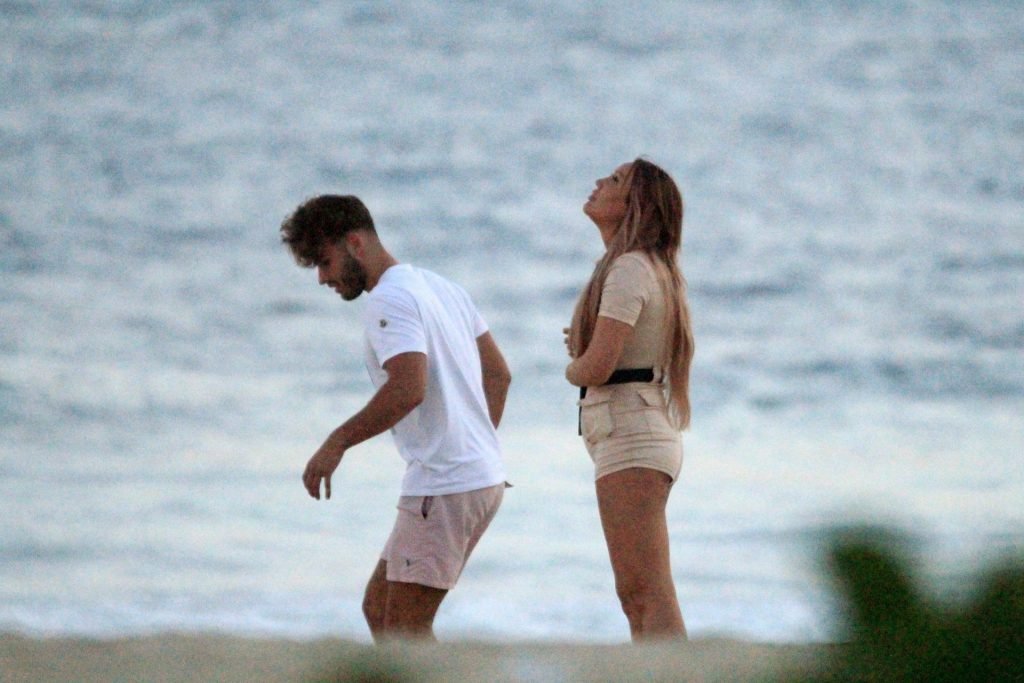 Charlotte Crosby e il suo uomo Joshua Ritchie si scaldano durante un romantico viaggio in spiaggia a Rio De Janeiro, 25/04/2019. Charlotte e Josh si scambiano effusioni mentre un fotografo cattura il momento. La figura di Charlotte appare incredibile con i pantaloncini color bronzo.