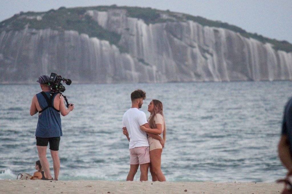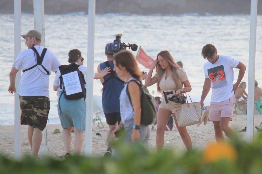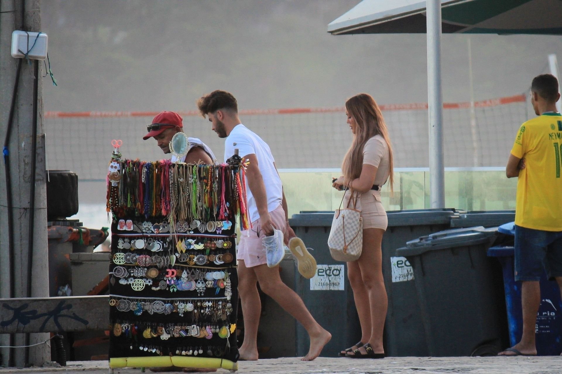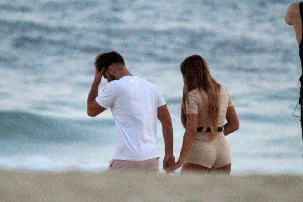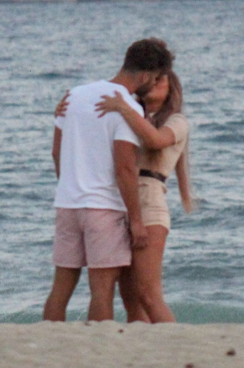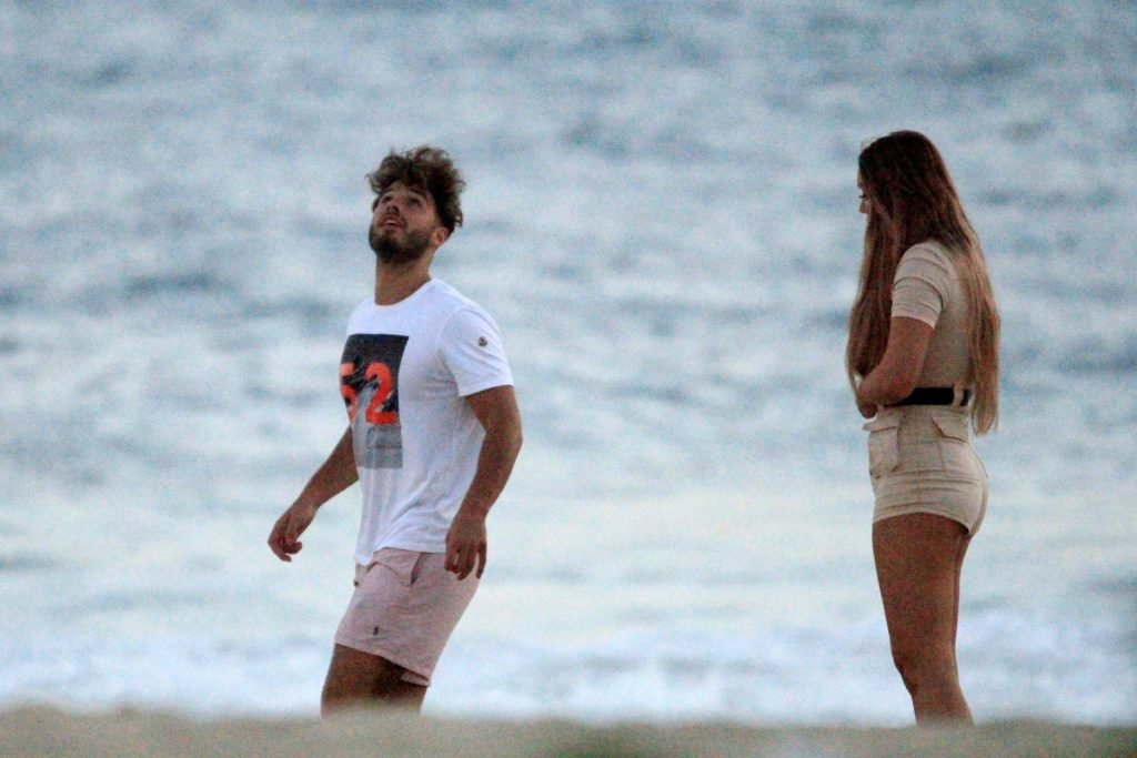 Charlotte Crosby e il suo uomo Joshua Ritchie si scaldano durante un romantico viaggio in spiaggia a Rio De Janeiro, 25/04/2019. Charlotte e Josh si scambiano effusioni mentre un fotografo cattura il momento. La figura di Charlotte appare incredibile con i pantaloncini color bronzo.