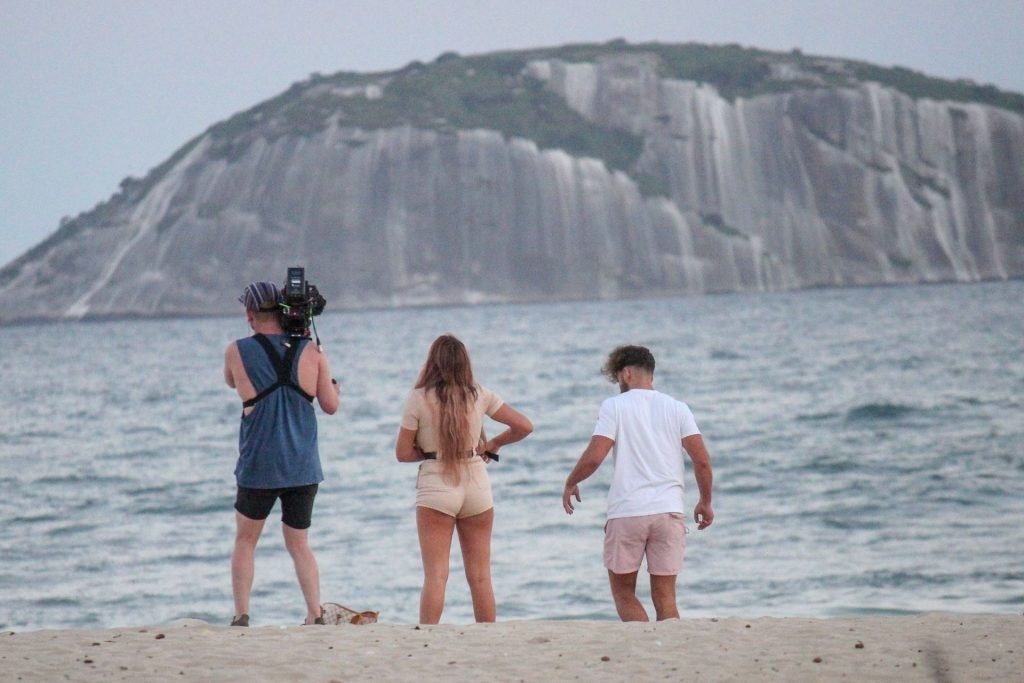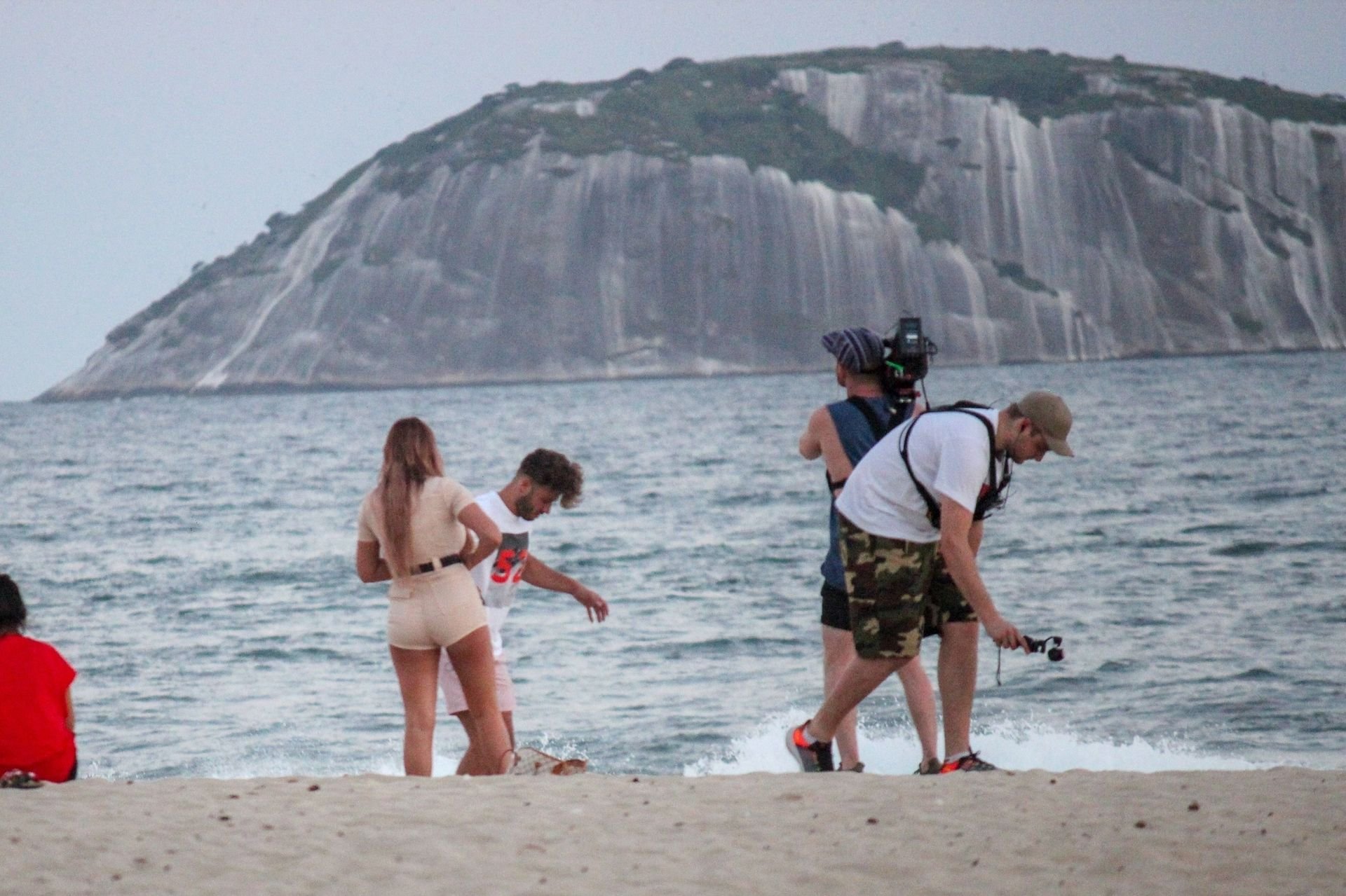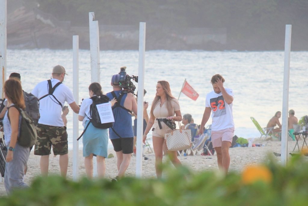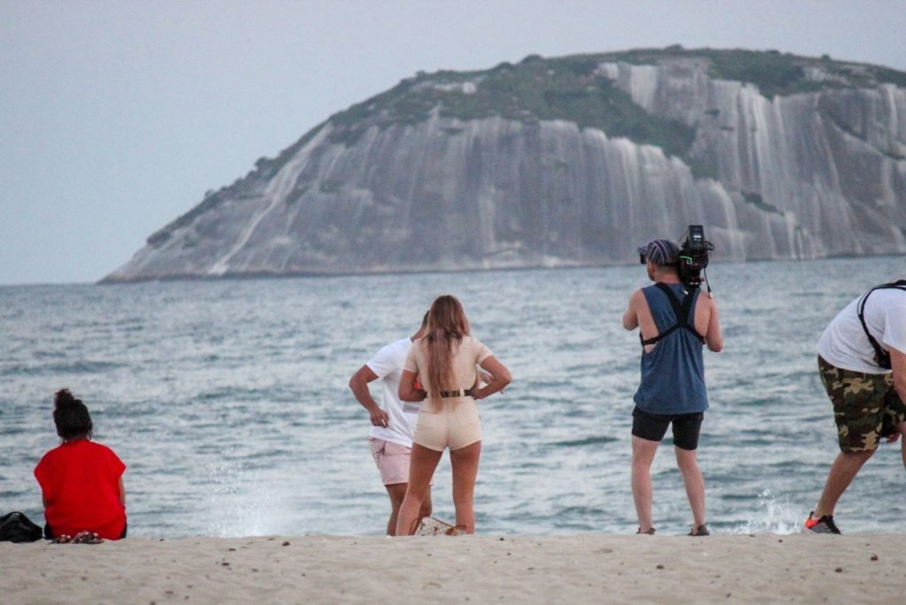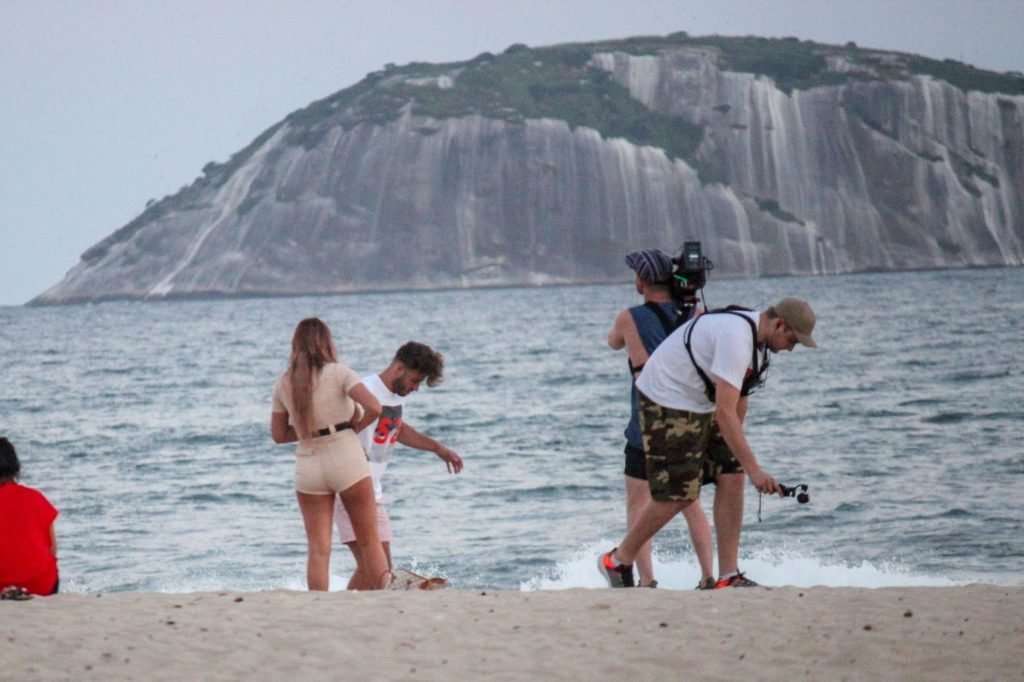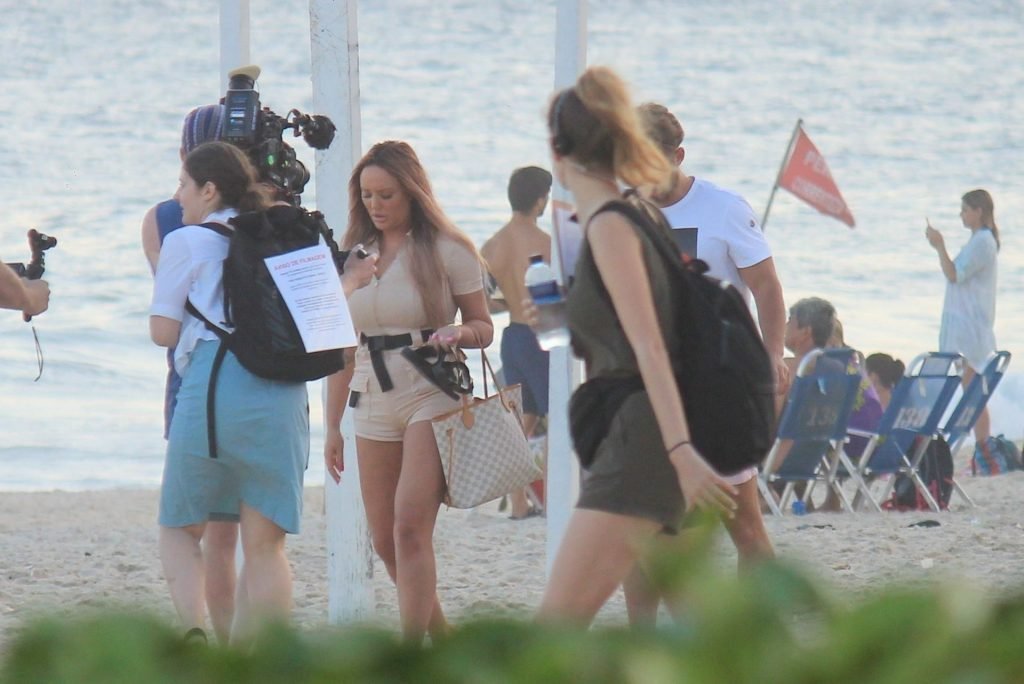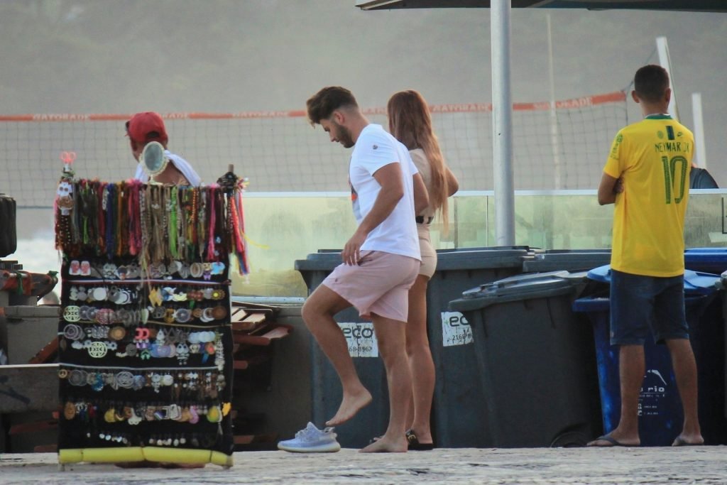 Charlotte Crosby e il suo uomo Joshua Ritchie si scaldano durante un romantico viaggio in spiaggia a Rio De Janeiro, 25/04/2019. Charlotte e Josh si scambiano effusioni mentre un fotografo cattura il momento. La figura di Charlotte appare incredibile con i pantaloncini color bronzo.