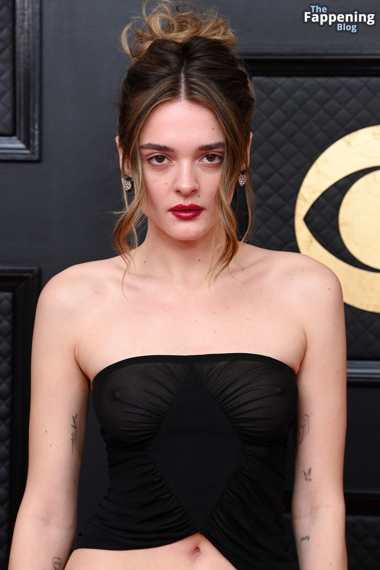 Charlotte Lawrence è stata vista senza reggiseno alla 65ª Edizione dei Premi GRAMMY tenutasi al Crypto.com Arena di Los Angeles, 02/05/2023.