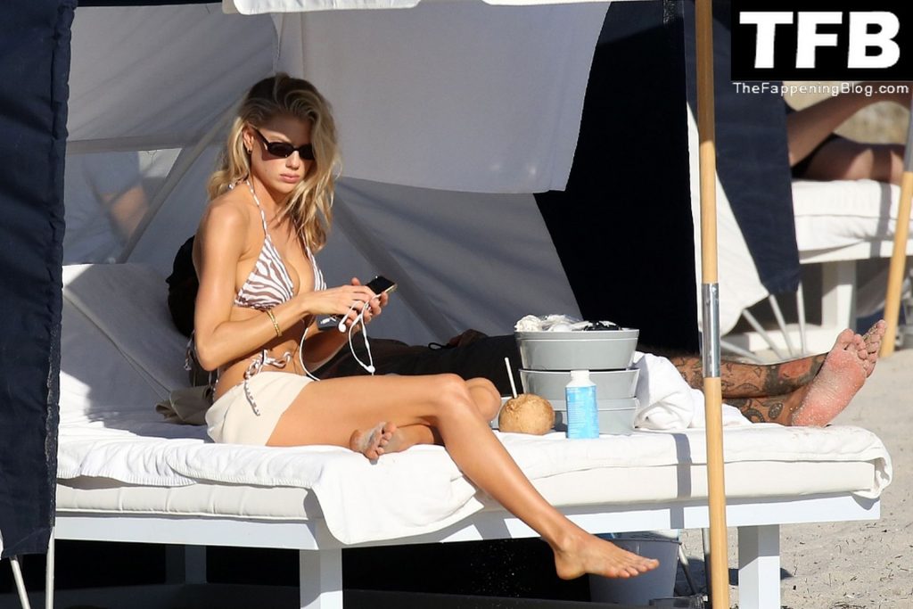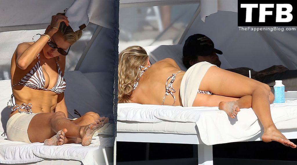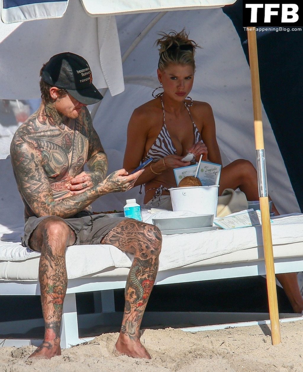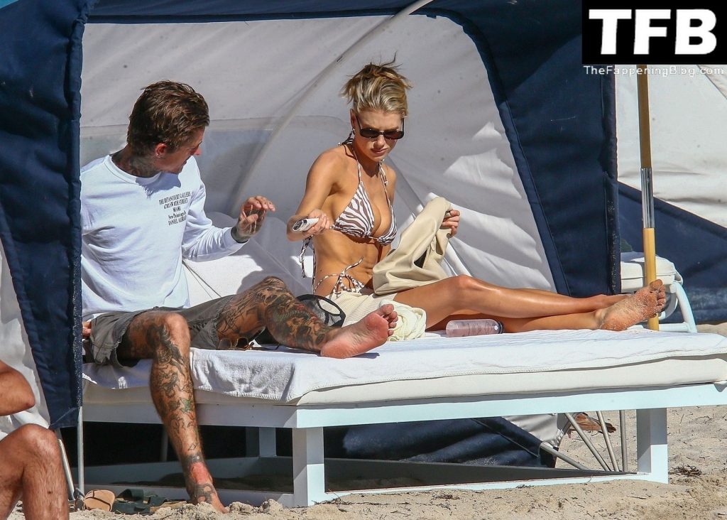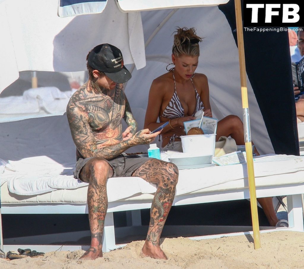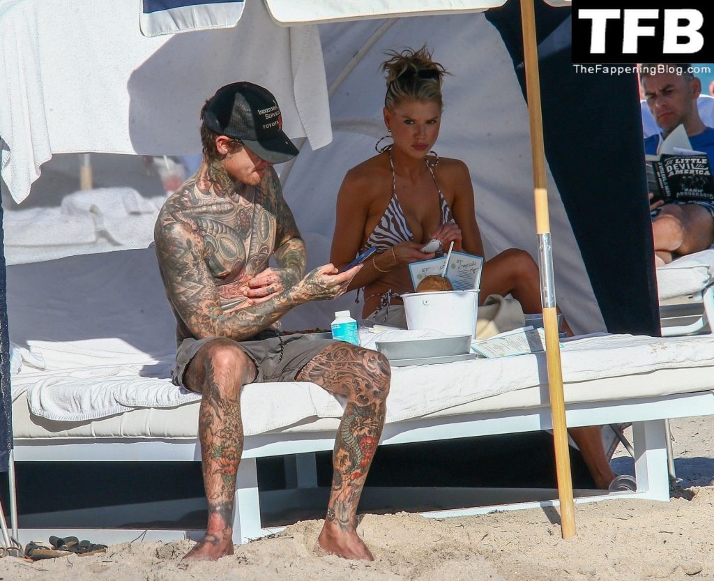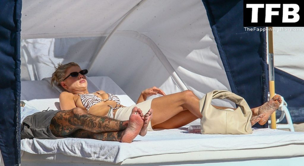 La star di The Fappening Charlotte McKinney mostra la sua figura snella in un bikini con stampa animalier mentre si rilassa sulla spiaggia con il suo fidanzato pesantemente tatuato Nathan Kotechko, mentre Art Basel si conclude a Miami Beach, 12/05/2021.