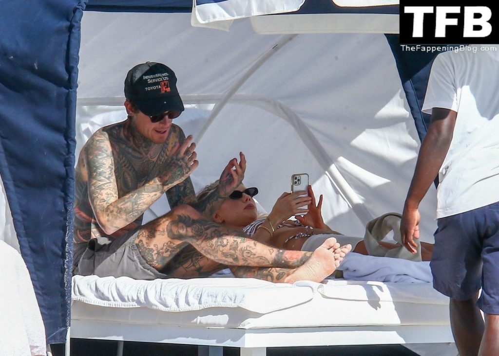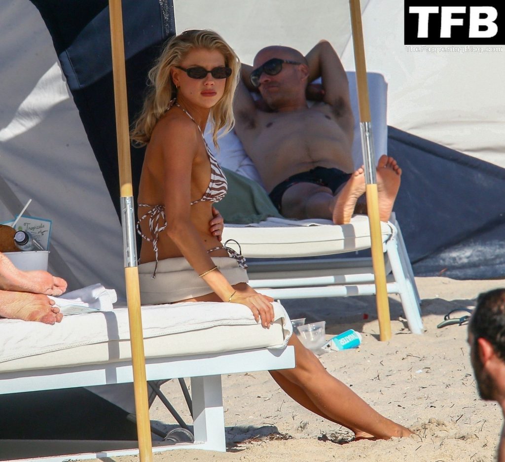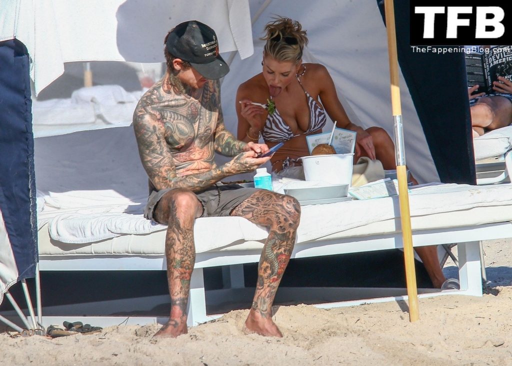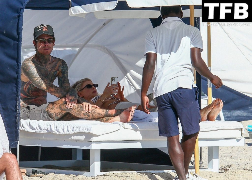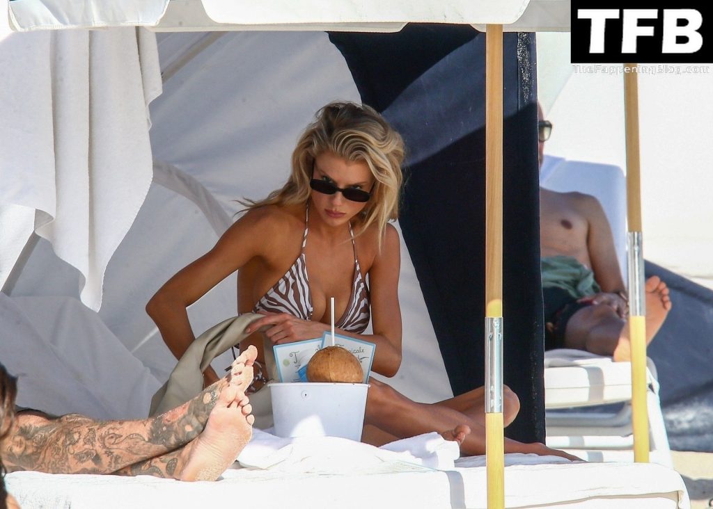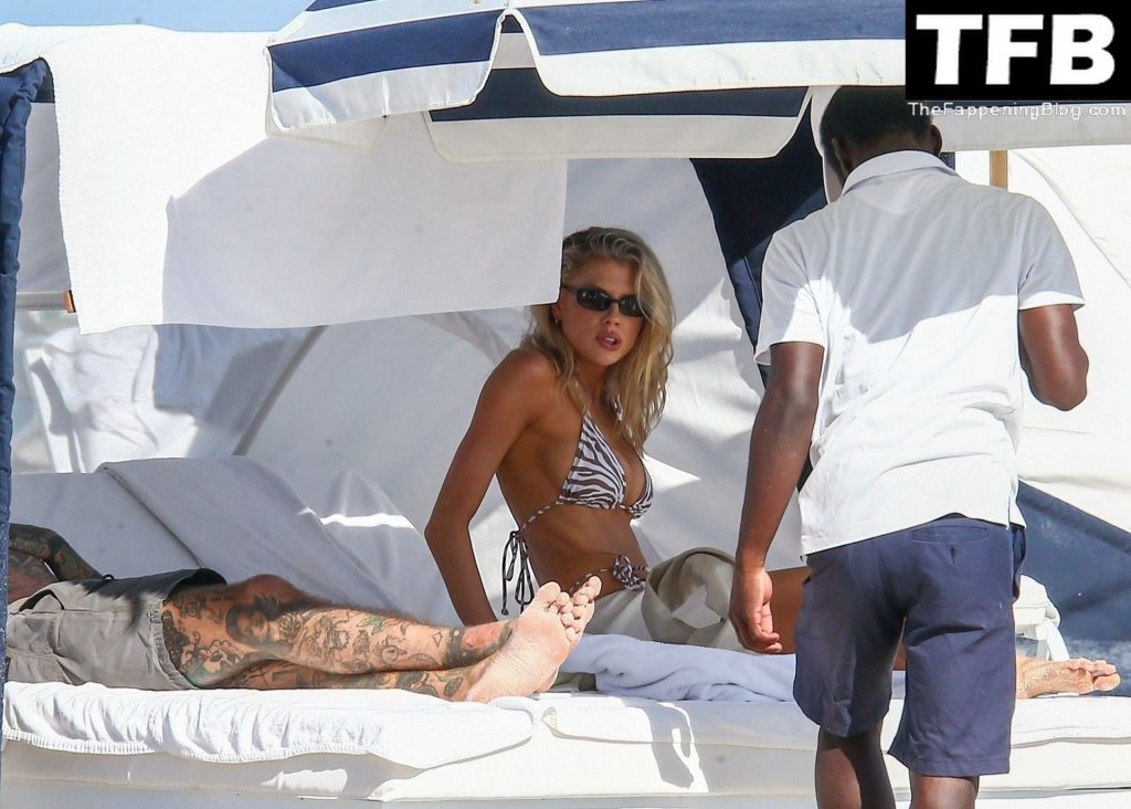 La star di The Fappening Charlotte McKinney mostra la sua figura snella in un bikini con stampa animalier mentre si rilassa sulla spiaggia con il suo fidanzato pesantemente tatuato Nathan Kotechko, mentre Art Basel si conclude a Miami Beach, 12/05/2021.