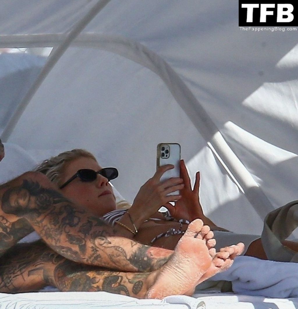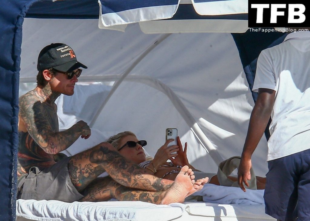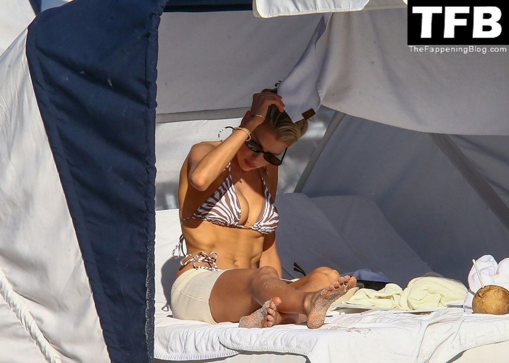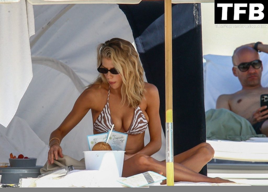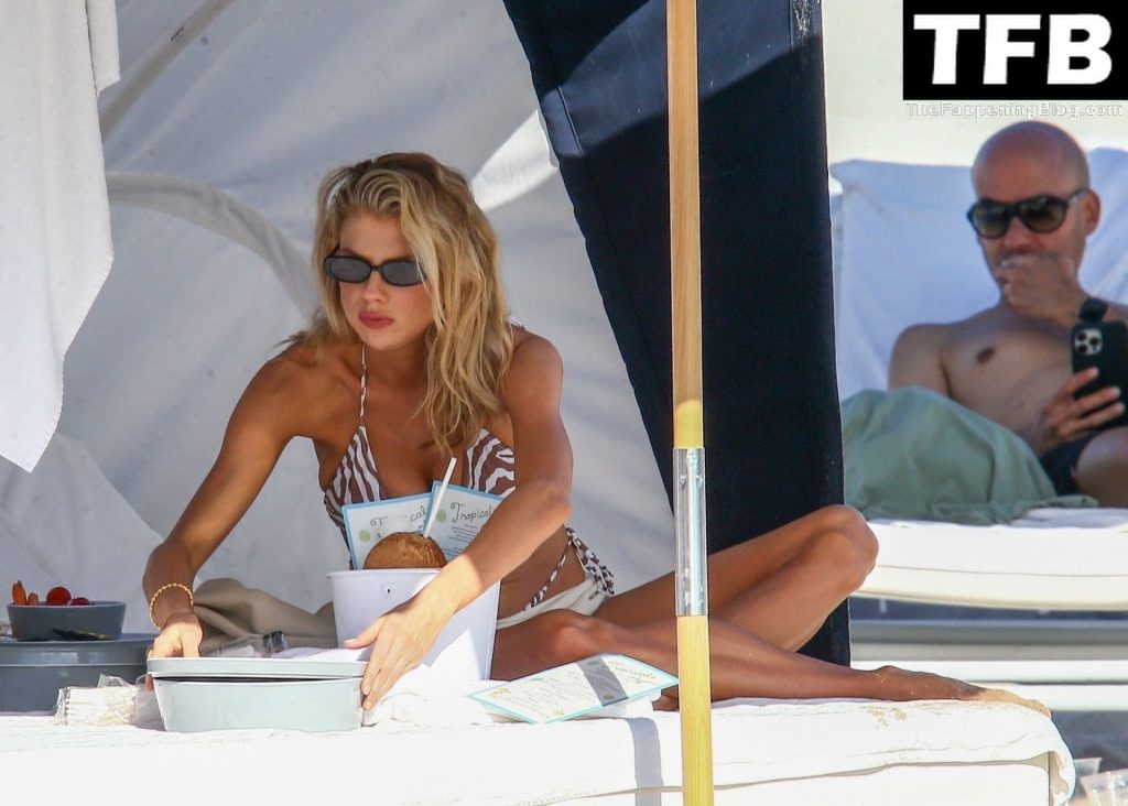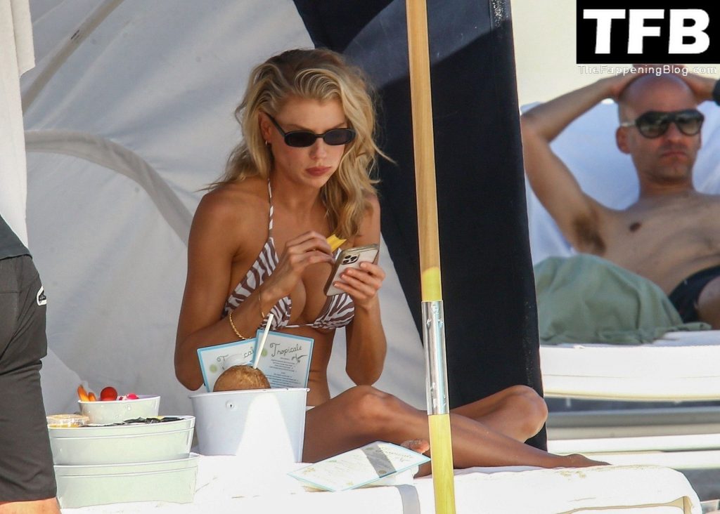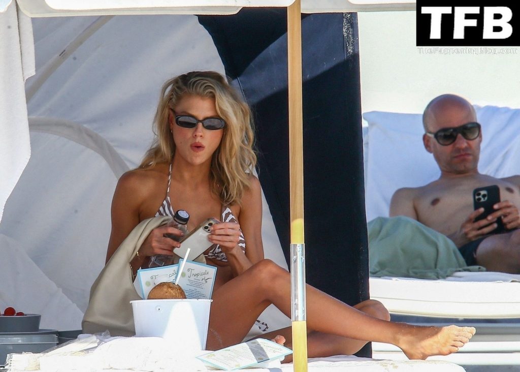 La star di The Fappening Charlotte McKinney mostra la sua figura snella in un bikini con stampa animalier mentre si rilassa sulla spiaggia con il suo fidanzato pesantemente tatuato Nathan Kotechko, mentre Art Basel si conclude a Miami Beach, 12/05/2021.