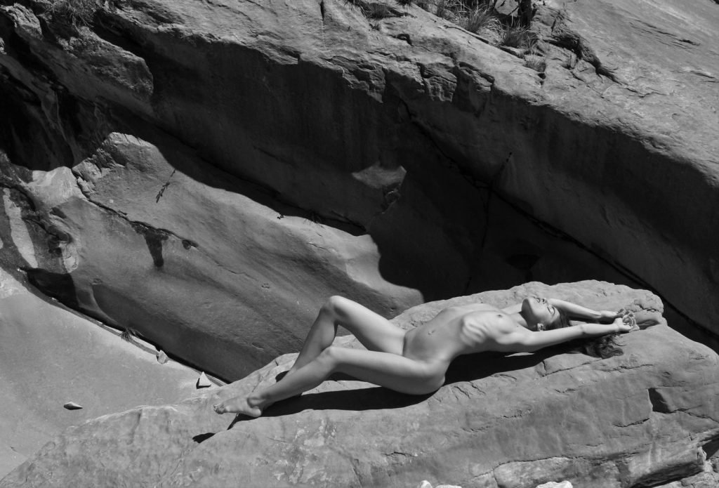 La modella italiana Chiara Bianchino posa completamente nuda su una scogliera in un nuovo servizio fotografico di Marco Antonioli (2019).