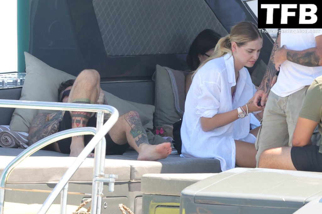 Il rapper italiano Fedez e Chiara Ferragni sono stati fotografati mentre si godono la loro vacanza in famiglia sulla loro barca a Formentera, 08/03/2022.