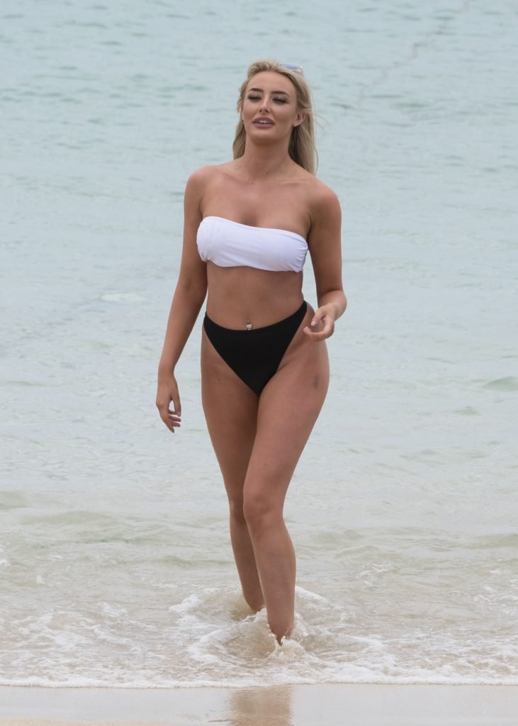 “Love Island 2017” ragazza Chloe Crowhurst viene vista mentre mostra il suo corpo perfetto con un bikini a perizoma sulla spiaggia di Lanzarote, Spagna, 07/10/2017.