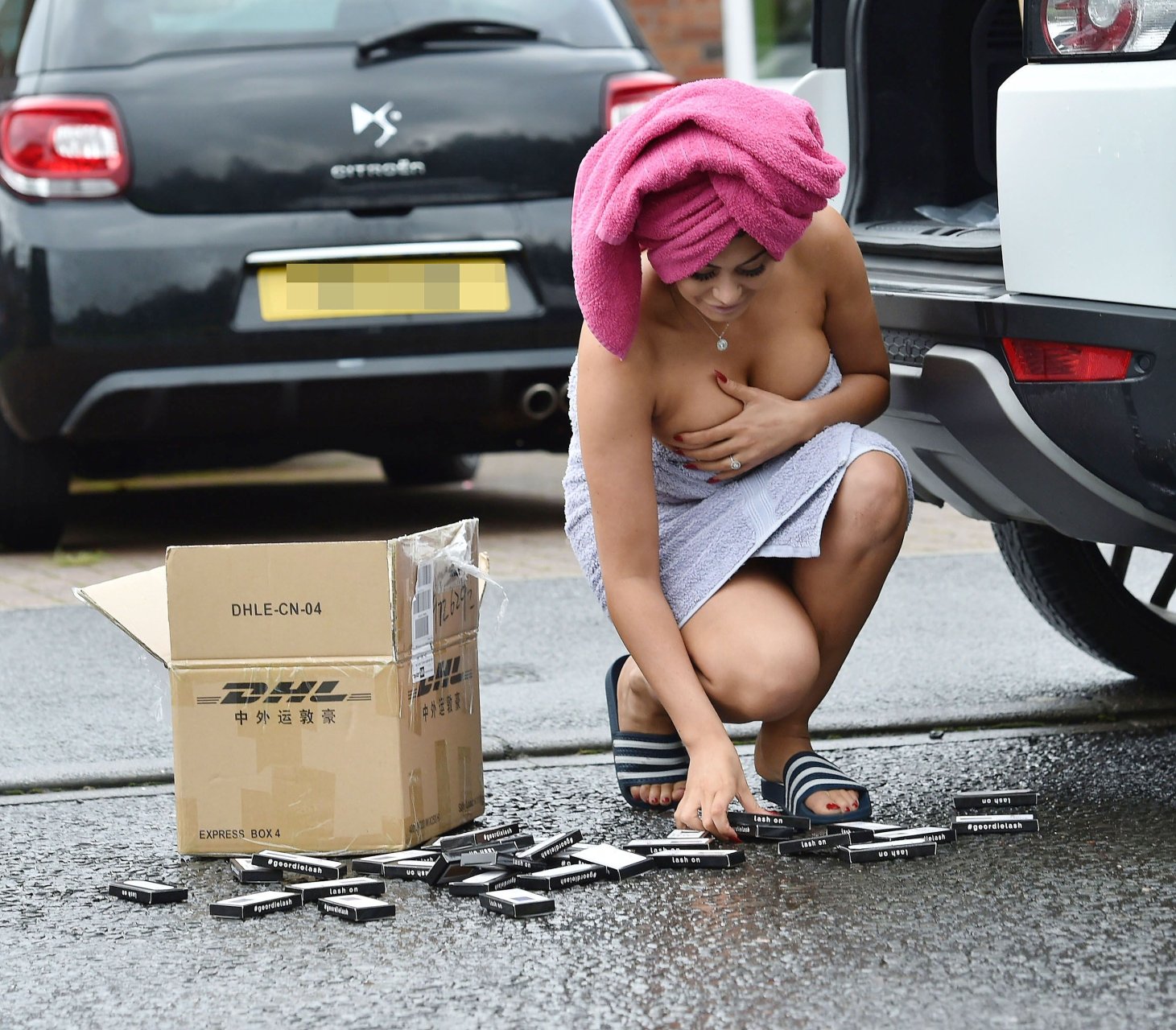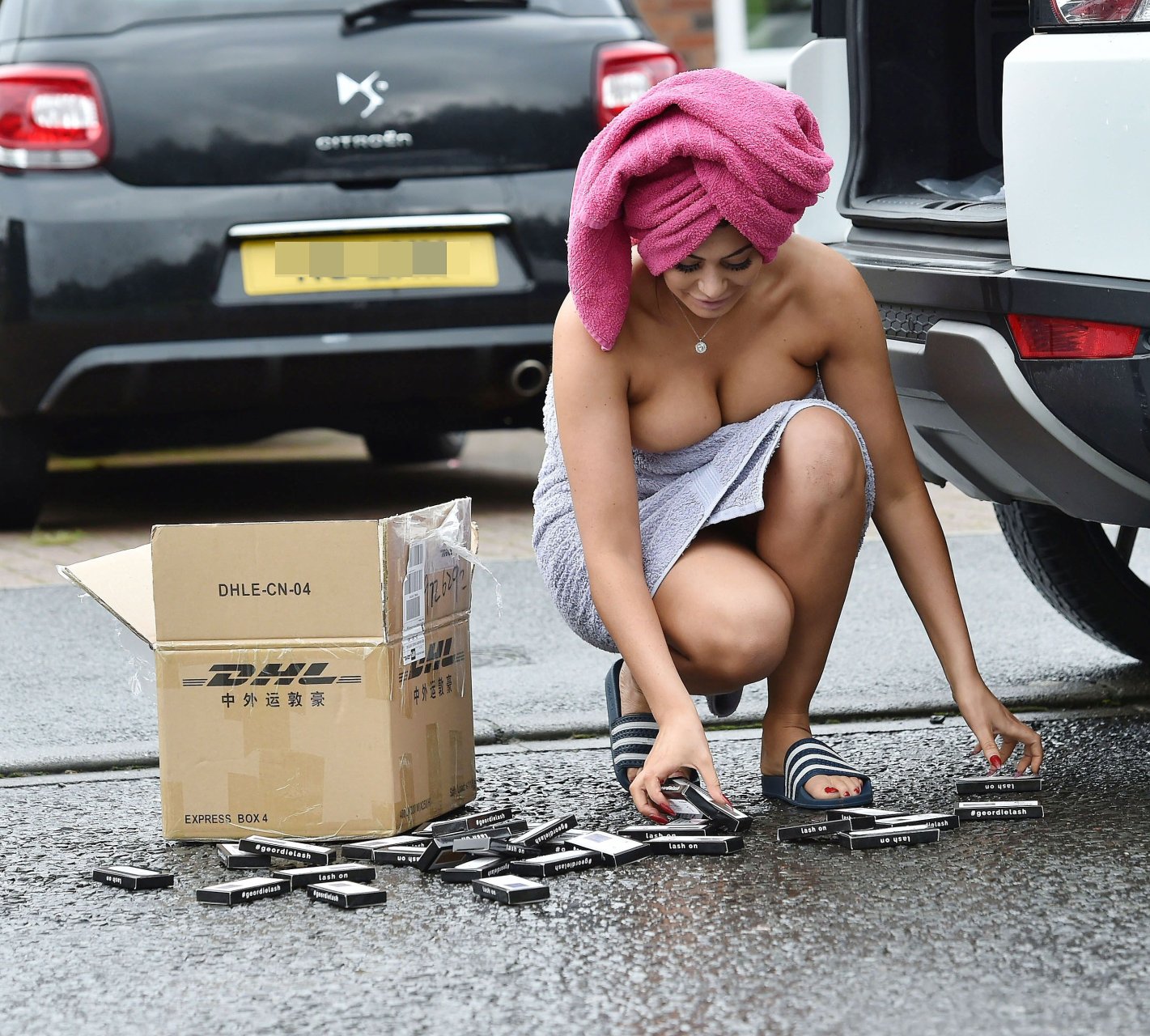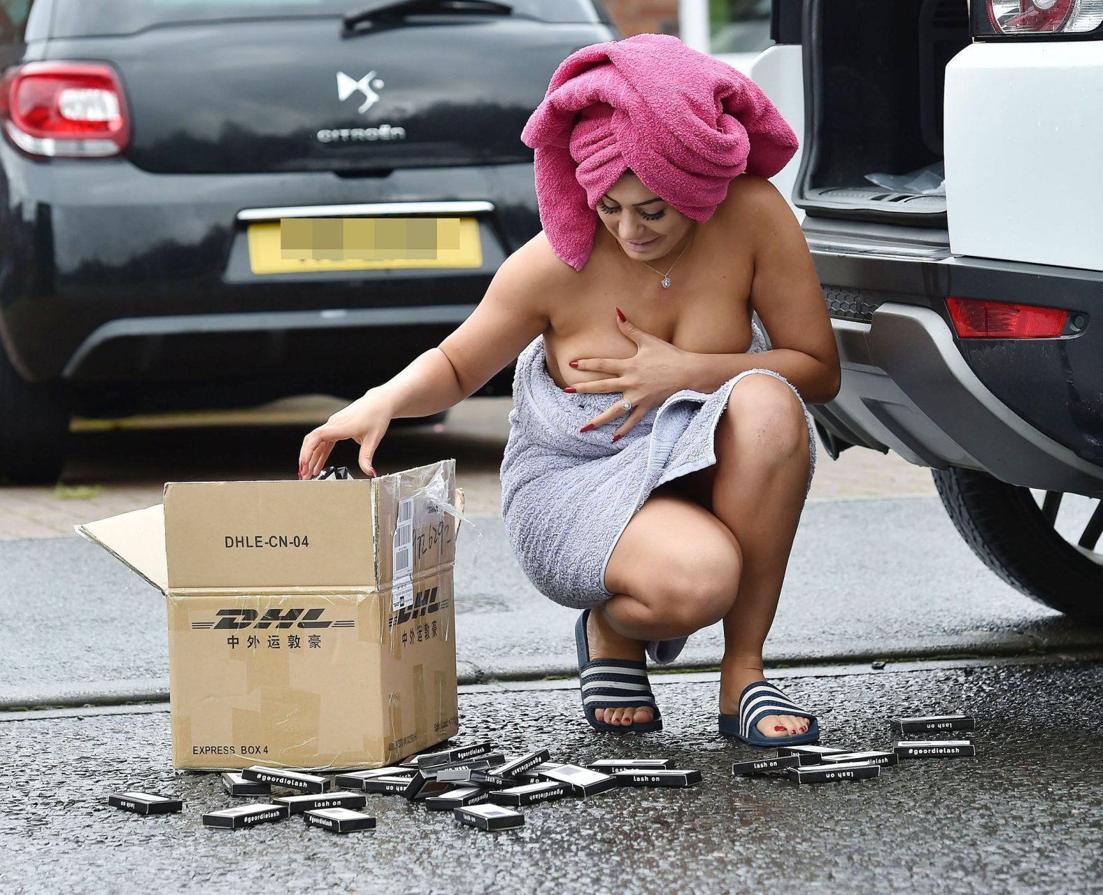 Di solito darei loro il beneficio del dubbio, ma... in questo caso, dai... sei appena uscito dalla doccia, hai il trucco, i capelli non sembrano nemmeno bagnati e devi prendere una scatola di qualsiasi cosa proprio in questo momento con solo un asciugamano :P