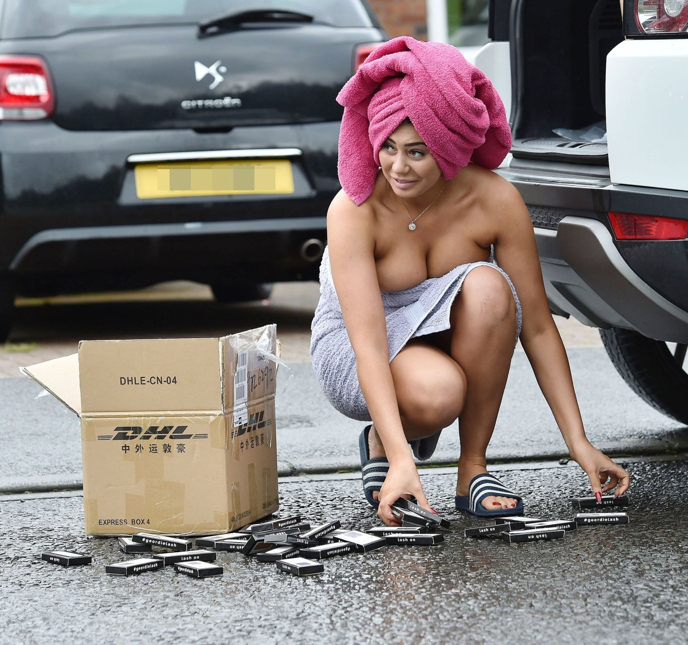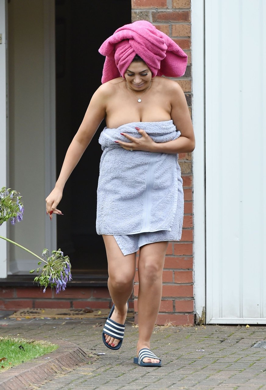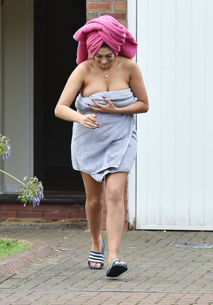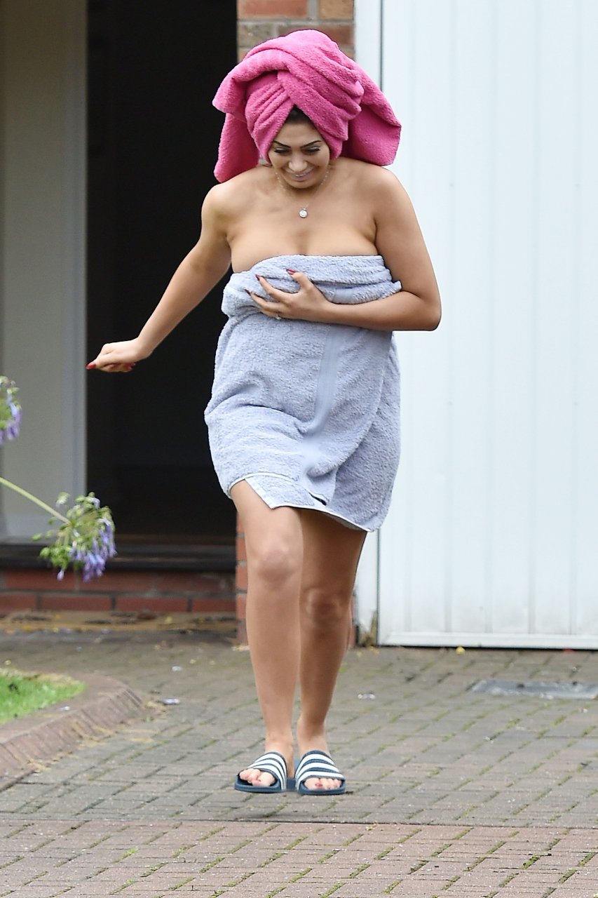 Nuda coperta con un asciugamano Chloe Ferry esce dalla sua casa a Newcastle, 16/10/2016. Chloe Ferry è una star britannica dei reality (Geordie Shore). Età: 21.