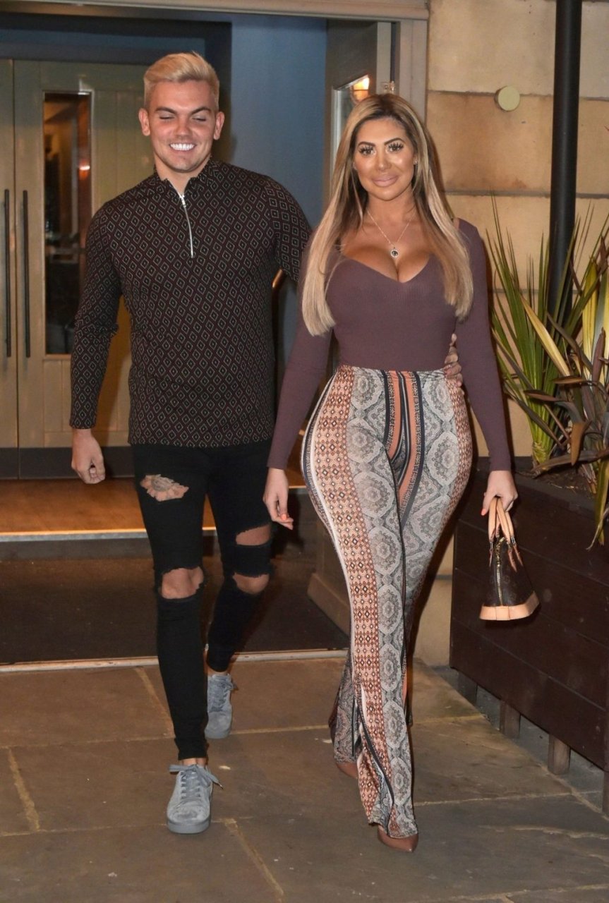 Chloe Ferry e Sam Gowland si godono una serata romantica a Toon, 29/03/2019. La coppia ha cenato al Tomahawk Steak House sul QuaySide. Chloe mette in mostra le sue curve con pantaloni attillati.