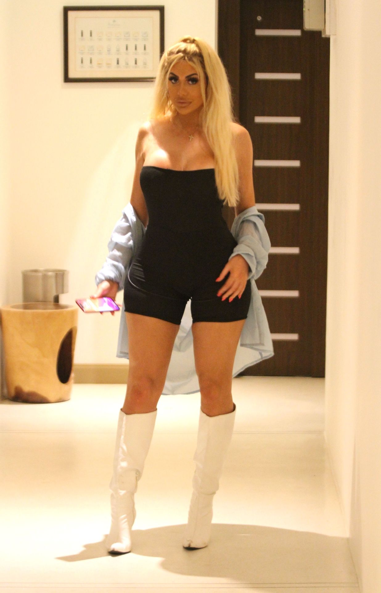La sexy star di “Geordie Shore” ha scambiato il suo solito divertimento e le follie di una serata a Newcastle per l’Estremo Oriente e ha indossato il suo piccolo tuta nera e stivali bianchi sexy pronta per uscire in città.