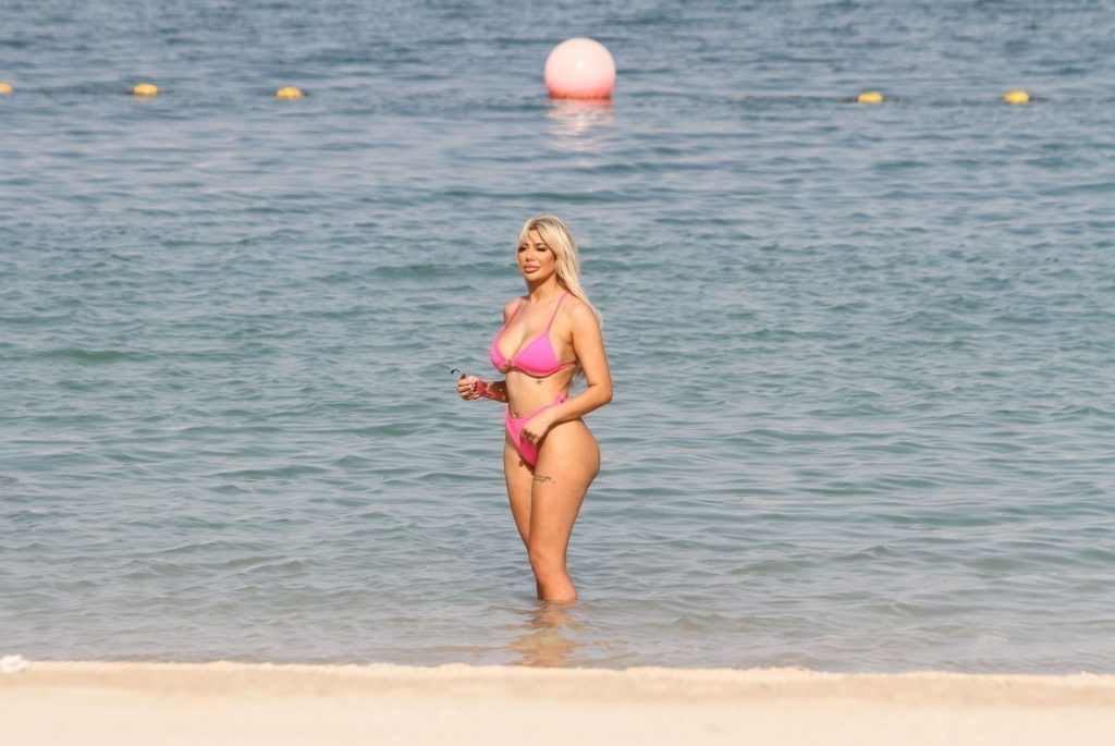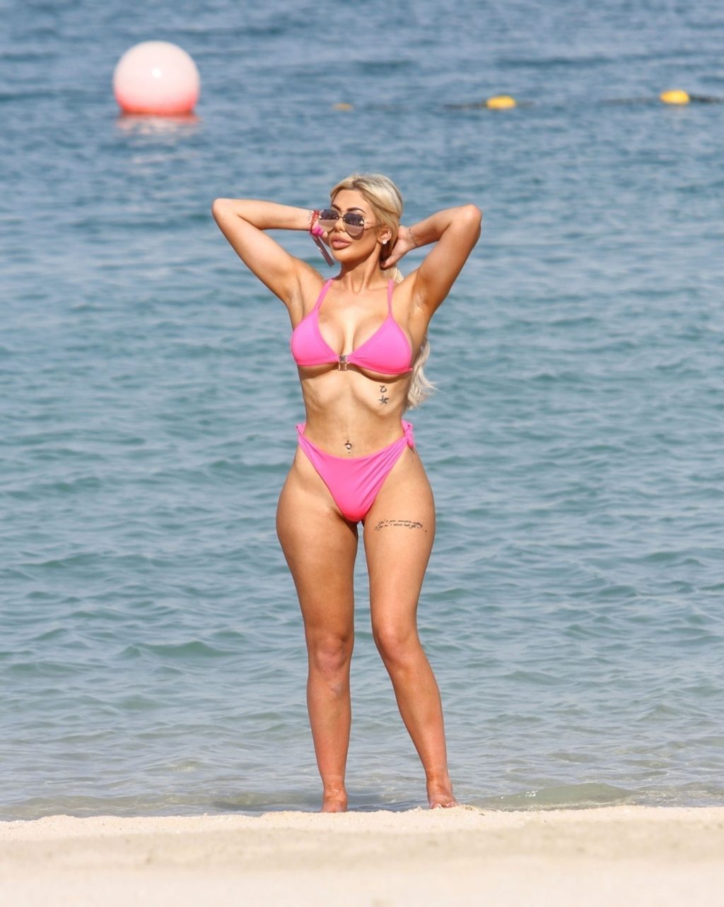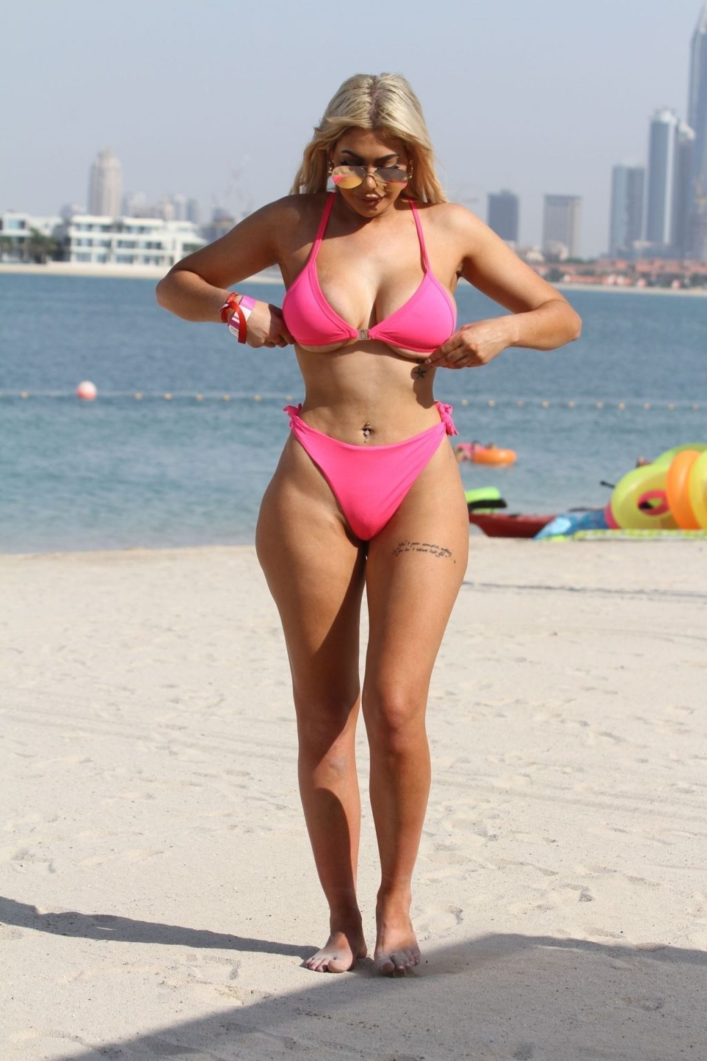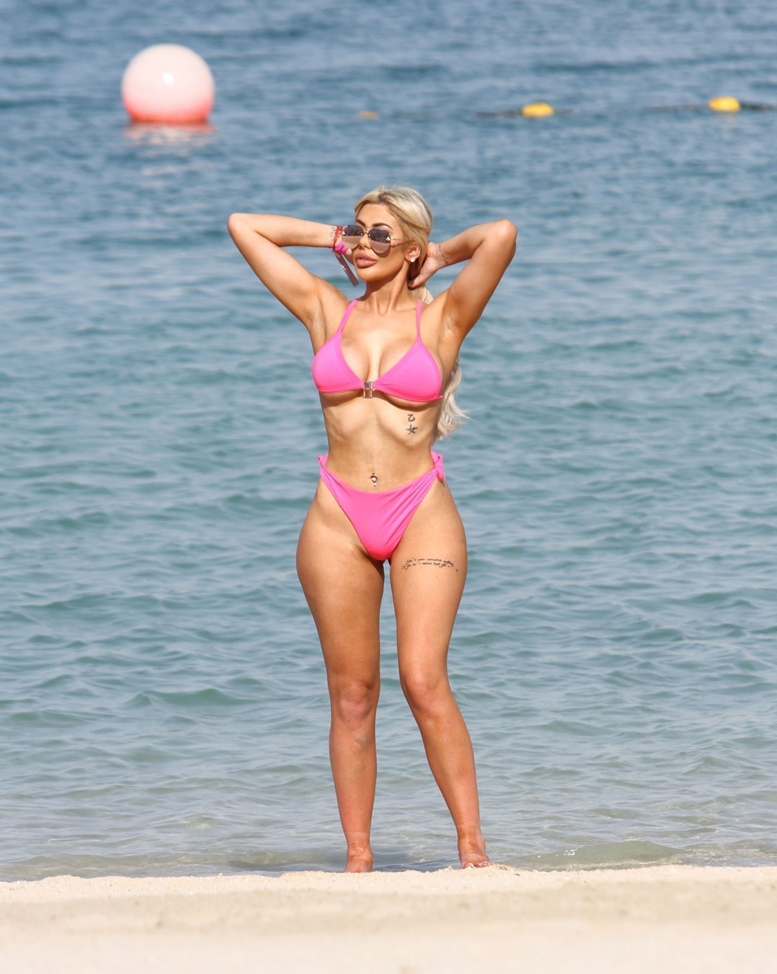 Seducente sulla spiaggia e mostrando un’esibizione caliente sotto il sole degli Emirati, la bellezza di Geordie Shore Chloe Ferry appare favolosa nel suo bikini rosa succinto, 17/10/2019.