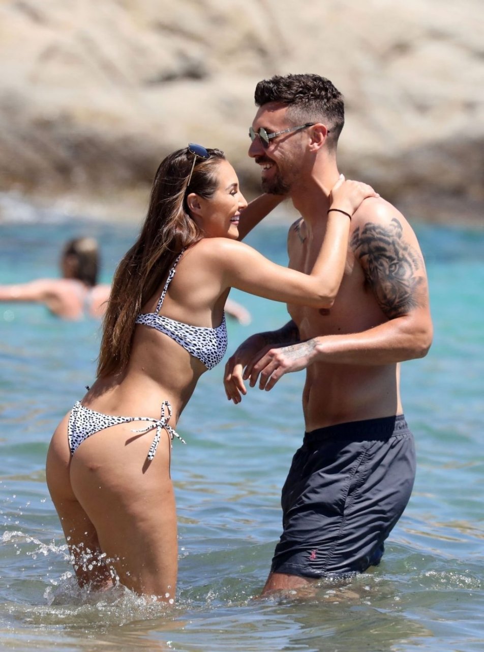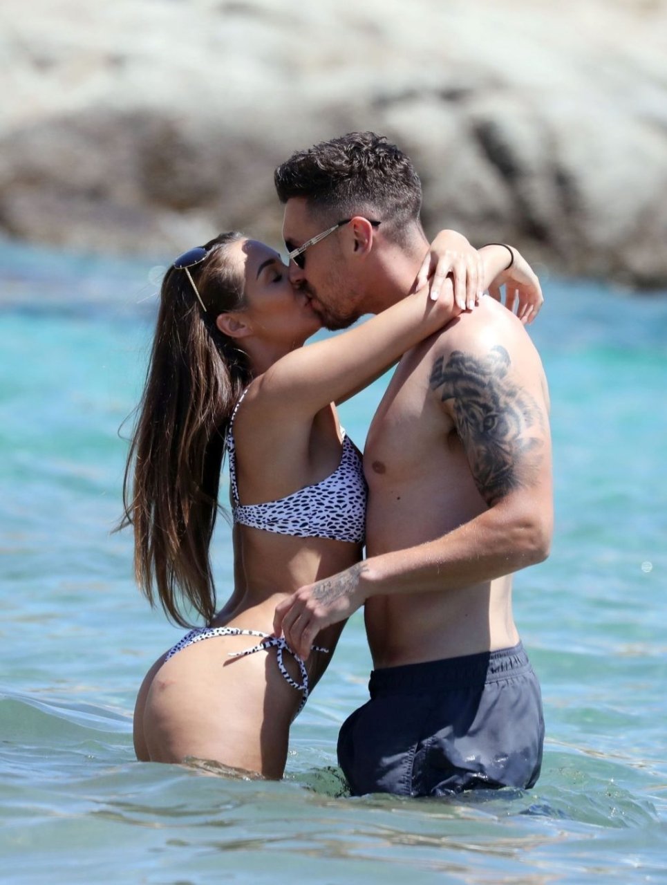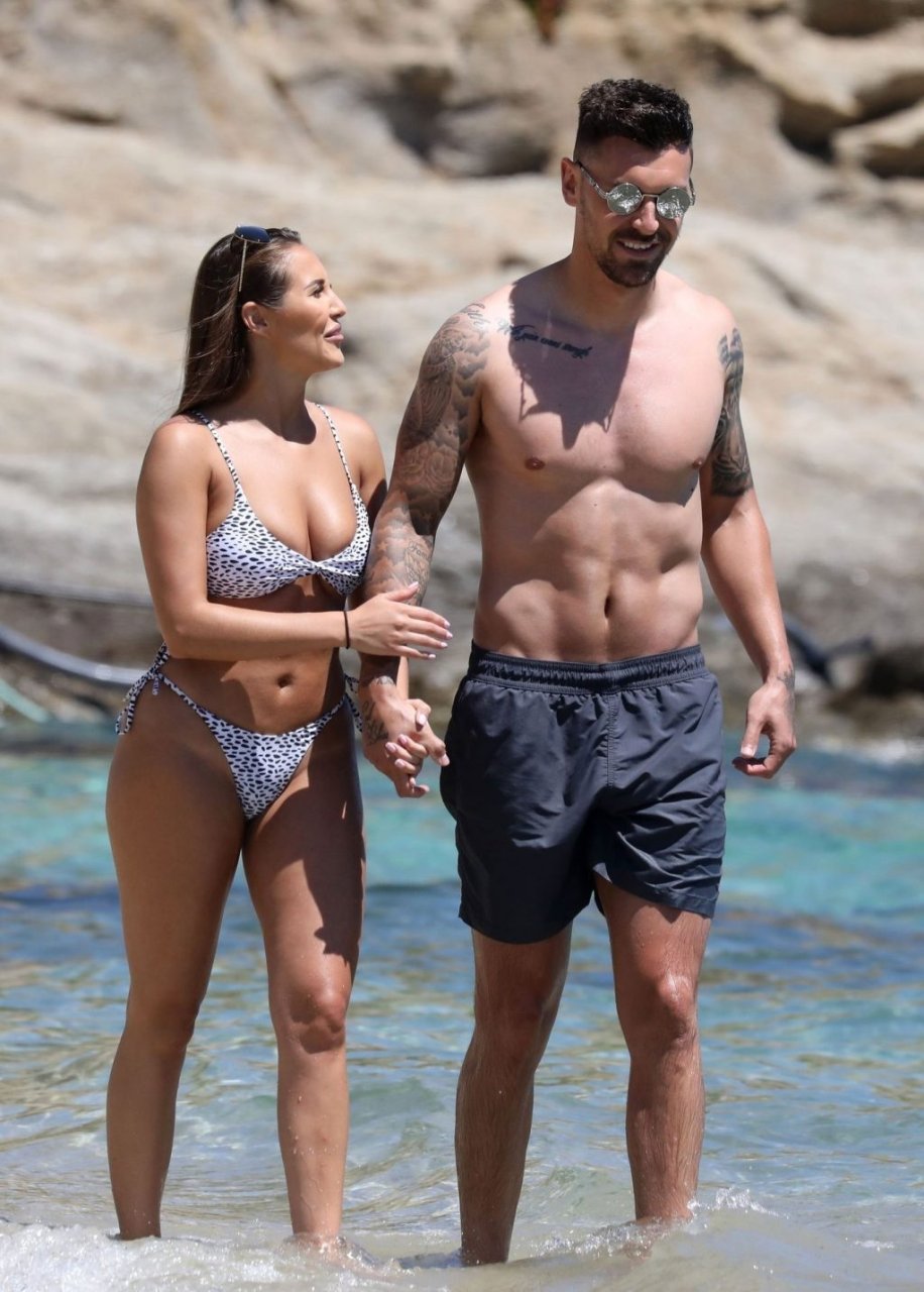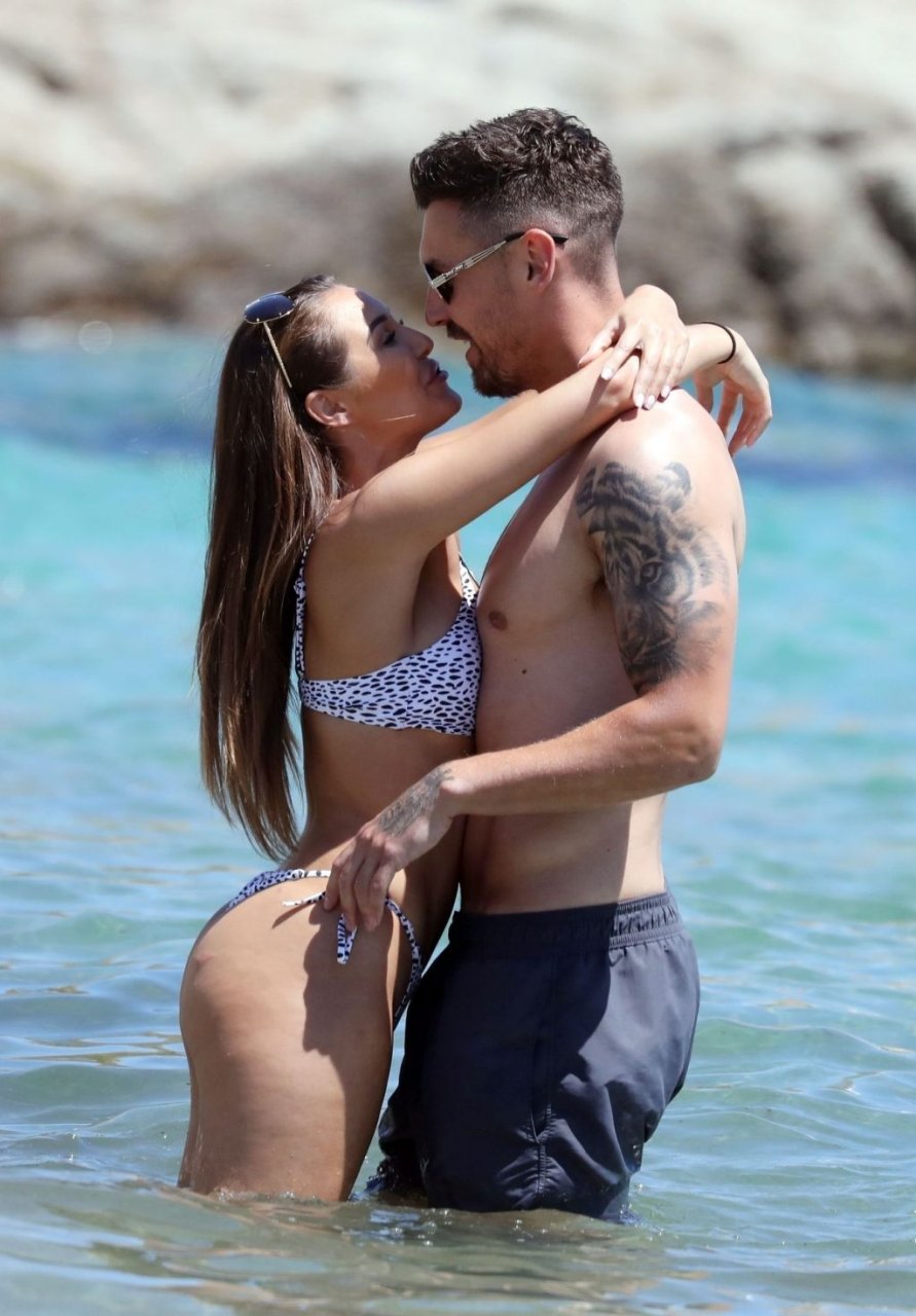 Reality star Chloe Goodman e il calciatore del QPR Grant Hall ritratti durante la loro vacanza baciata dal sole a Mykonos, 16/05/2019. La coppia sembrava sentire l’amore mentre si abbracciavano e si scambiavano baci giocando nell’acqua.