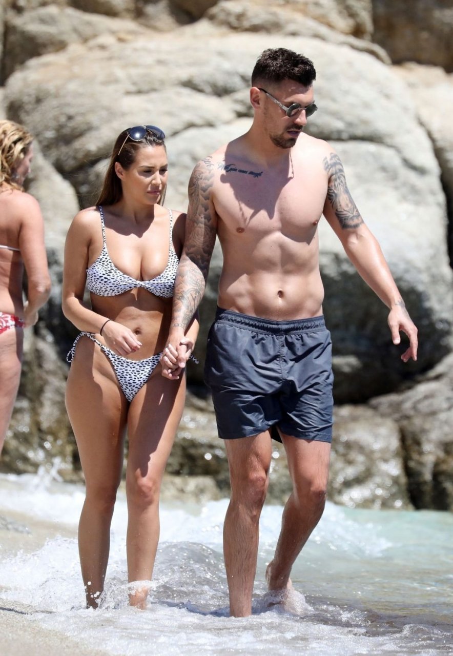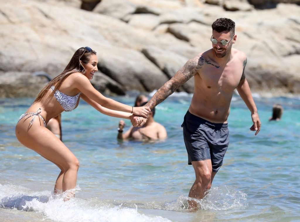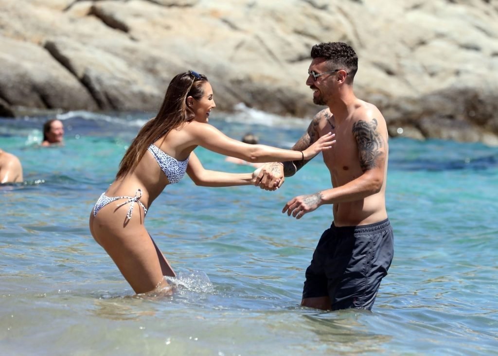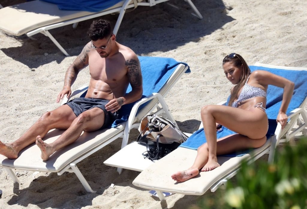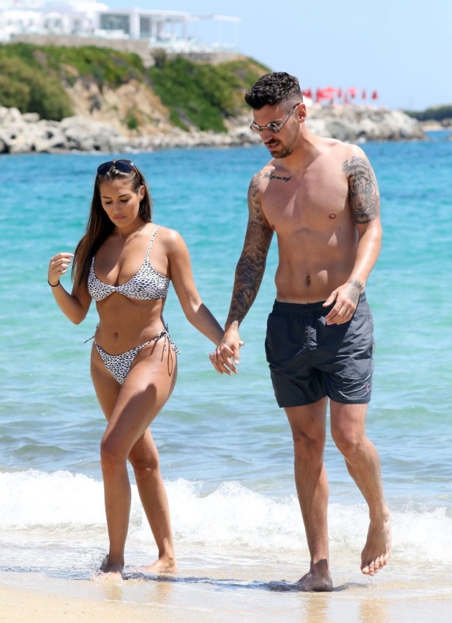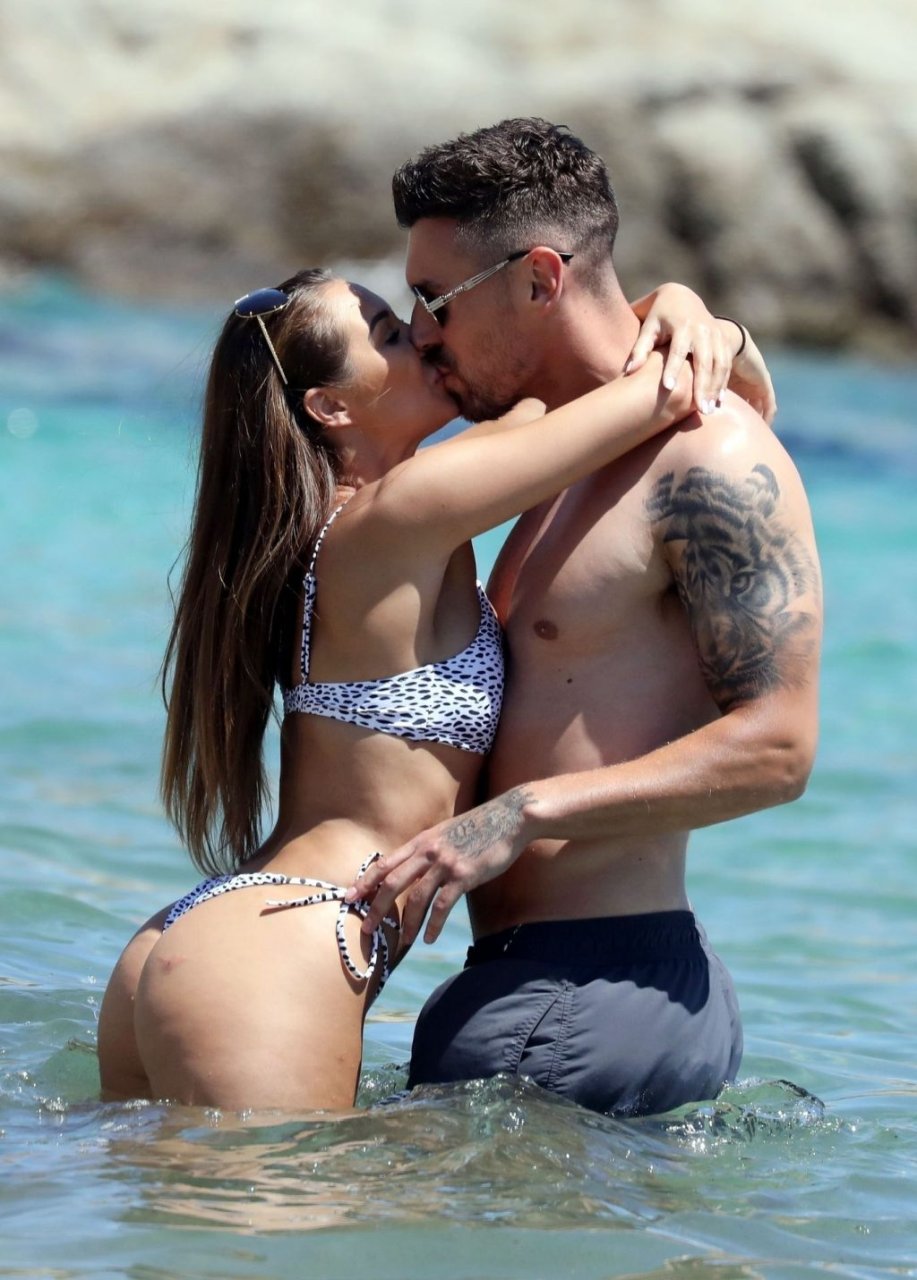 Reality star Chloe Goodman e il calciatore del QPR Grant Hall ritratti durante la loro vacanza baciata dal sole a Mykonos, 16/05/2019. La coppia sembrava sentire l’amore mentre si abbracciavano e si scambiavano baci giocando nell’acqua.