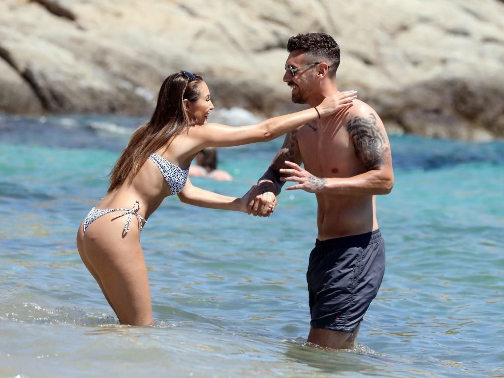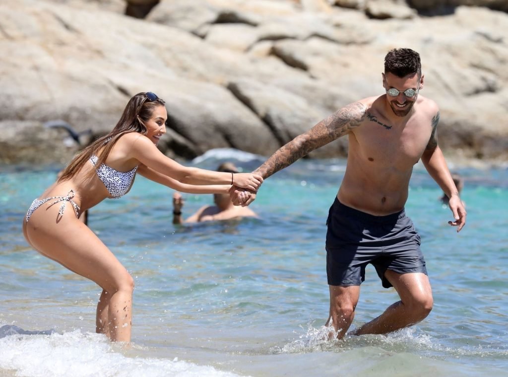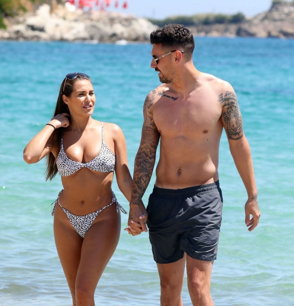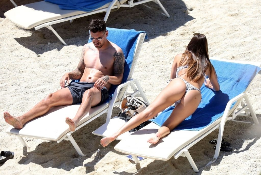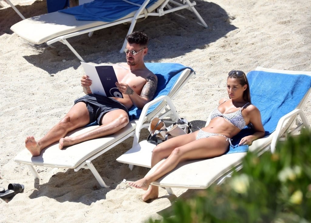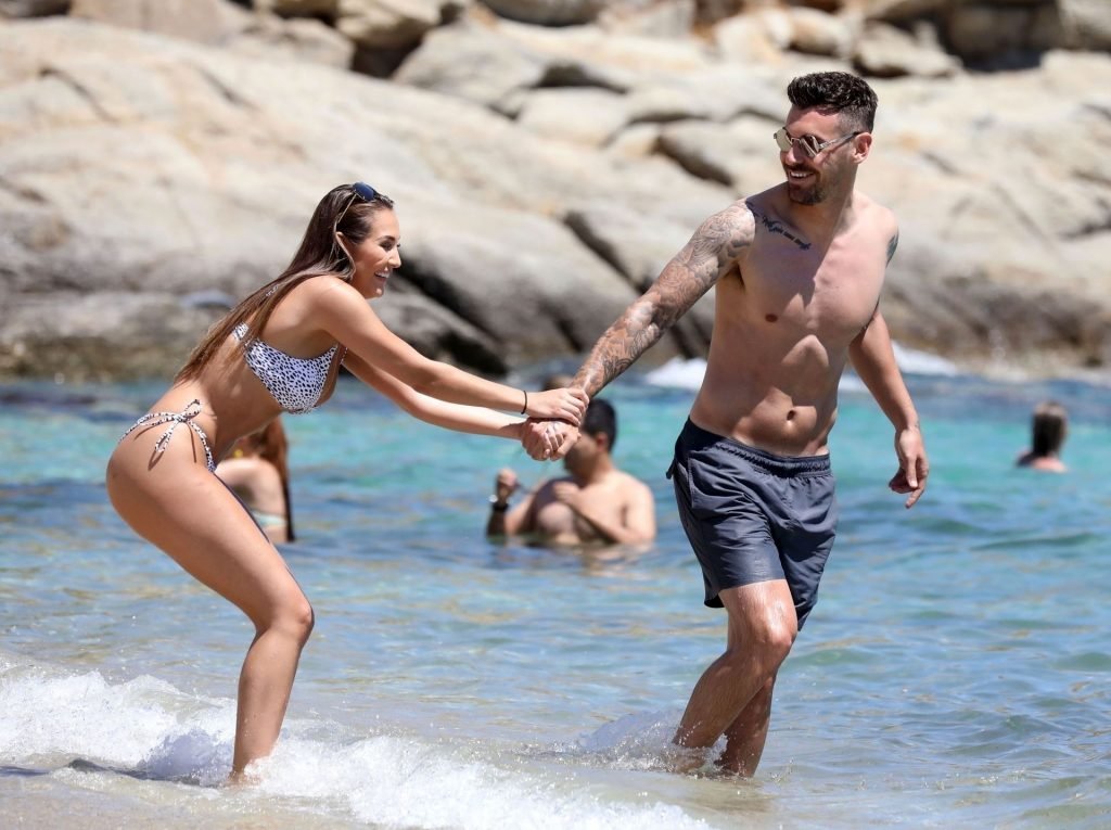 Reality star Chloe Goodman e il calciatore del QPR Grant Hall ritratti durante la loro vacanza baciata dal sole a Mykonos, 16/05/2019. La coppia sembrava sentire l’amore mentre si abbracciavano e si scambiavano baci giocando nell’acqua.
