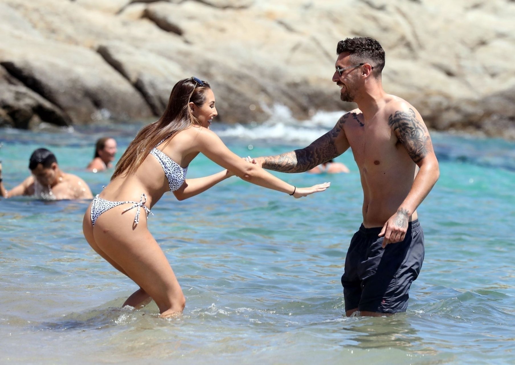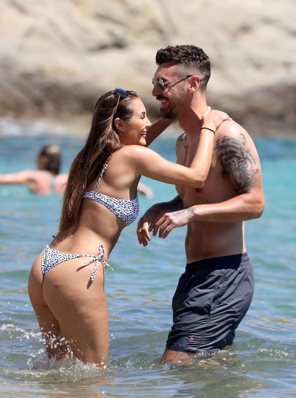 Reality star Chloe Goodman e il calciatore del QPR Grant Hall ritratti durante la loro vacanza baciata dal sole a Mykonos, 16/05/2019. La coppia sembrava sentire l’amore mentre si abbracciavano e si scambiavano baci giocando nell’acqua.