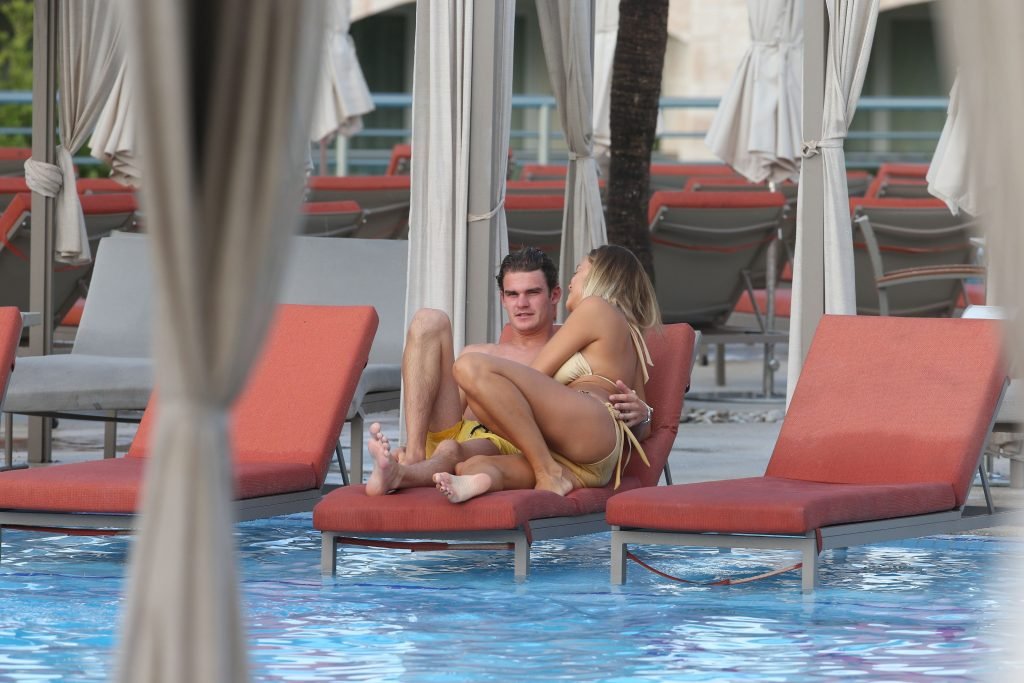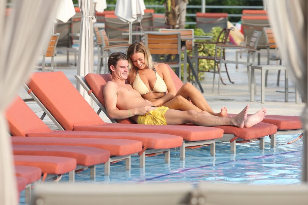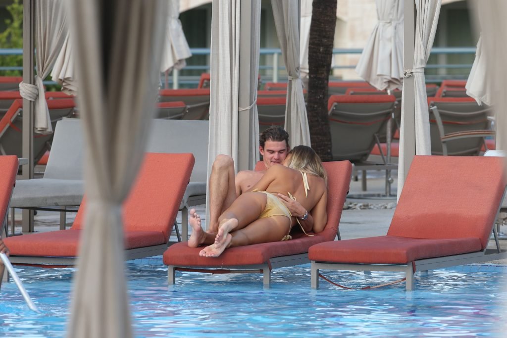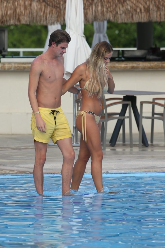 Chloe Meadows è vista indossare un bikini crema durante una vacanza con il fidanzato Taylor Barnett in Messico, 26/10/2017. Chloe Meadows è una star della realtà (The Only Way Is Essex). Nata in – Francia. Età: 25 anni.