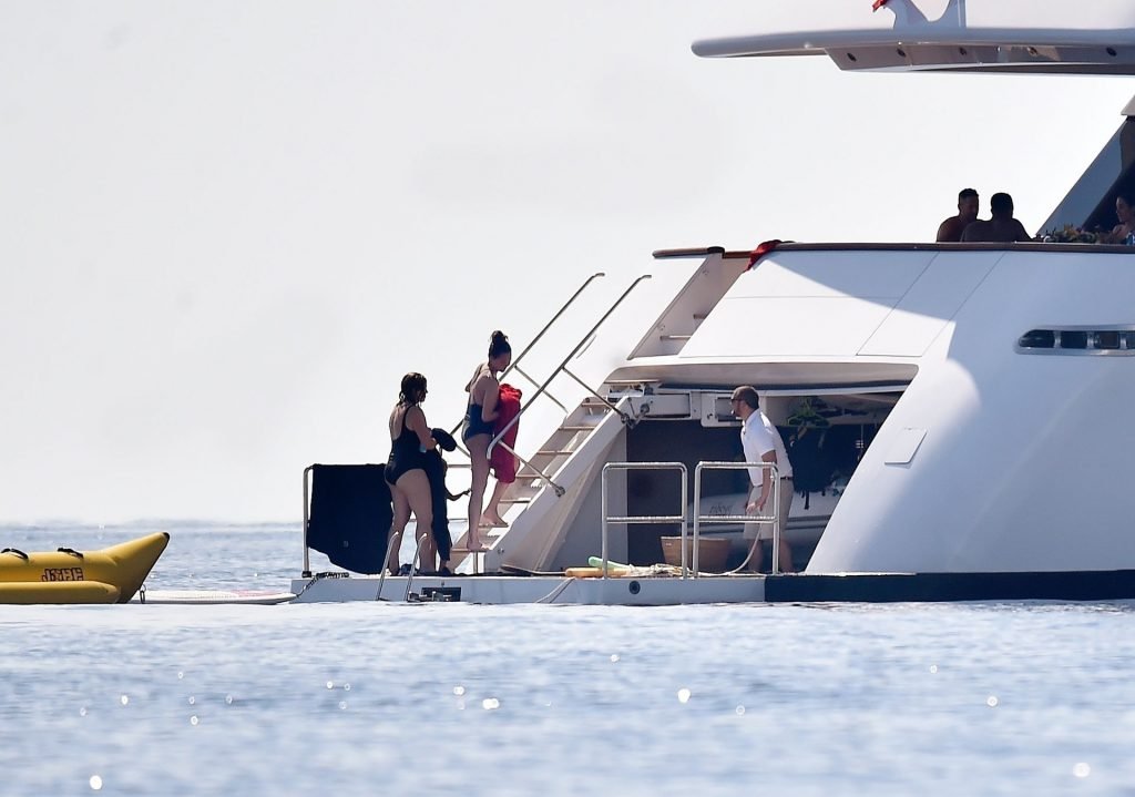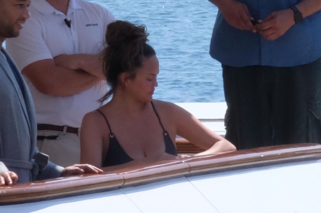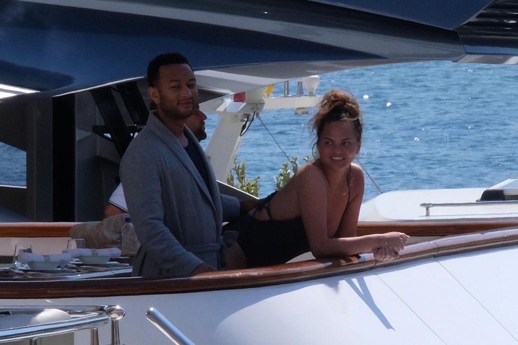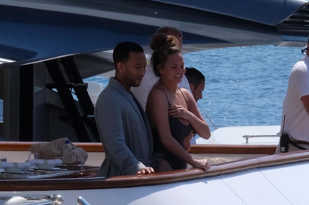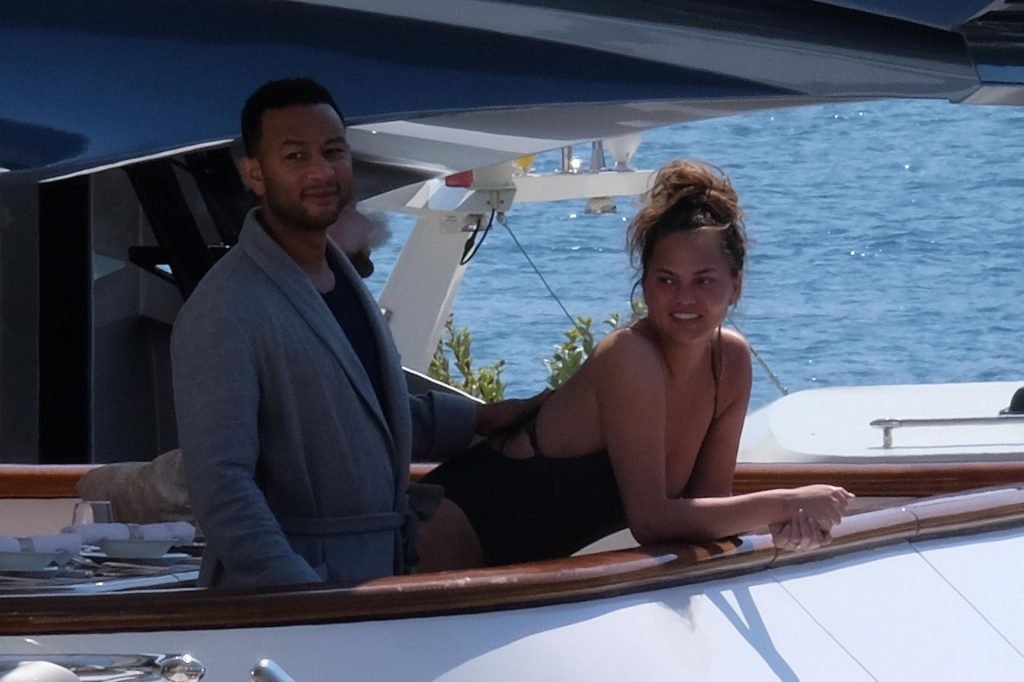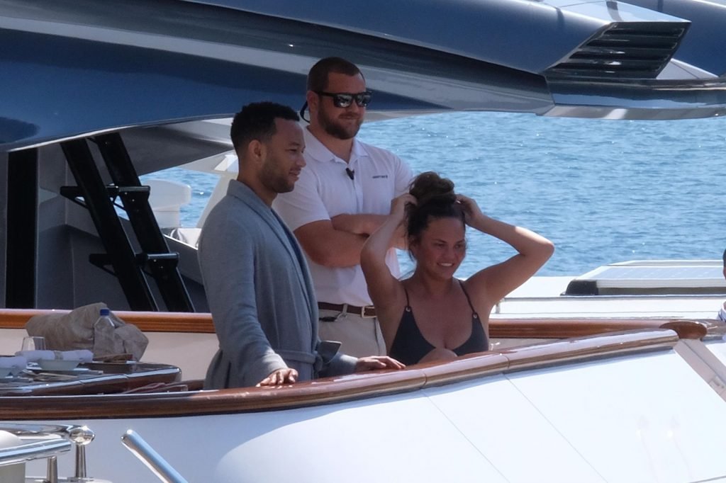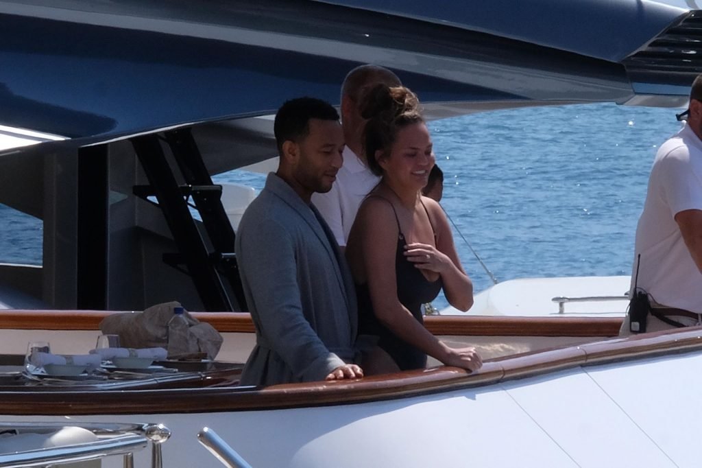 Il cantante soul americano John Legend e la moglie Chrissy Teigen si rilassano sul loro yacht durante la loro vacanza baciata dal sole a Portovenere, Italia, 07/04/2019.