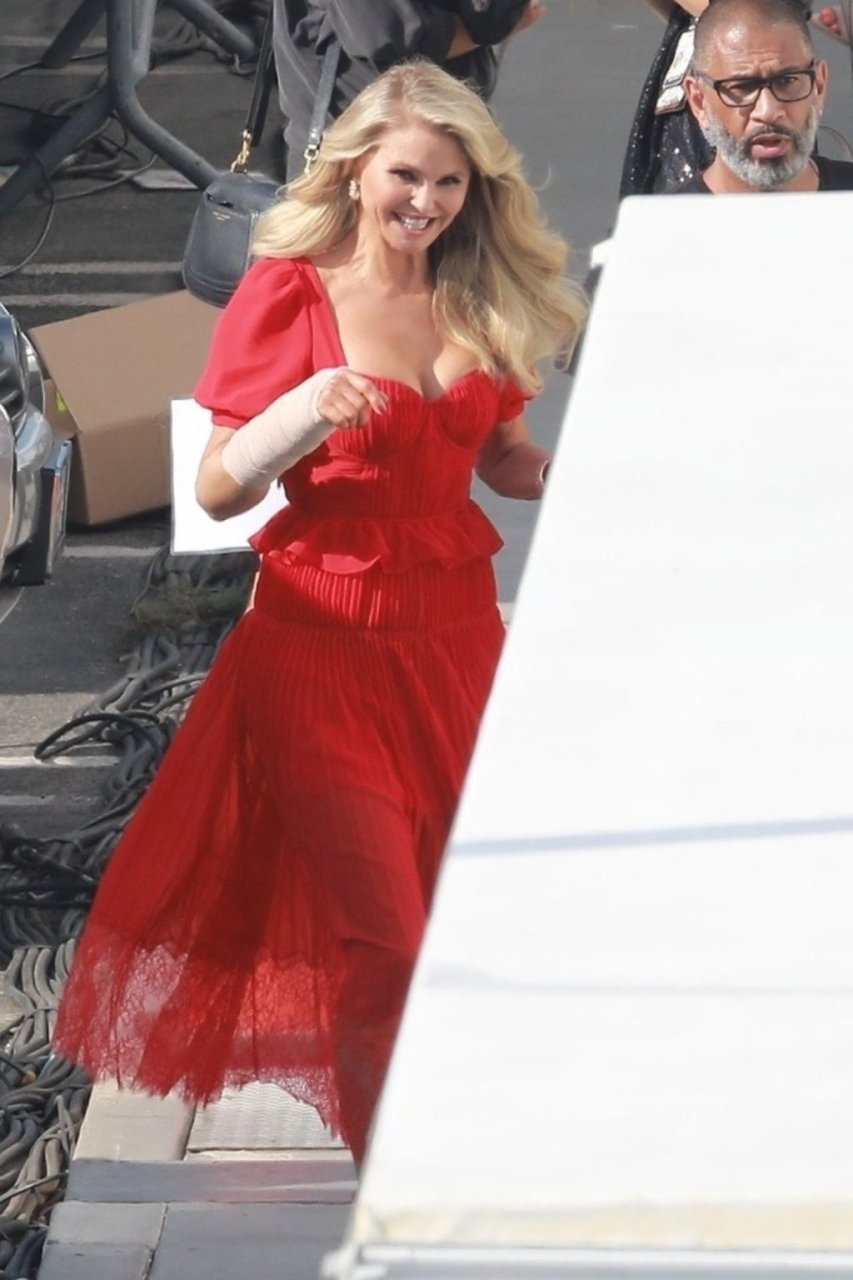 La madre di Sailor Lee, l’attrice e modella americana di 65 anni Christie Brinkley, è stata fotografata con un braccio ferito e indossando un vestito rosso mentre si preparava per lo spettacolo dal vivo “Dancing with the Stars” a Los Angeles, 16/09/2019.