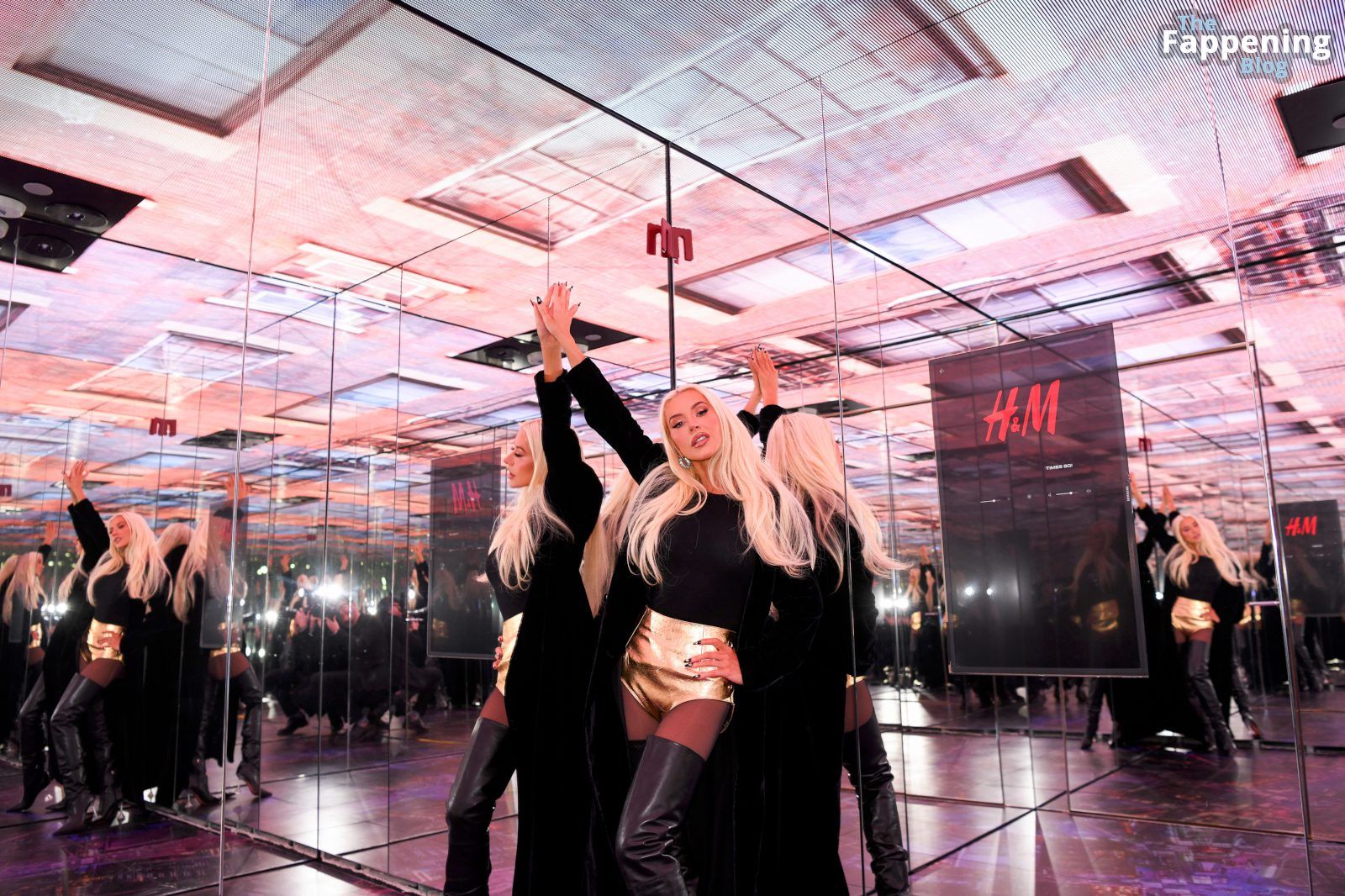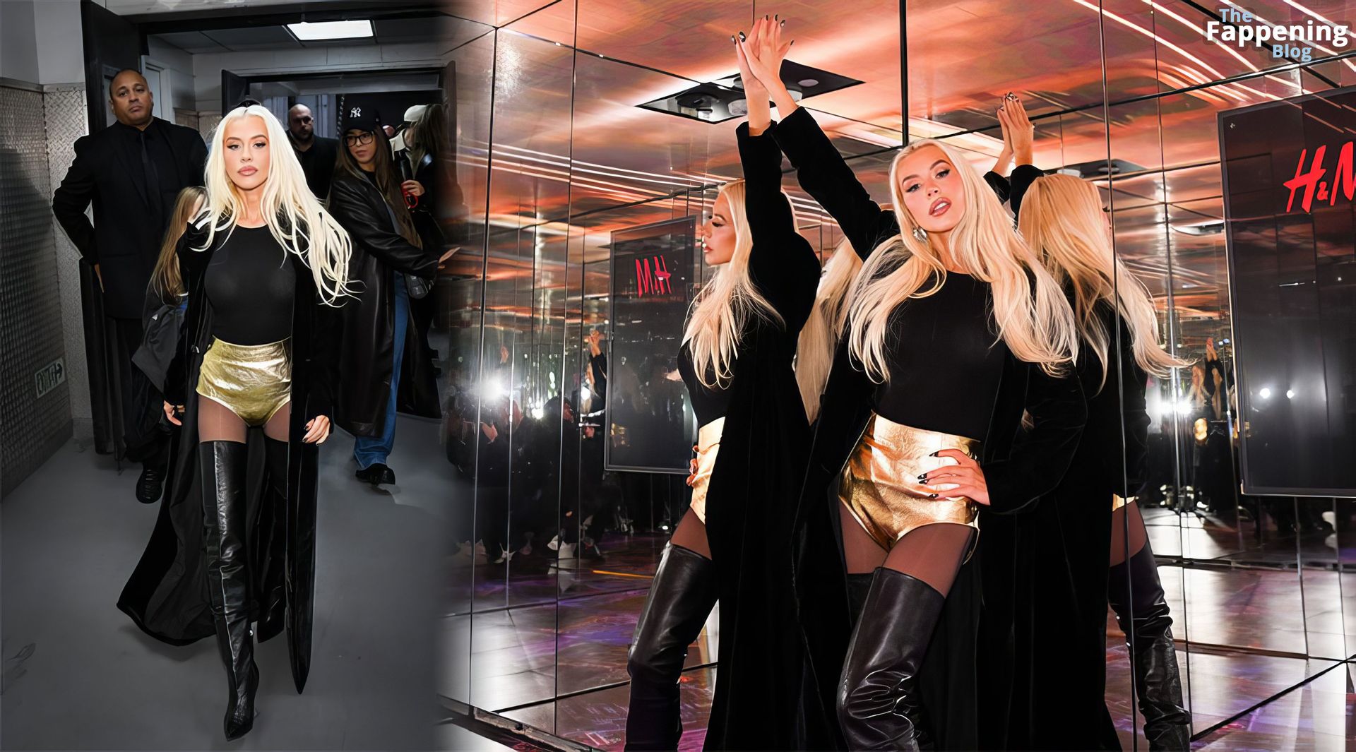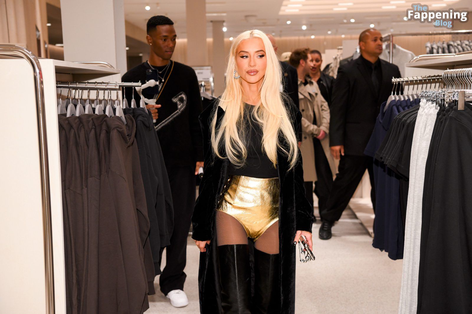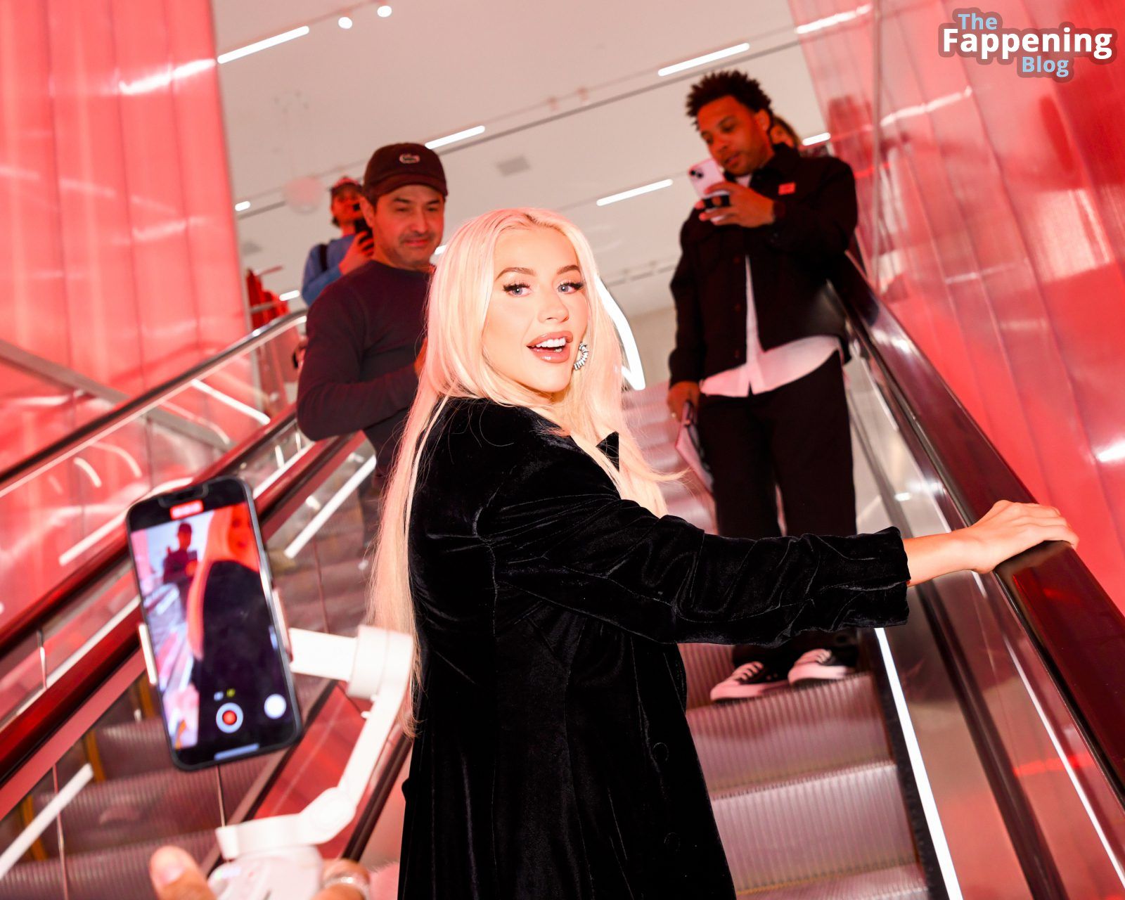 Christina Aguilera conquista New York con quegli stivali alti sopra il ginocchio e un top trasparente, mettendo in mostra le sue curve alla riapertura dell’H&M a Times Square.