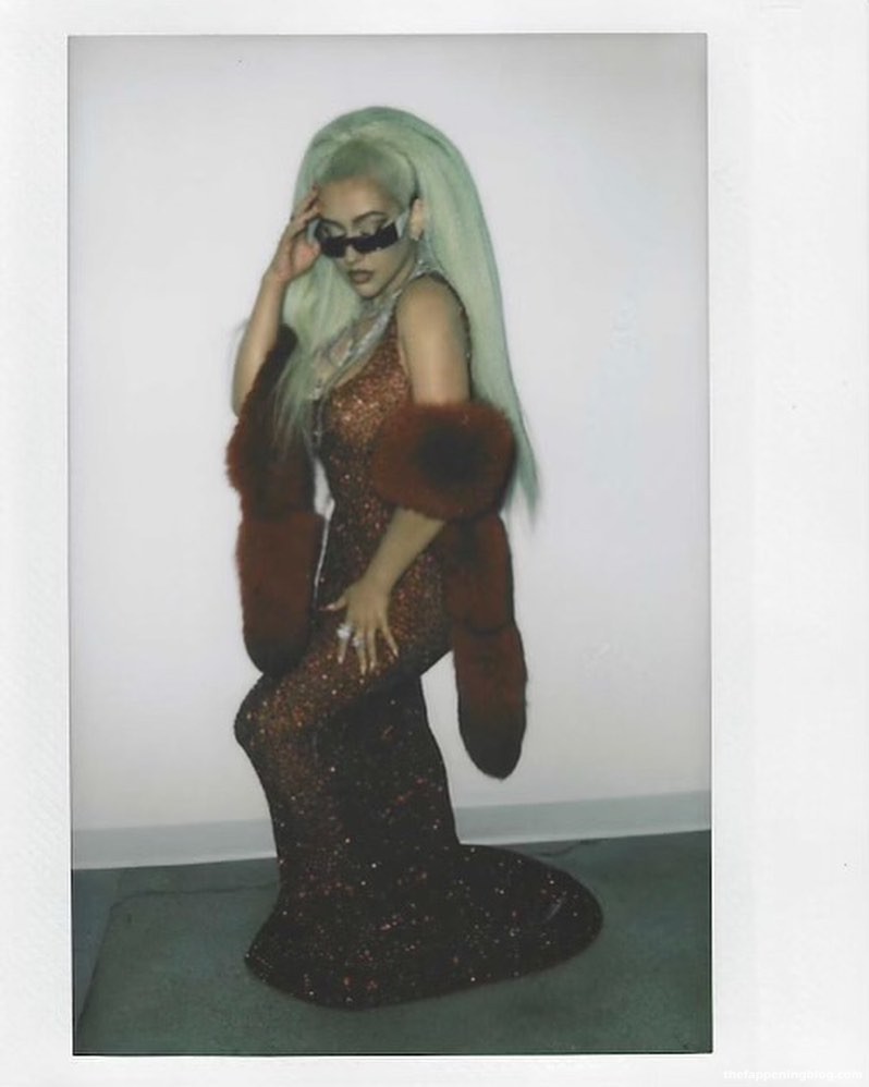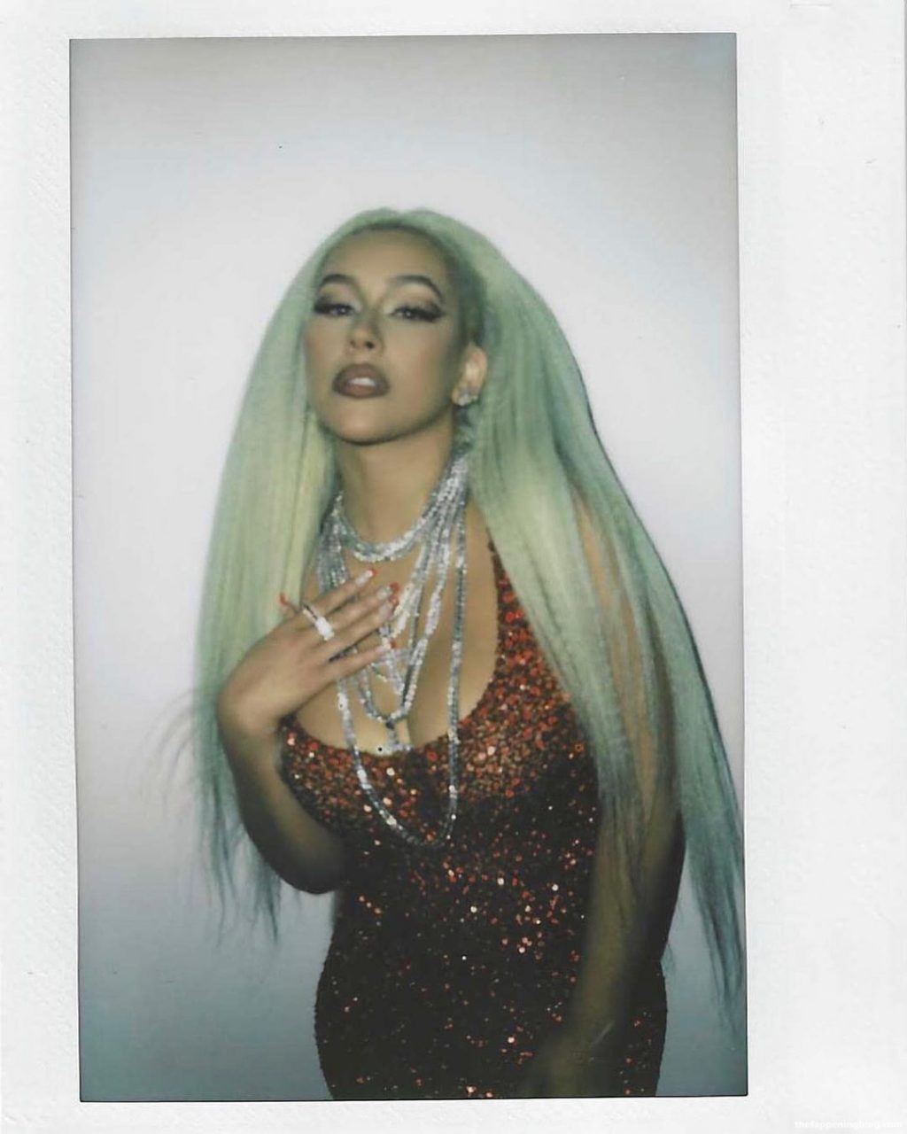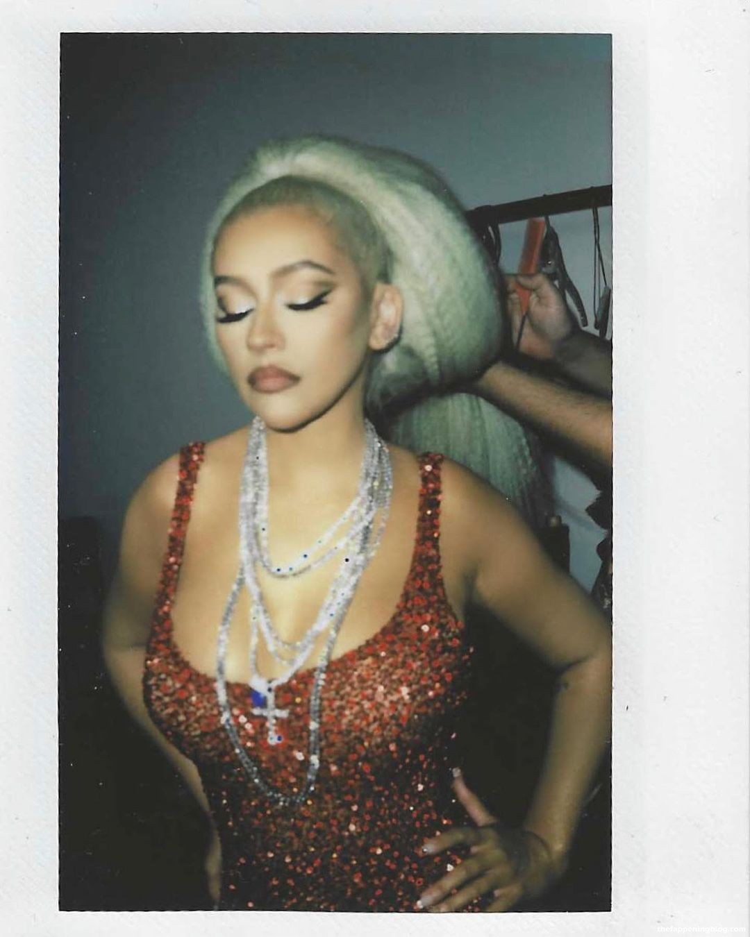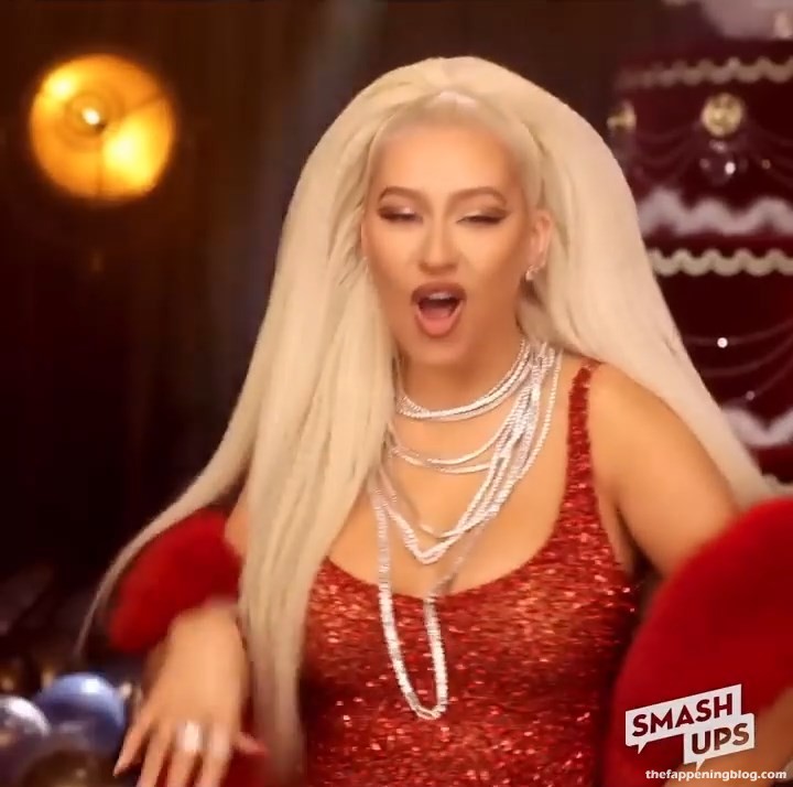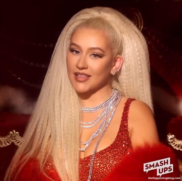 La cantante Christina Aguilera promuove il servizio SmashUps, mostrando il suo bel décolleté in un vestito rosso – Instagram, 10/05/2021. Un bel regalo sono i suoi seni nudi!