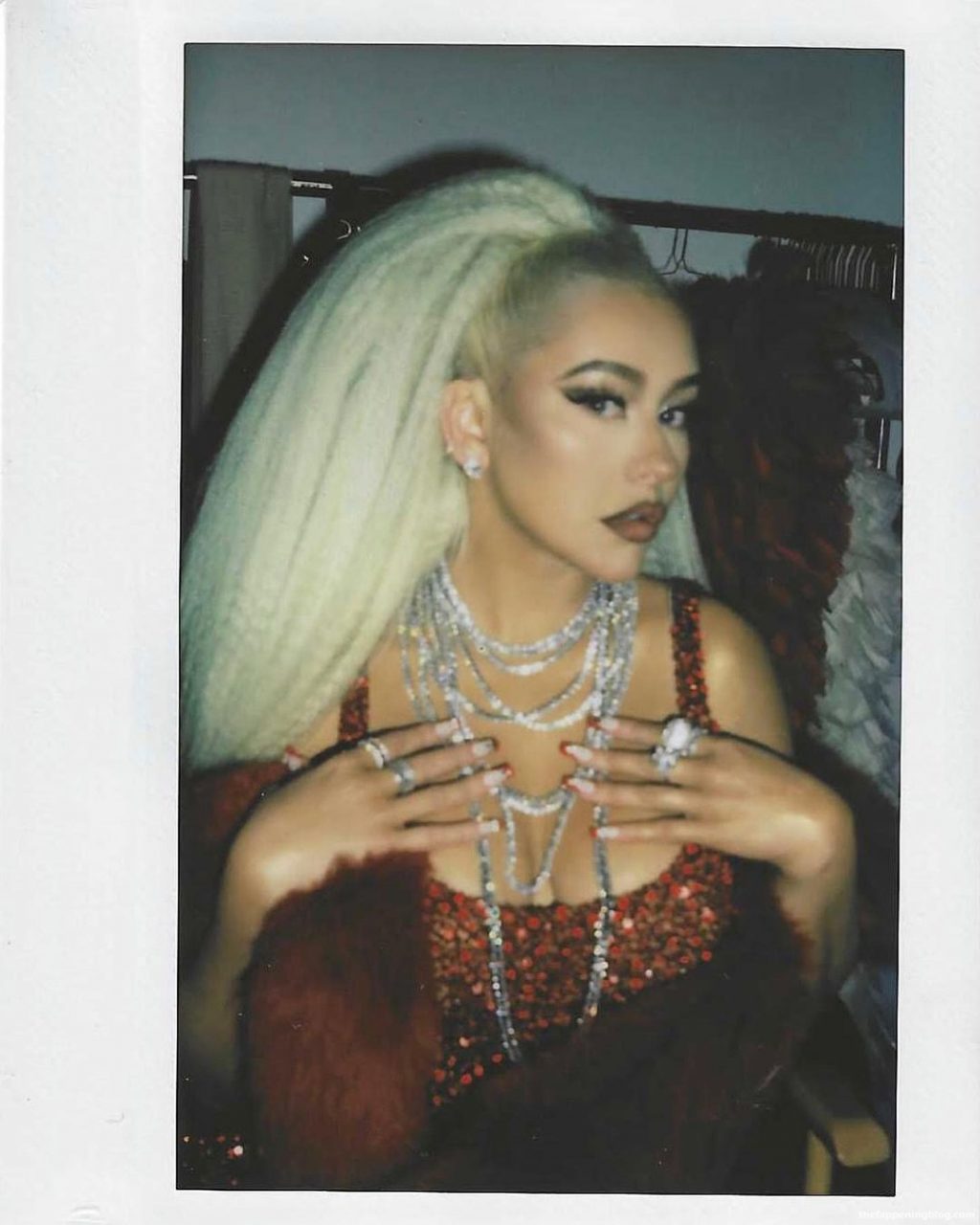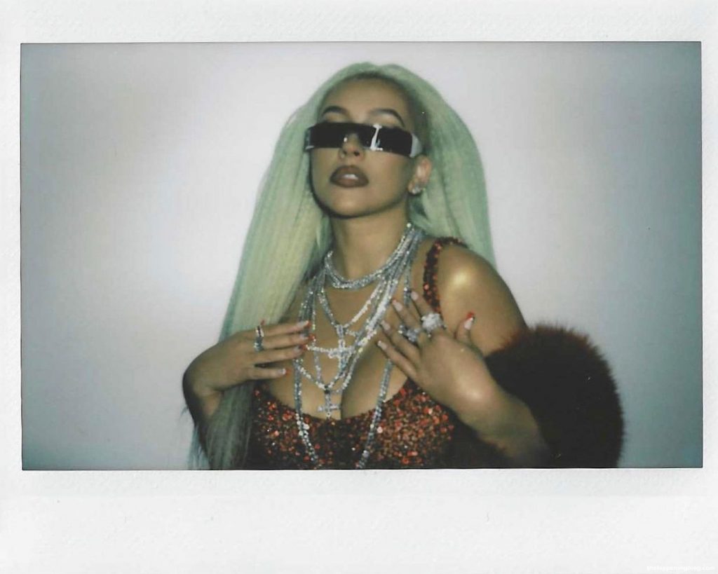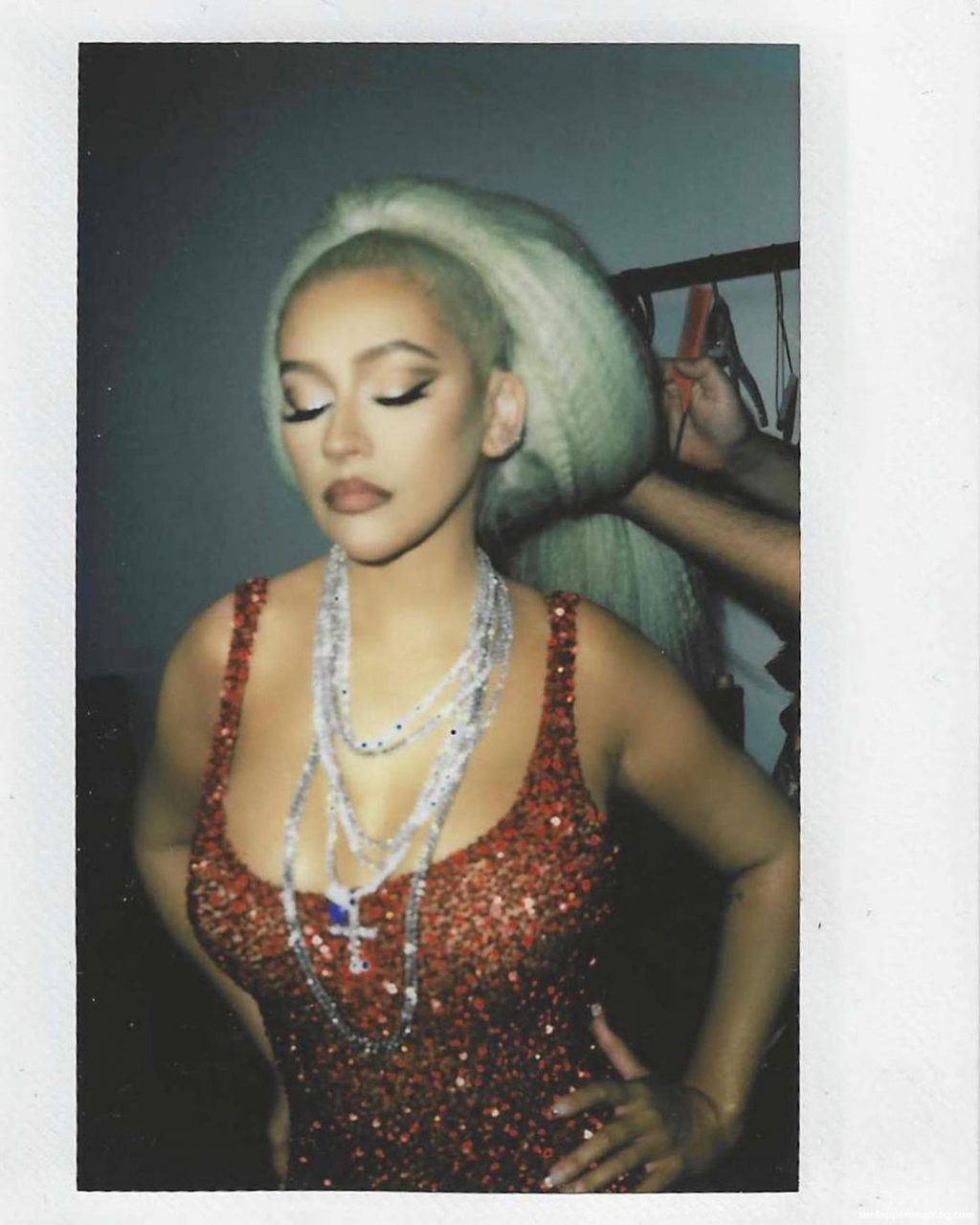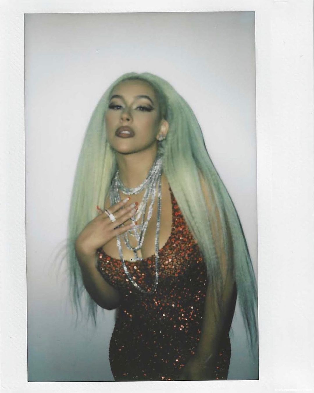 La cantante Christina Aguilera promuove il servizio SmashUps, mostrando il suo bel décolleté in un vestito rosso – Instagram, 10/05/2021. Un bel regalo sono i suoi seni nudi!