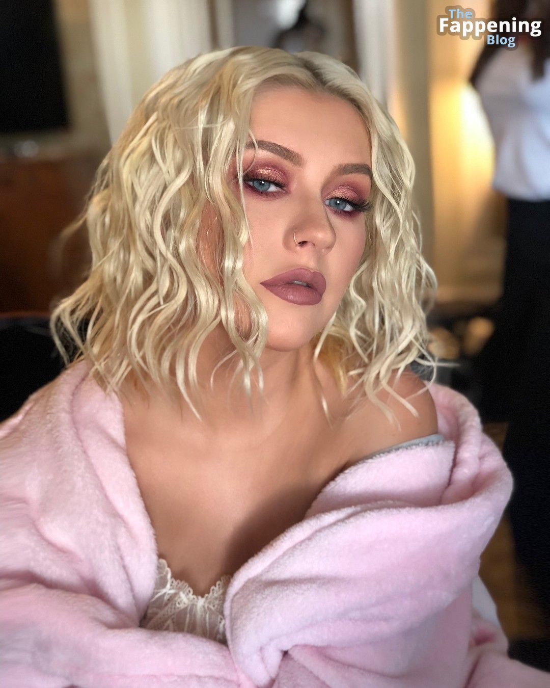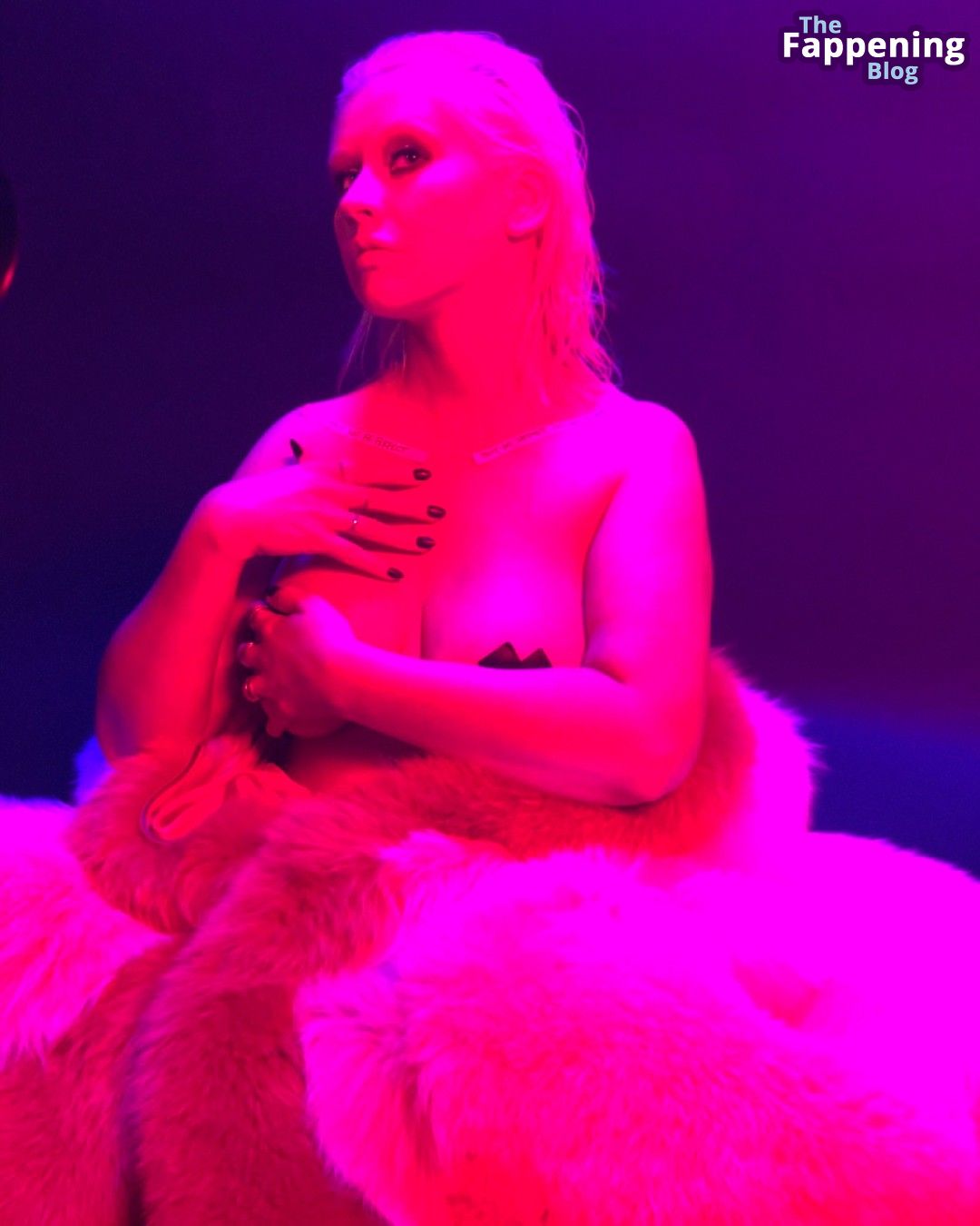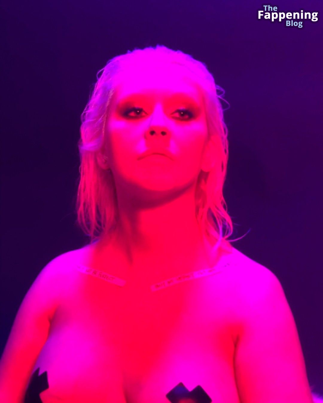 La super popolare cantante Christina Aguilera ha mostrato il suo seno con adesivi sui capezzoli.