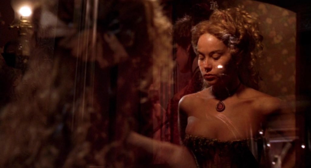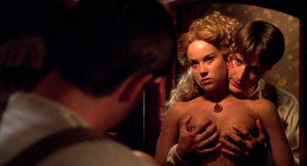 Guarda la scena sexy non-nuda di Christina Applegate in “Wild Bill” (1995), dove puoi vedere ancora una giovane attrice che indossa il corsetto che rendeva i suoi seni ancora più “significativi”. Il suo amante è dietro di lei e le stringe il seno mentre entrambi stanno davanti allo specchio, guardandosi negli occhi. Christina in qualche modo ha evitato qualsiasi vera nudità sullo schermo, e nel 2019 ha 47 anni.