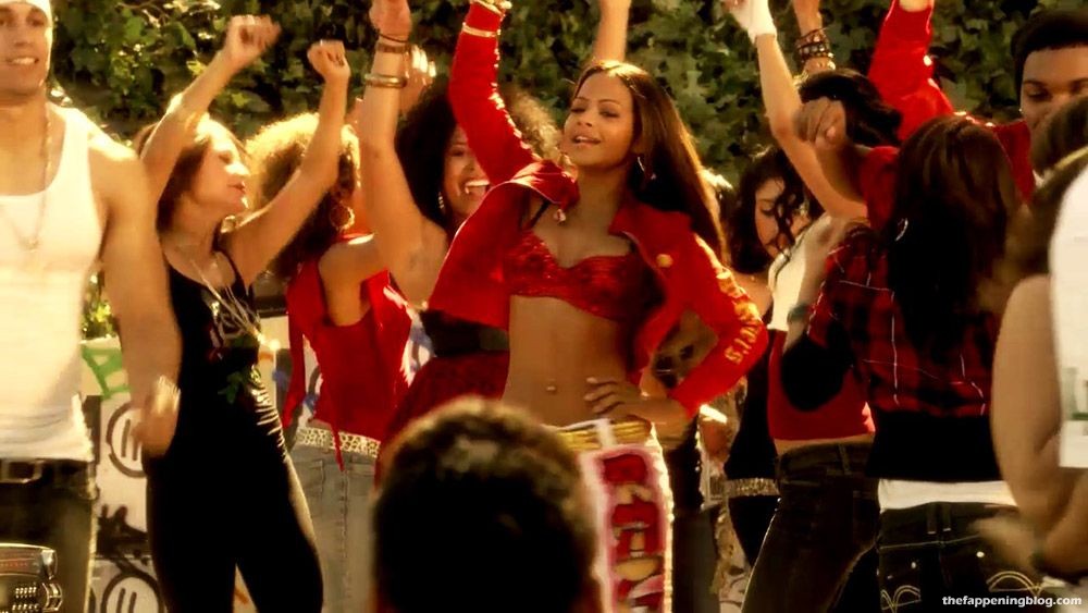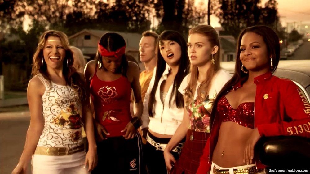 In the first scene of Christina Milian, she is showing the cleavage and her stomach in an opened jacket. She wears a red sequined bra underneath as she watches some people dancing. Then she’s joining the dancers, as dances sexy. Nikki SooHoo and Holland Roden are joining her.