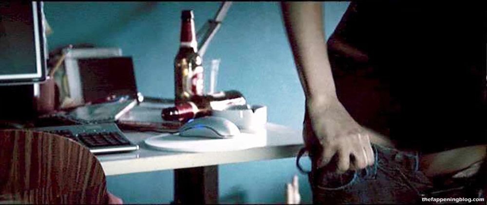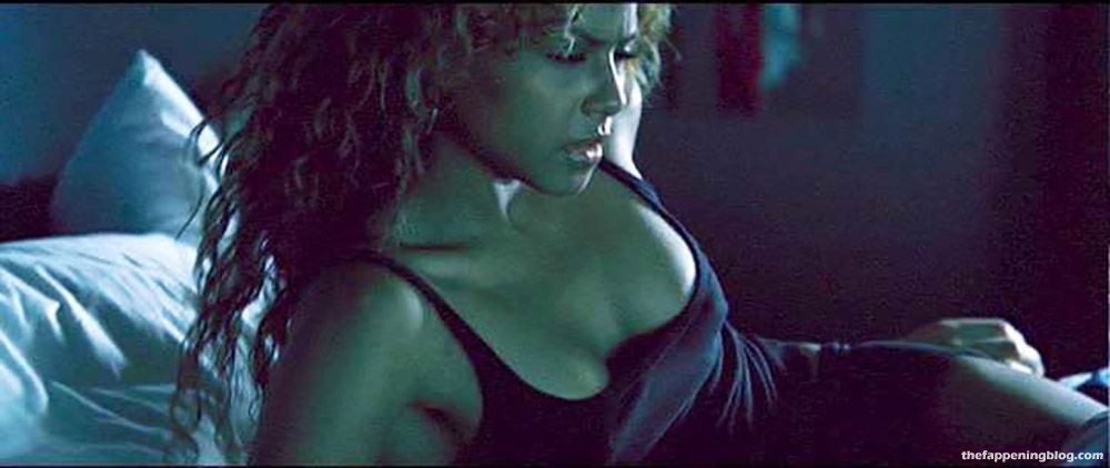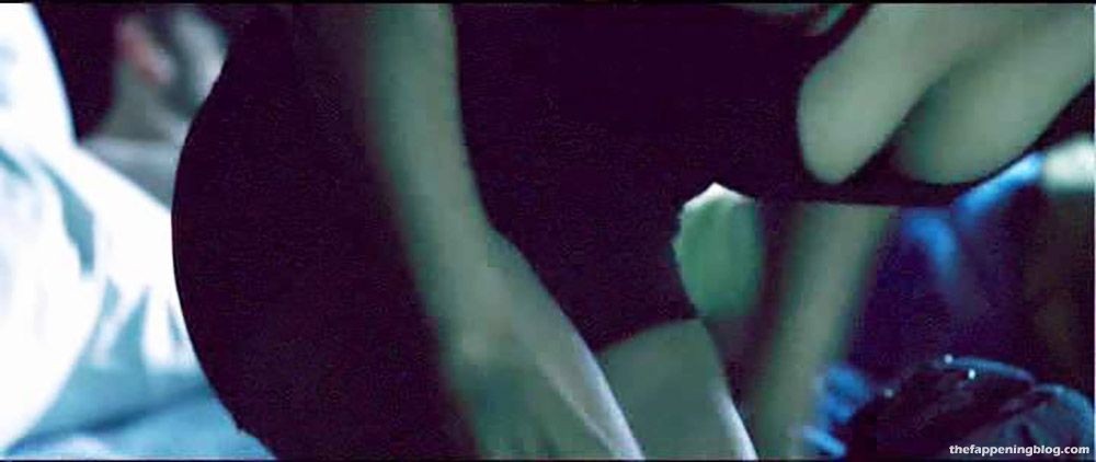 Here is the scene from ‘Pulse’, where Christina Milian is wearing a low-cut black tank top. It shows cleavage while getting out of bed and then putting jeans on, giving us a look down her top and at her black panties. What an ass.