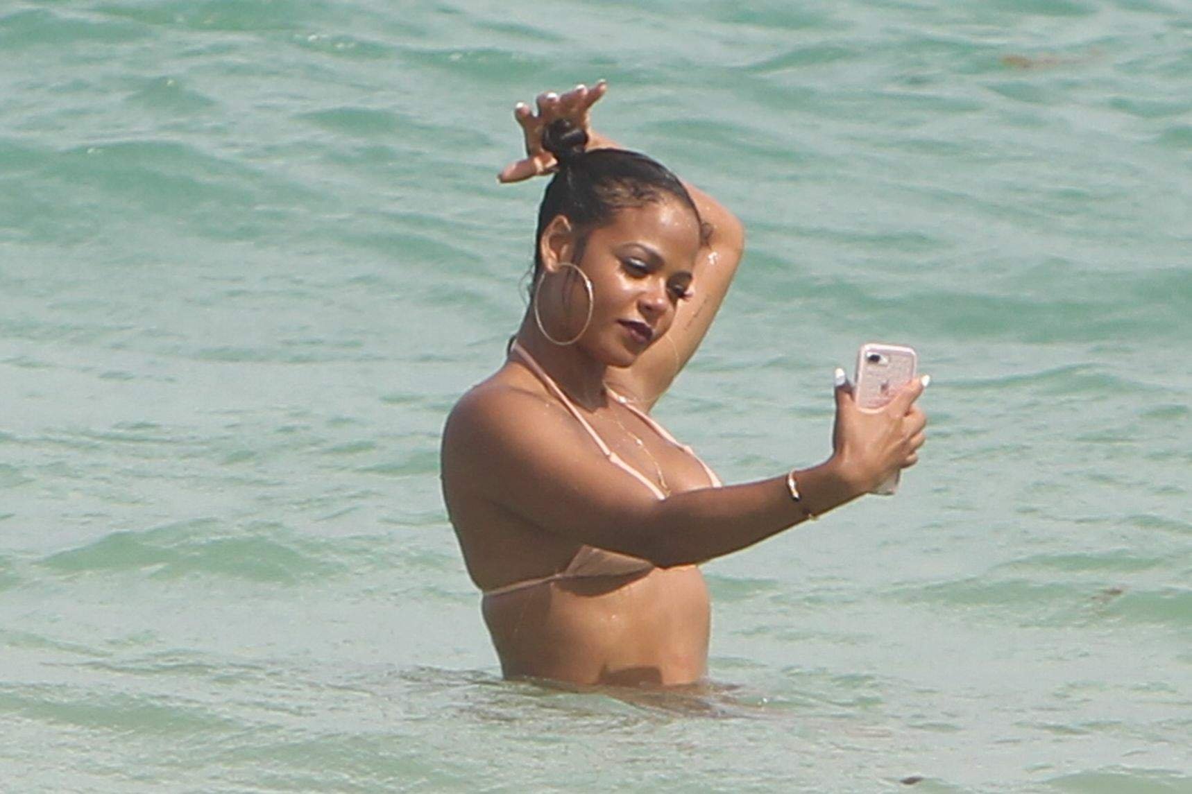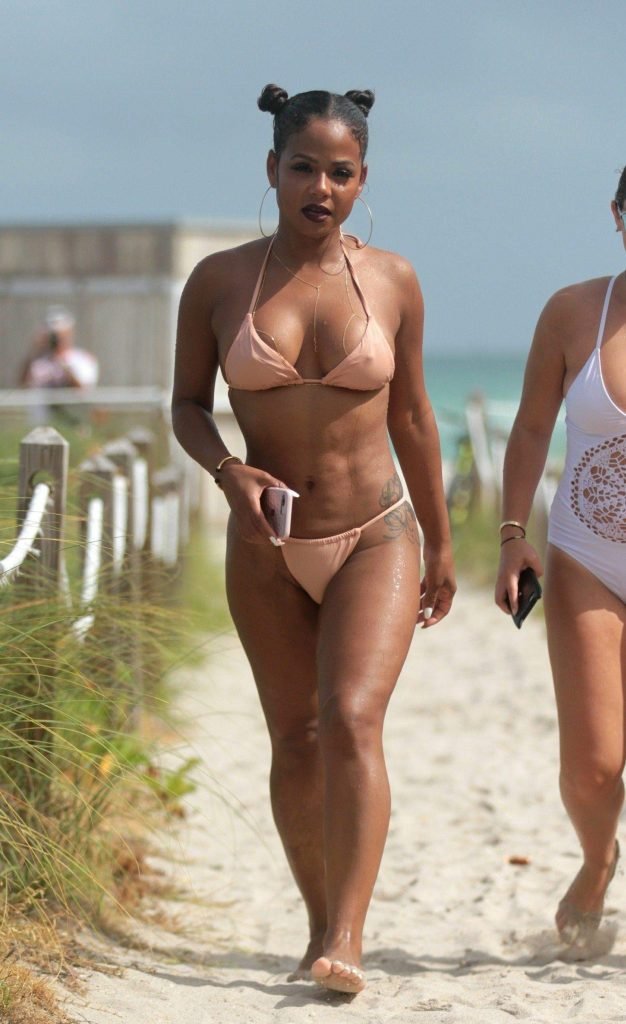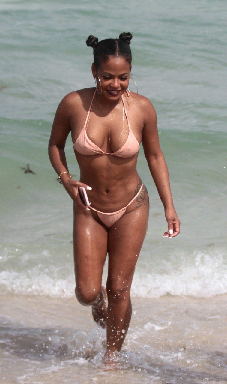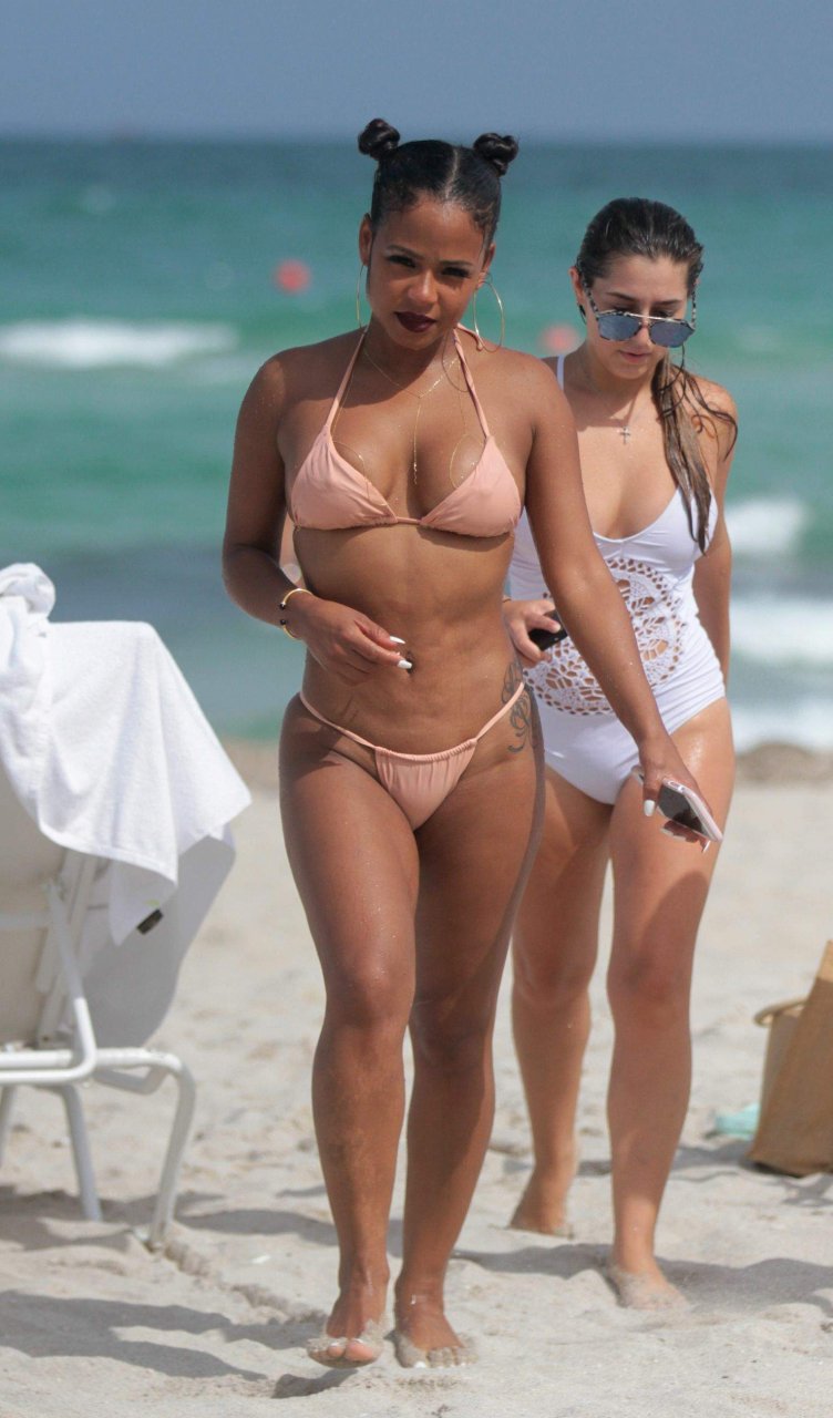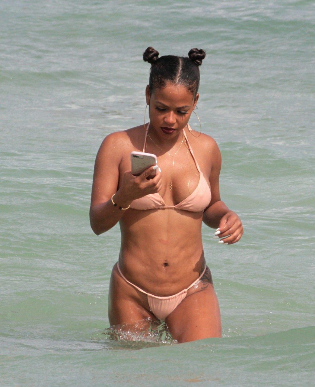 Christina Milian mostra il suo corpo in bikini sulla spiaggia di Miami, 20/08/2017. Christina Milian è una star americana dell’R&B e attrice.