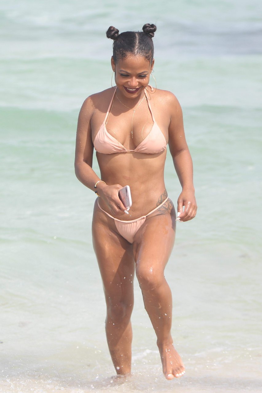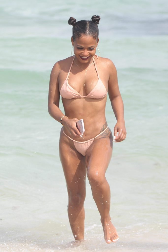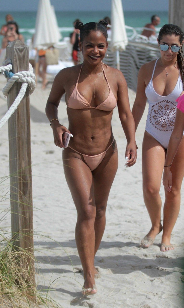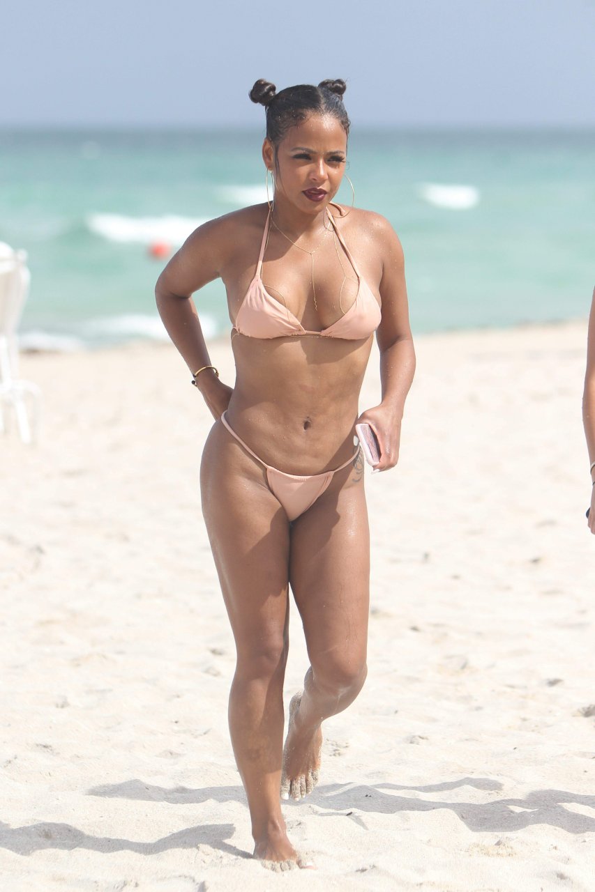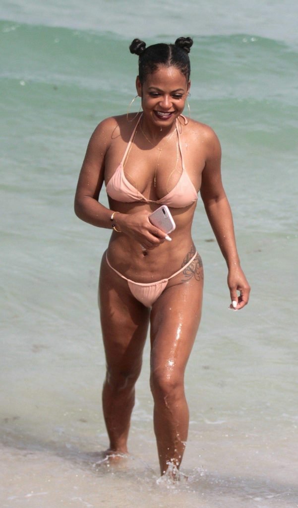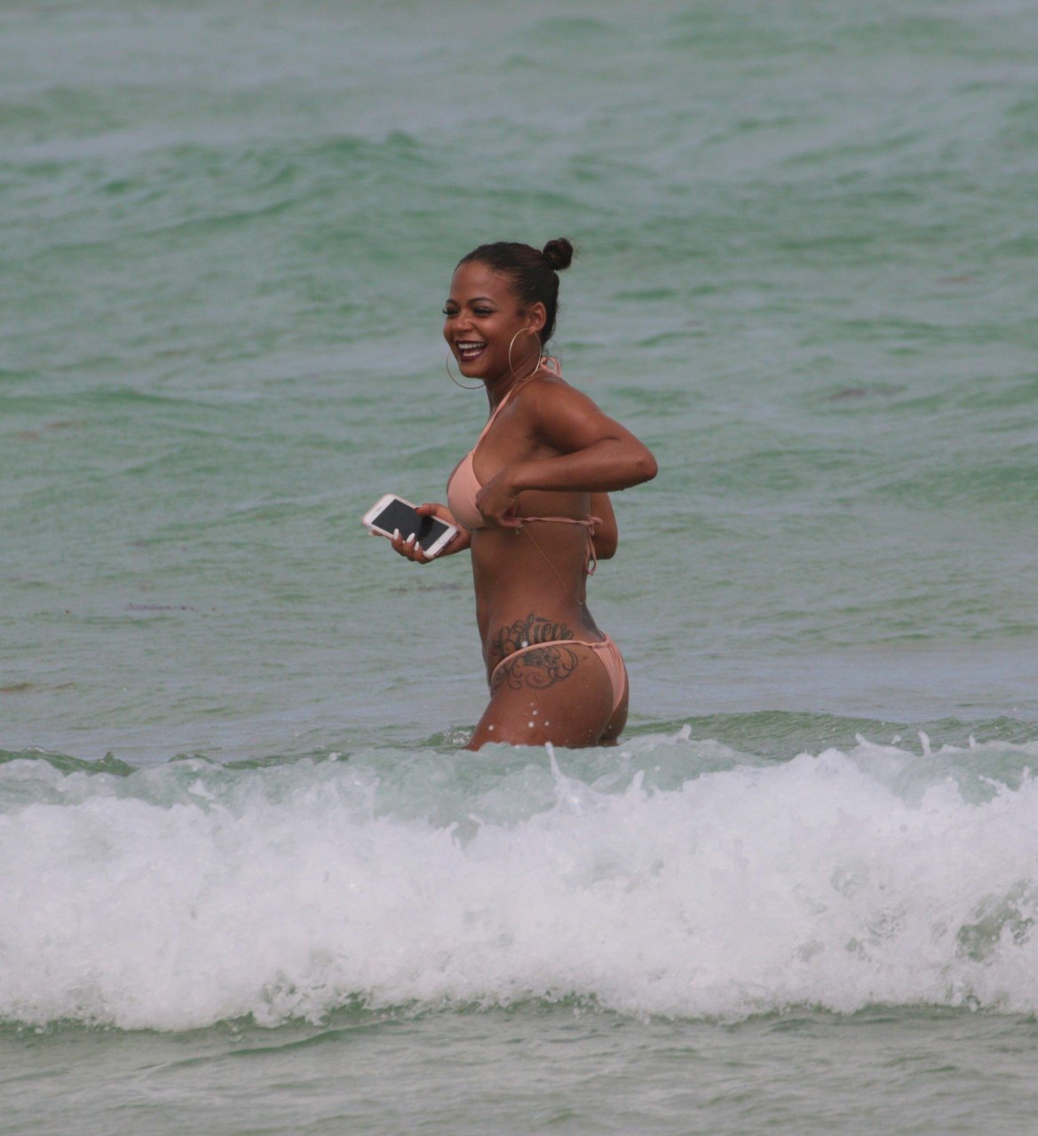 Christina Milian mostra il suo corpo in bikini sulla spiaggia di Miami, 20/08/2017. Christina Milian è una star americana dell’R&B e attrice.