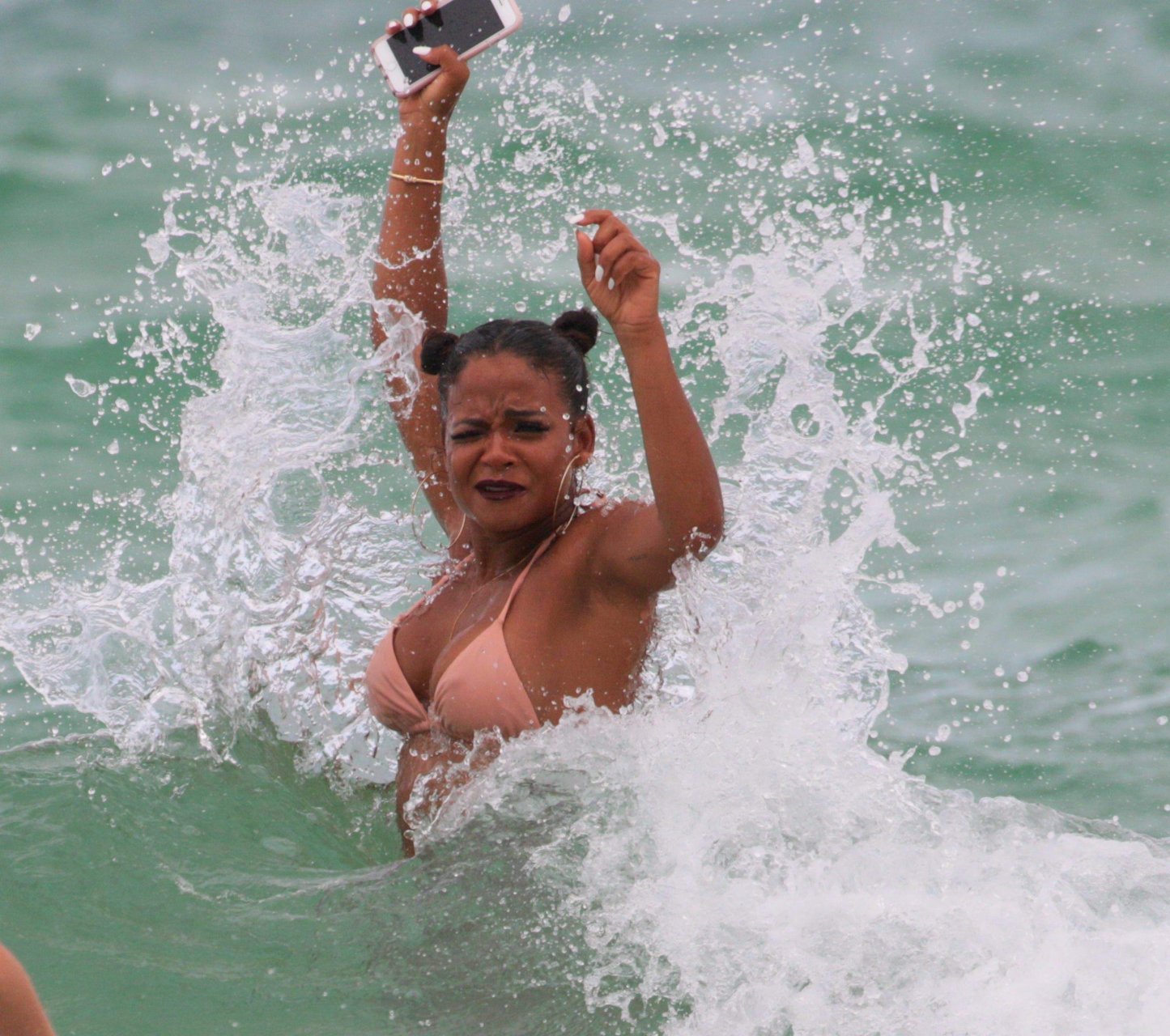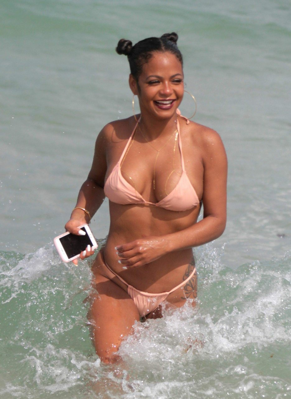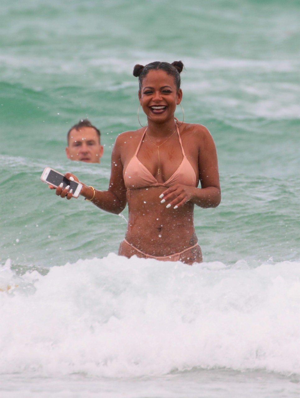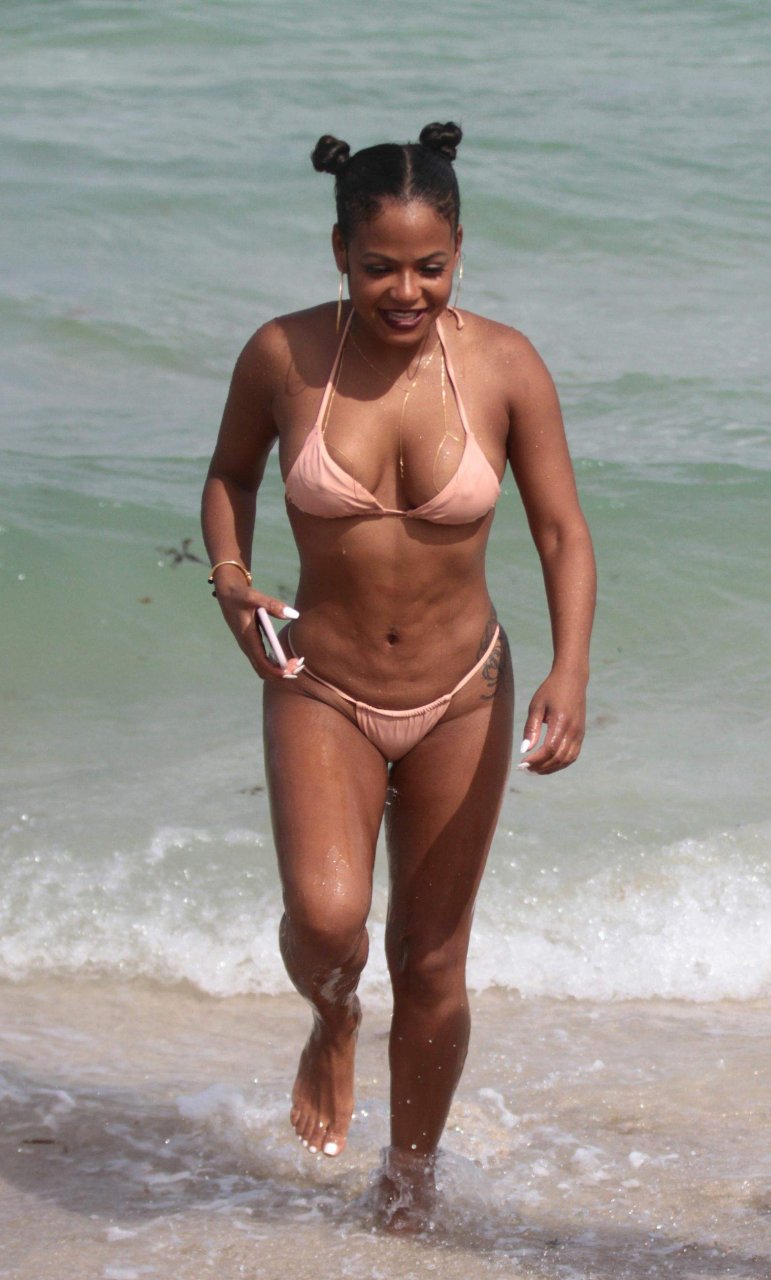 Christina Milian mostra il suo corpo in bikini sulla spiaggia di Miami, 20/08/2017. Christina Milian è una star americana dell’R&B e attrice.