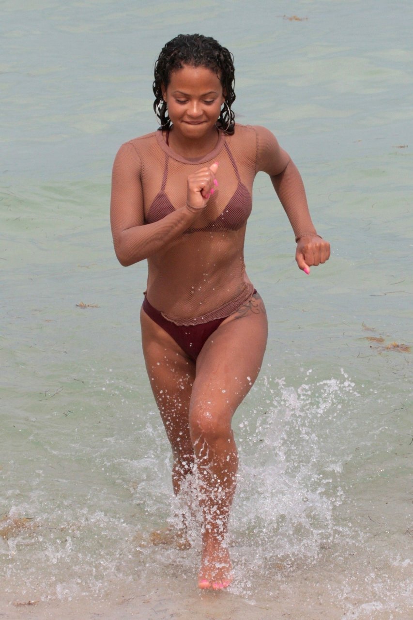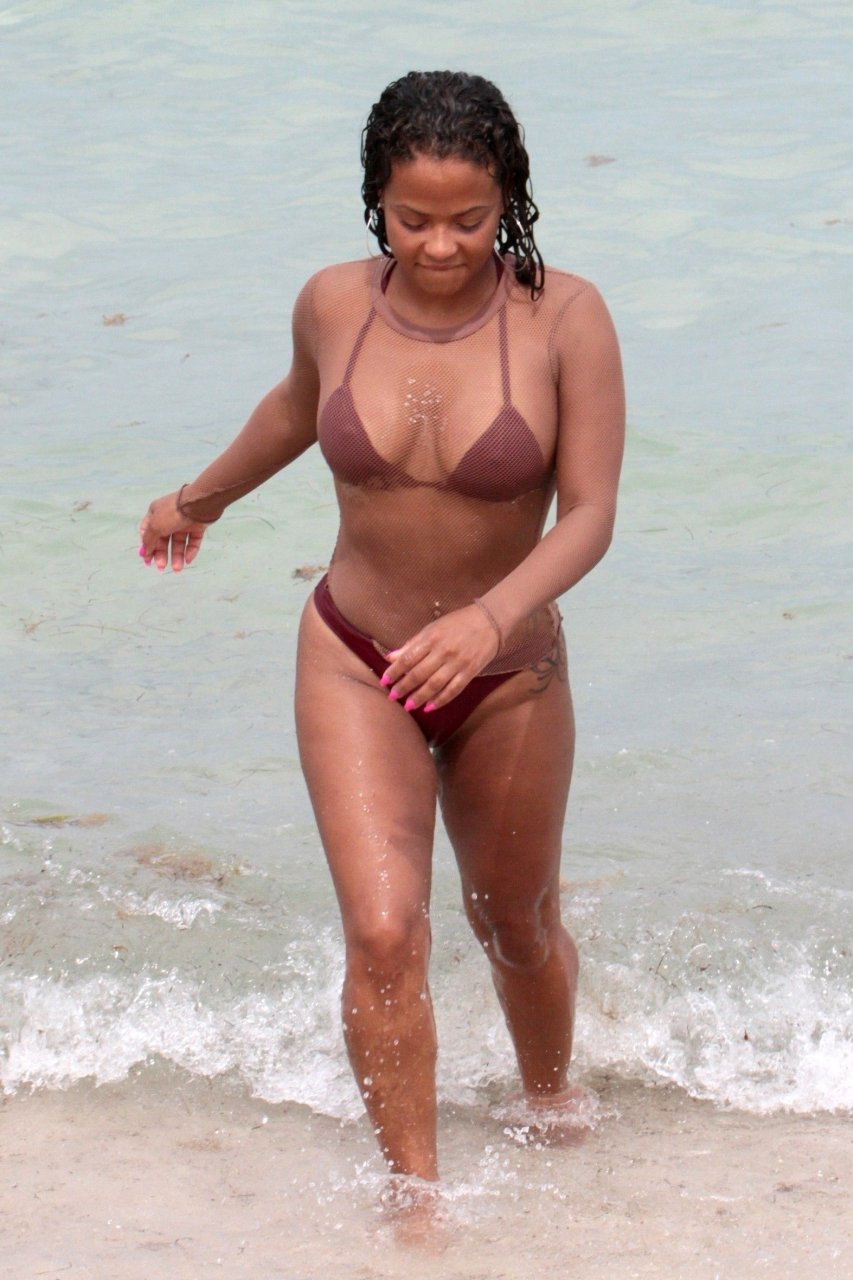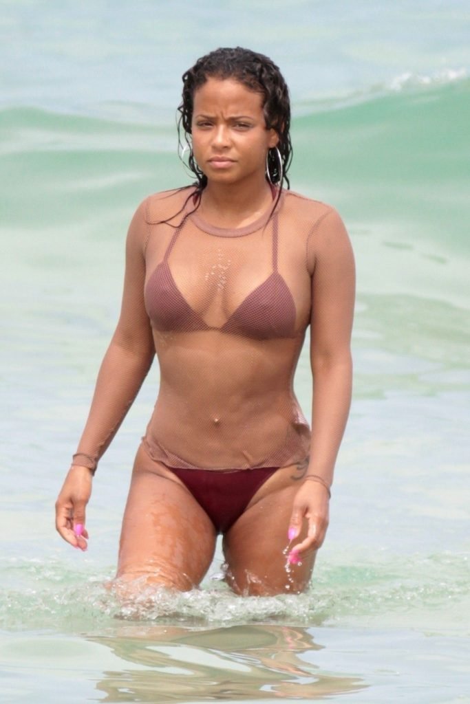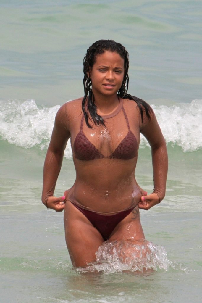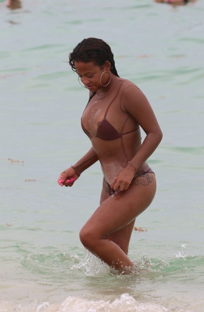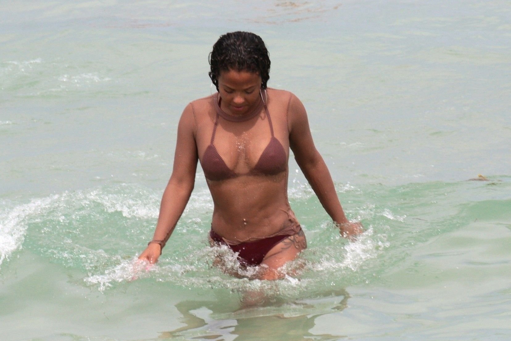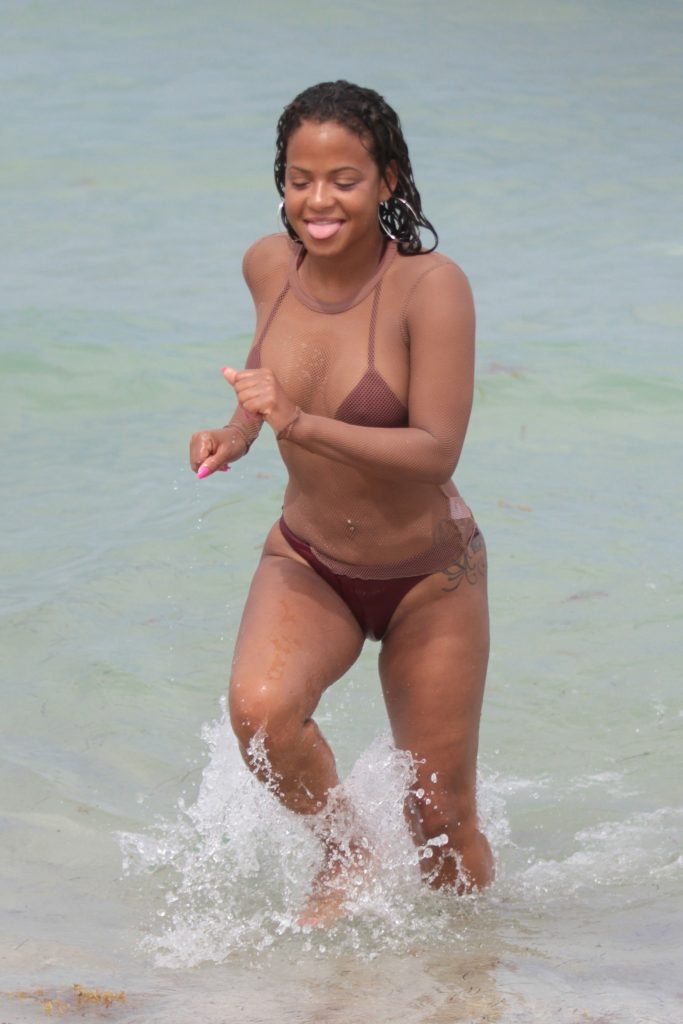 Cantante, cantautrice e attrice americana Christina Milian si gode la spiaggia in un bikini marrone, 22/07/2017.