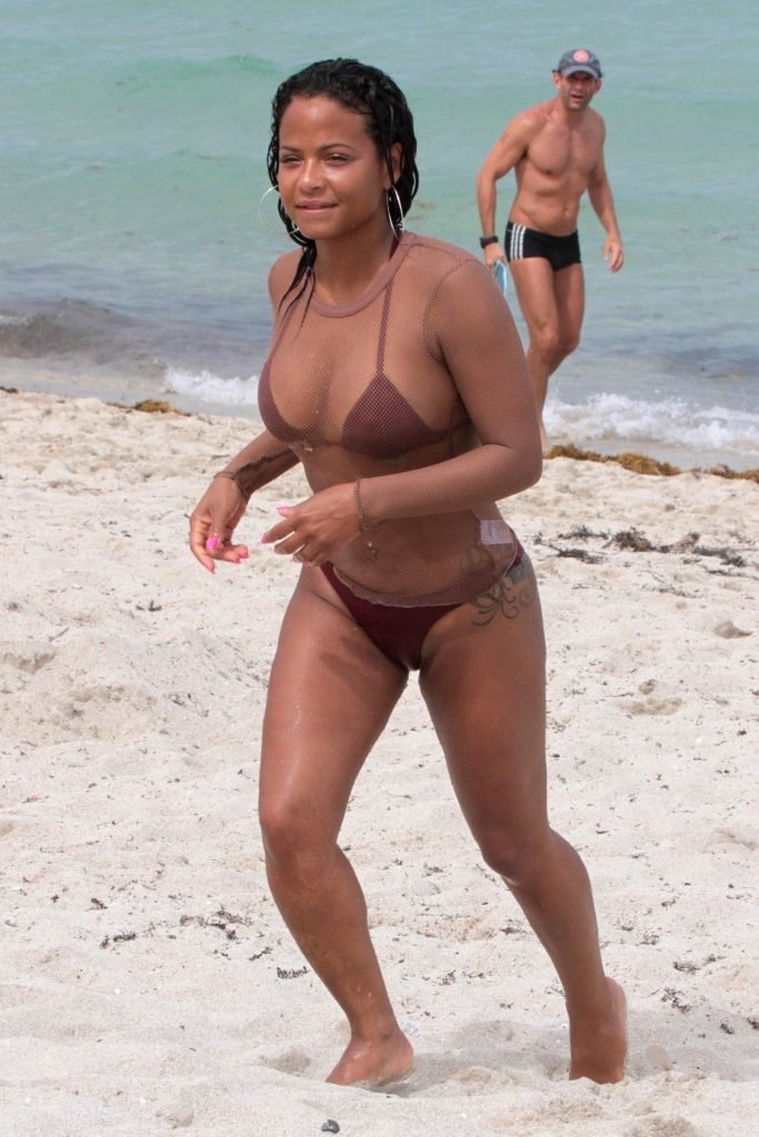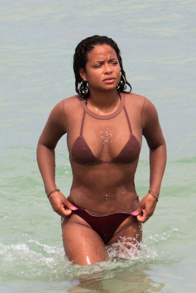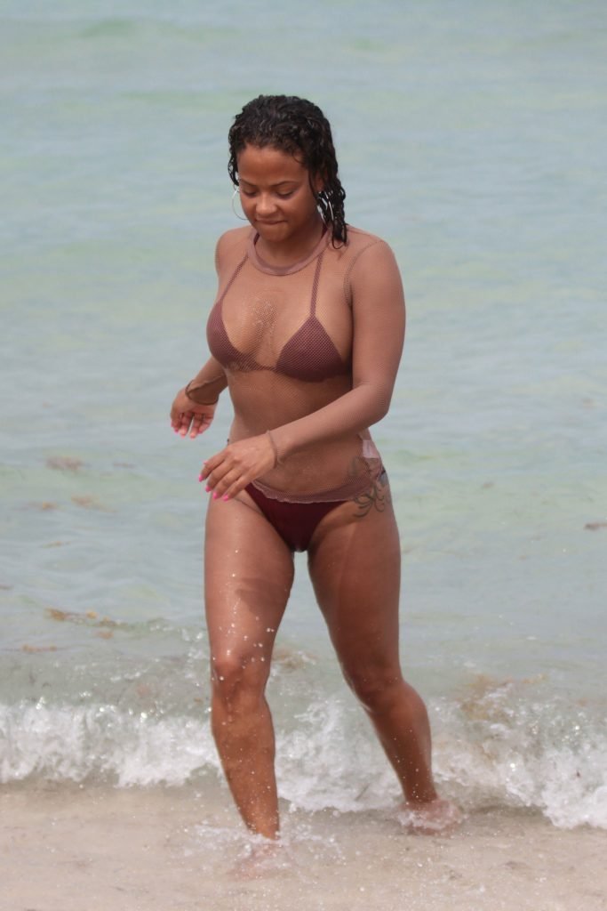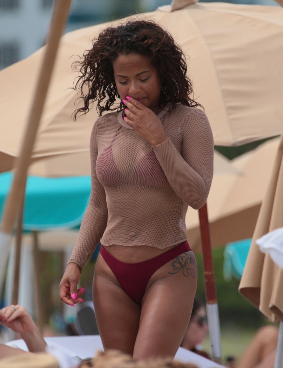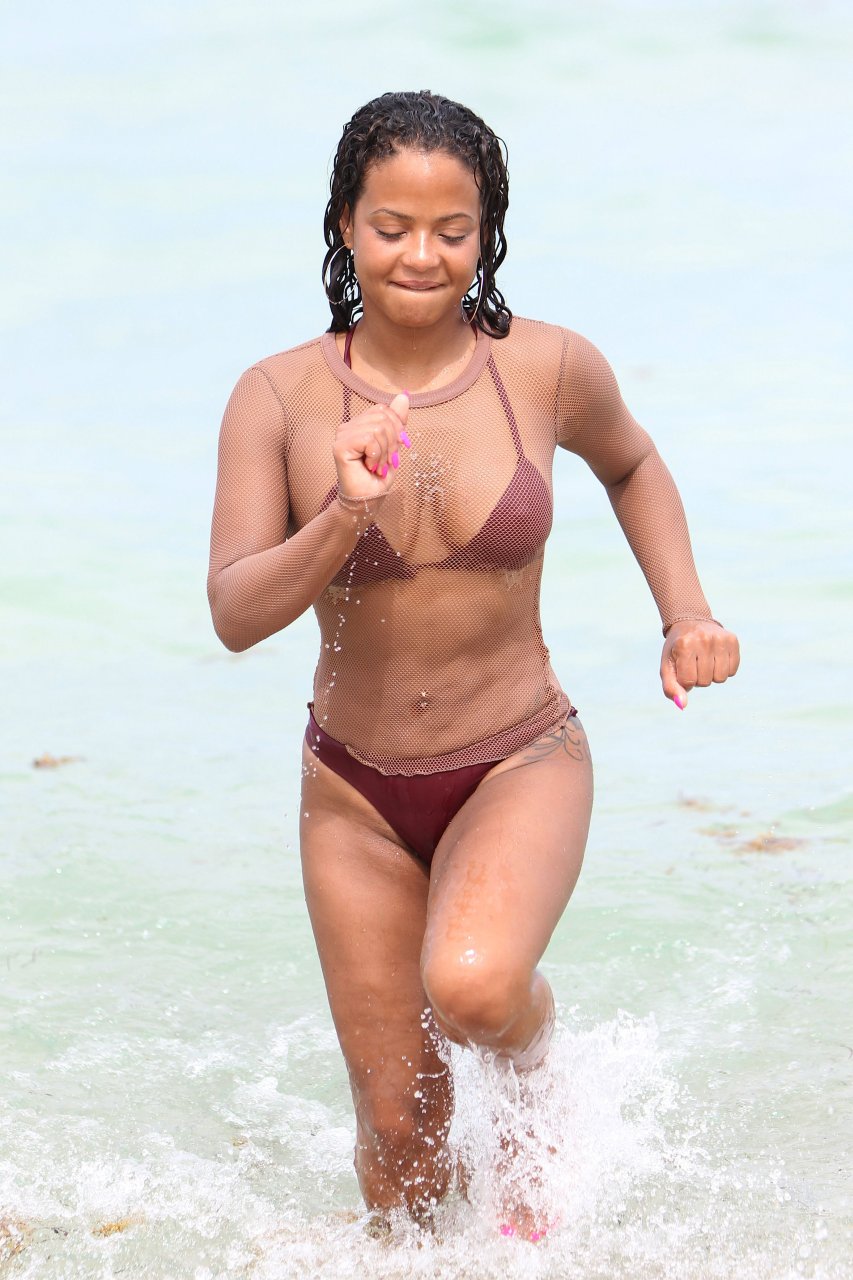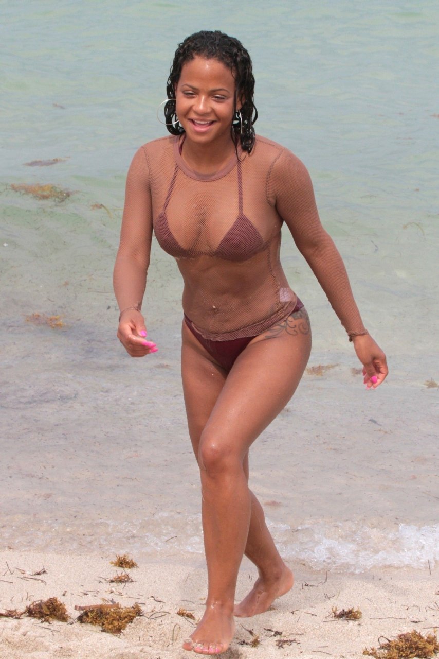Cantante, cantautrice e attrice americana Christina Milian si gode la spiaggia in un bikini marrone, 22/07/2017.
