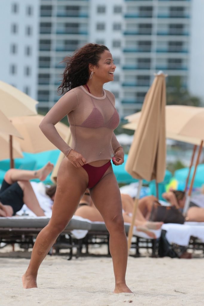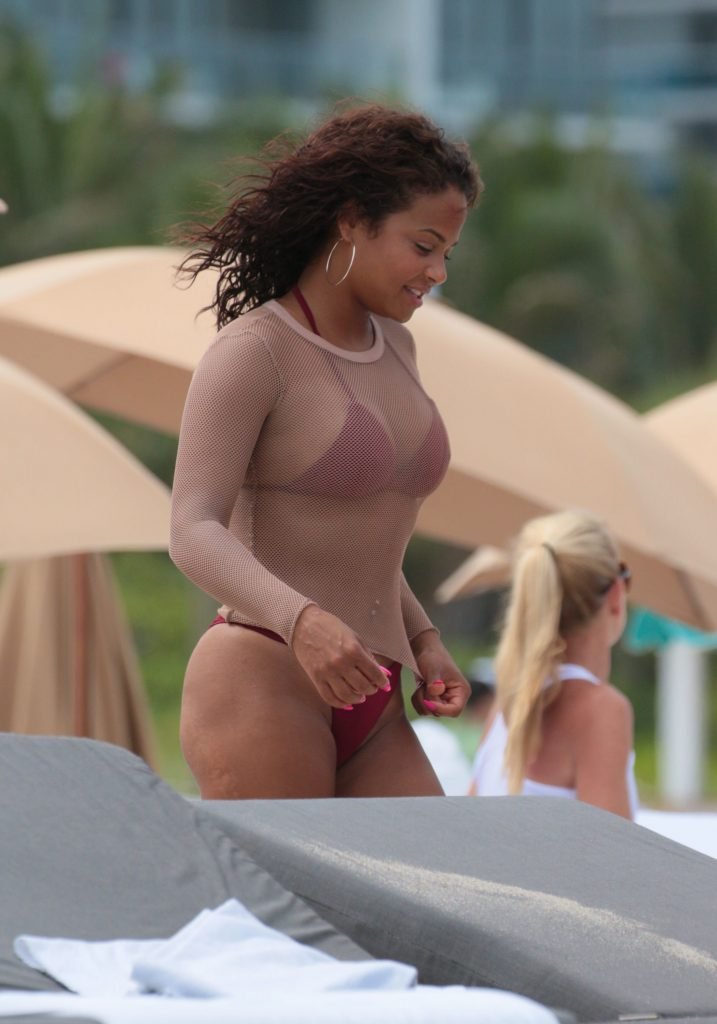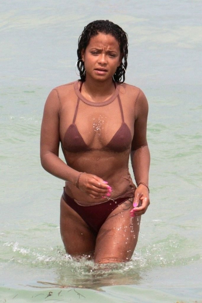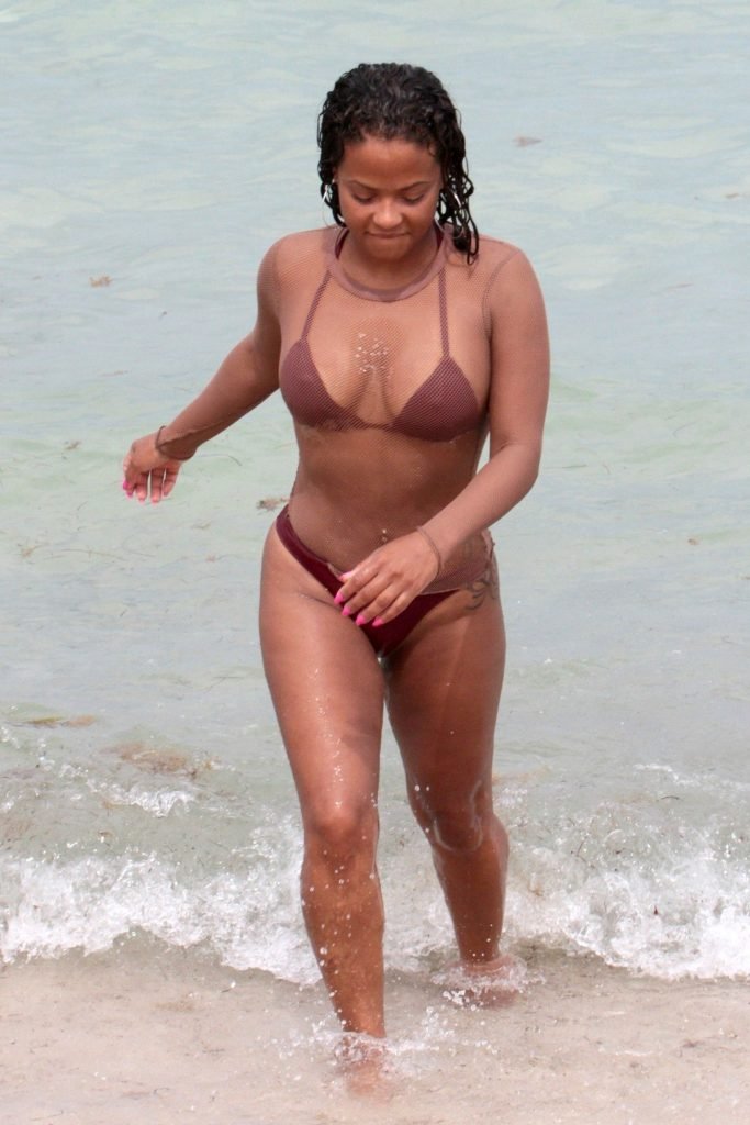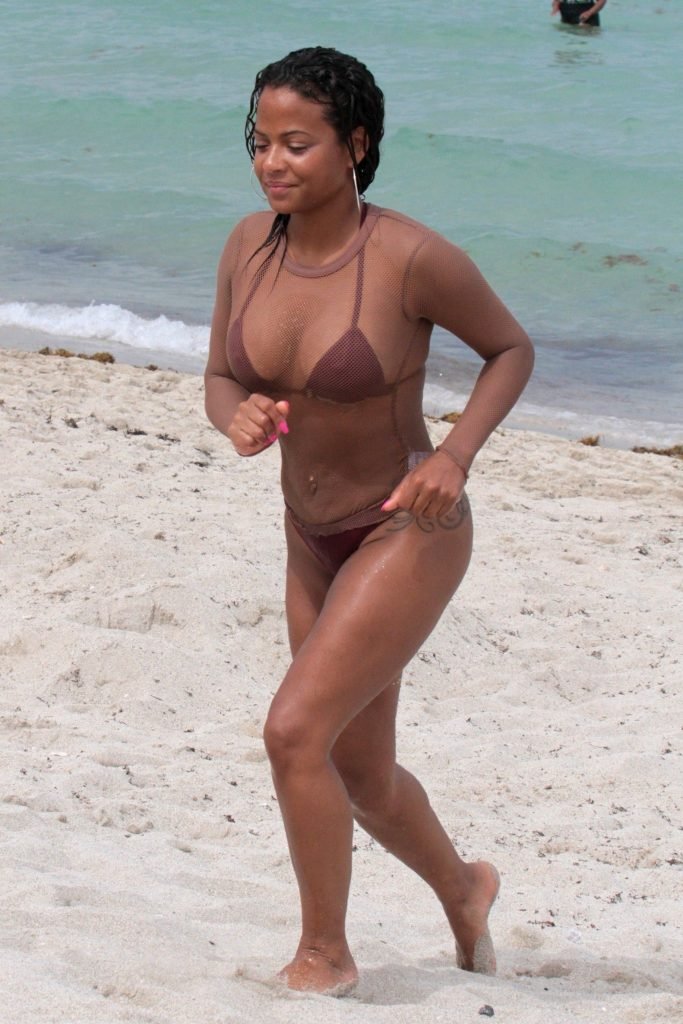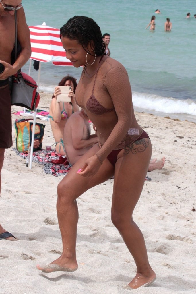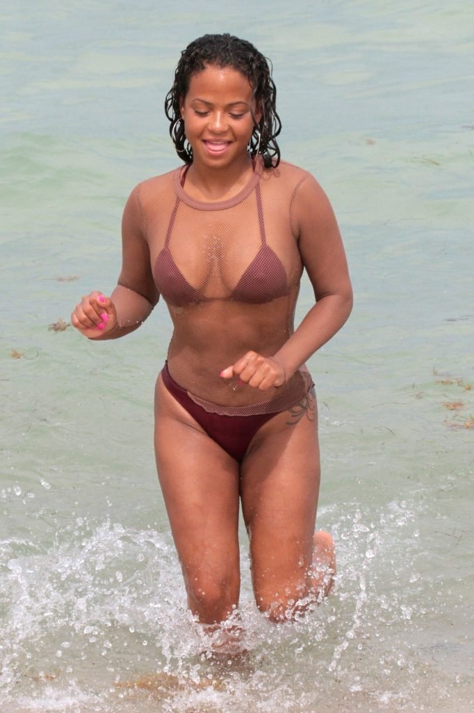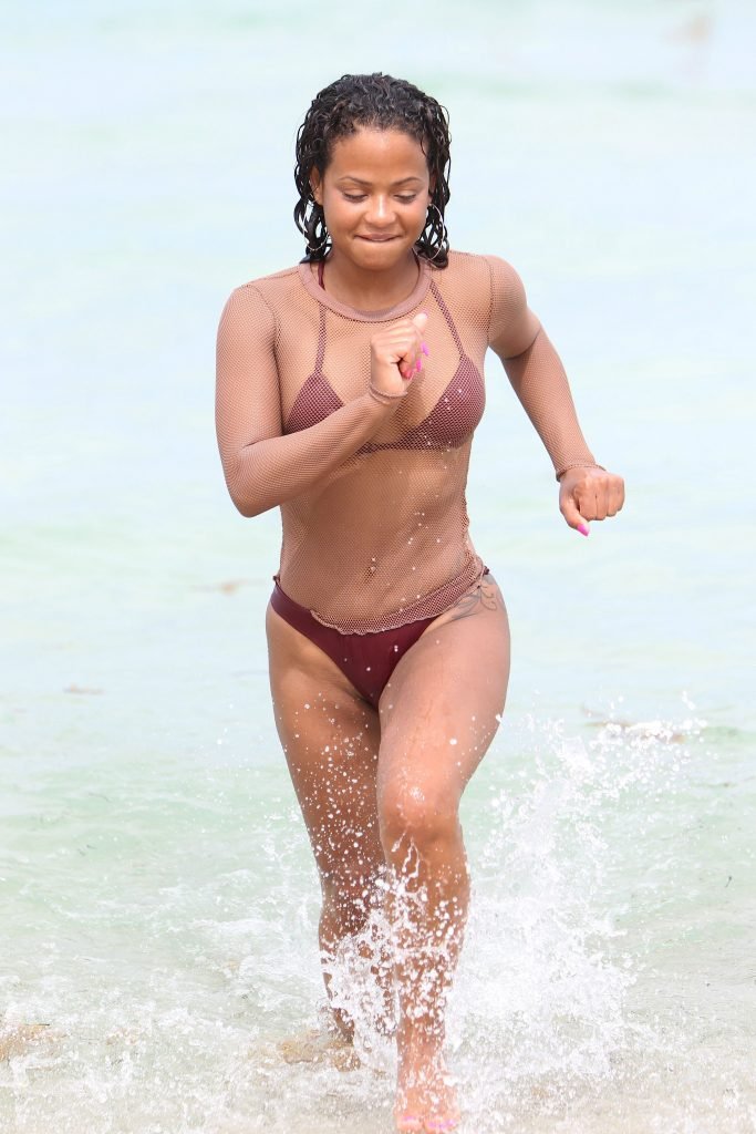 Cantante, cantautrice e attrice americana Christina Milian si gode la spiaggia in un bikini marrone, 22/07/2017.