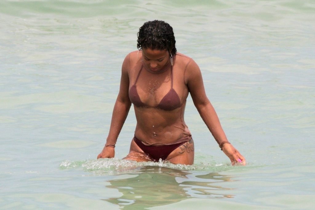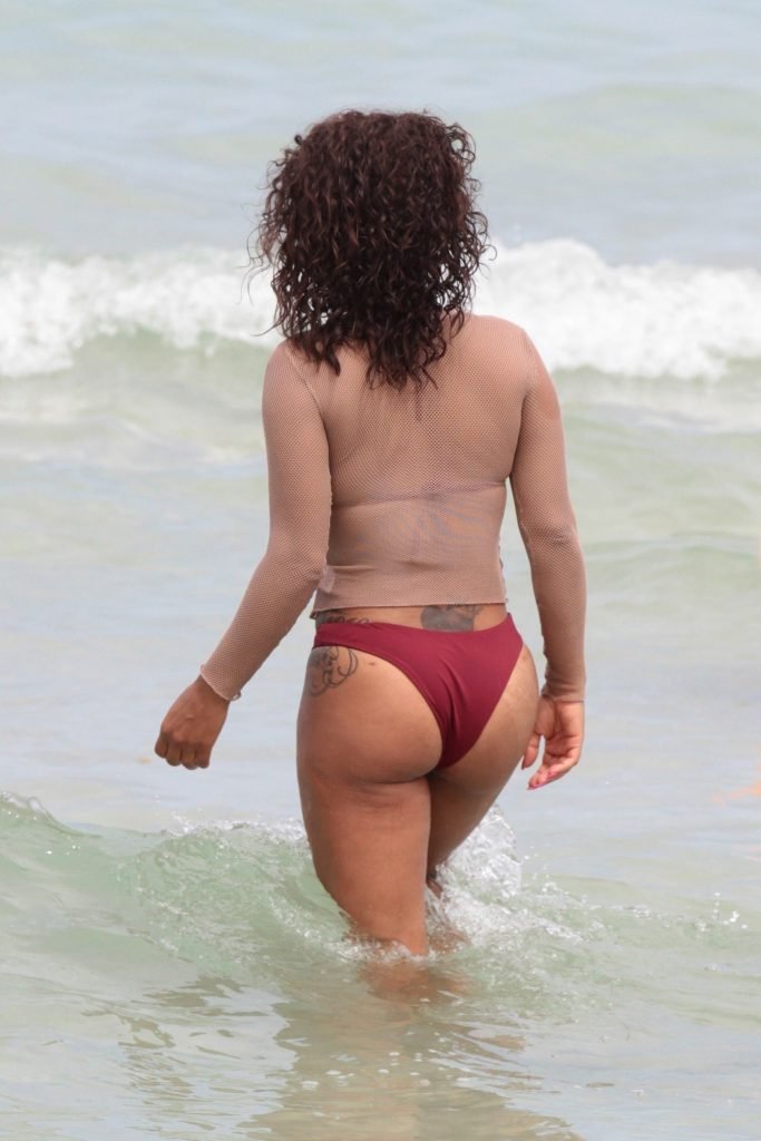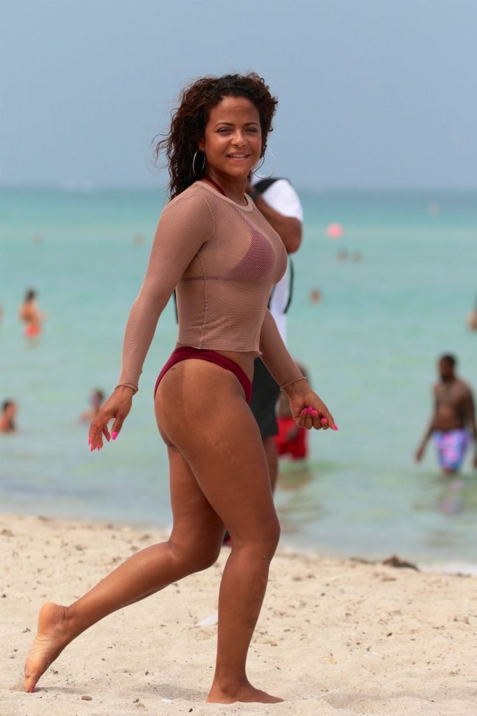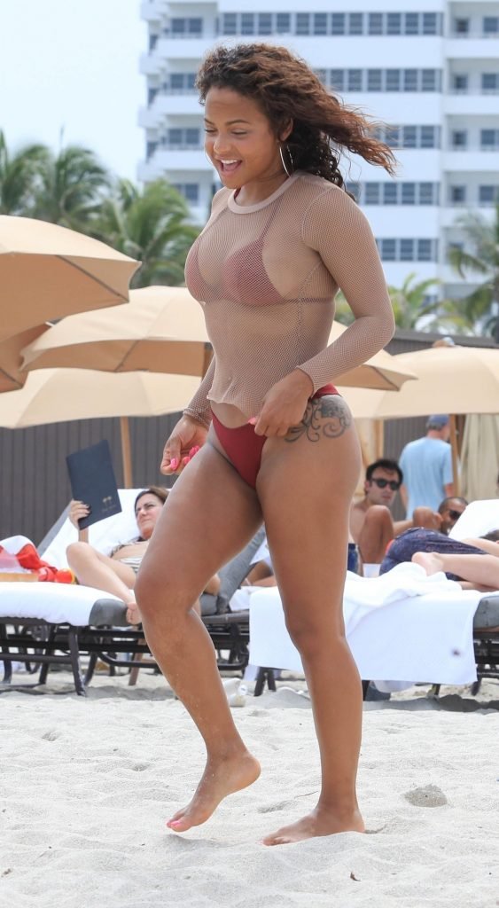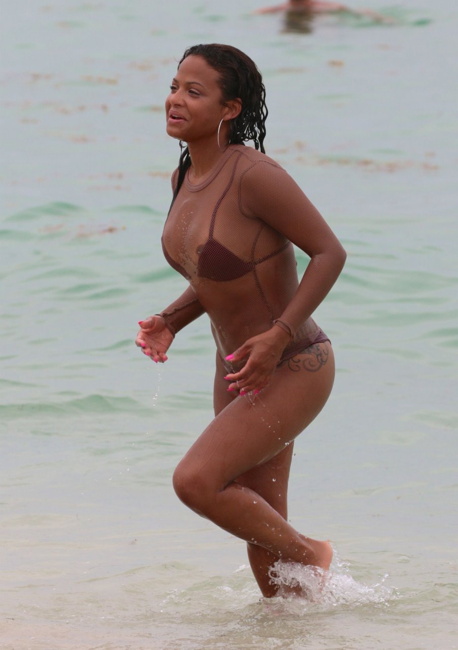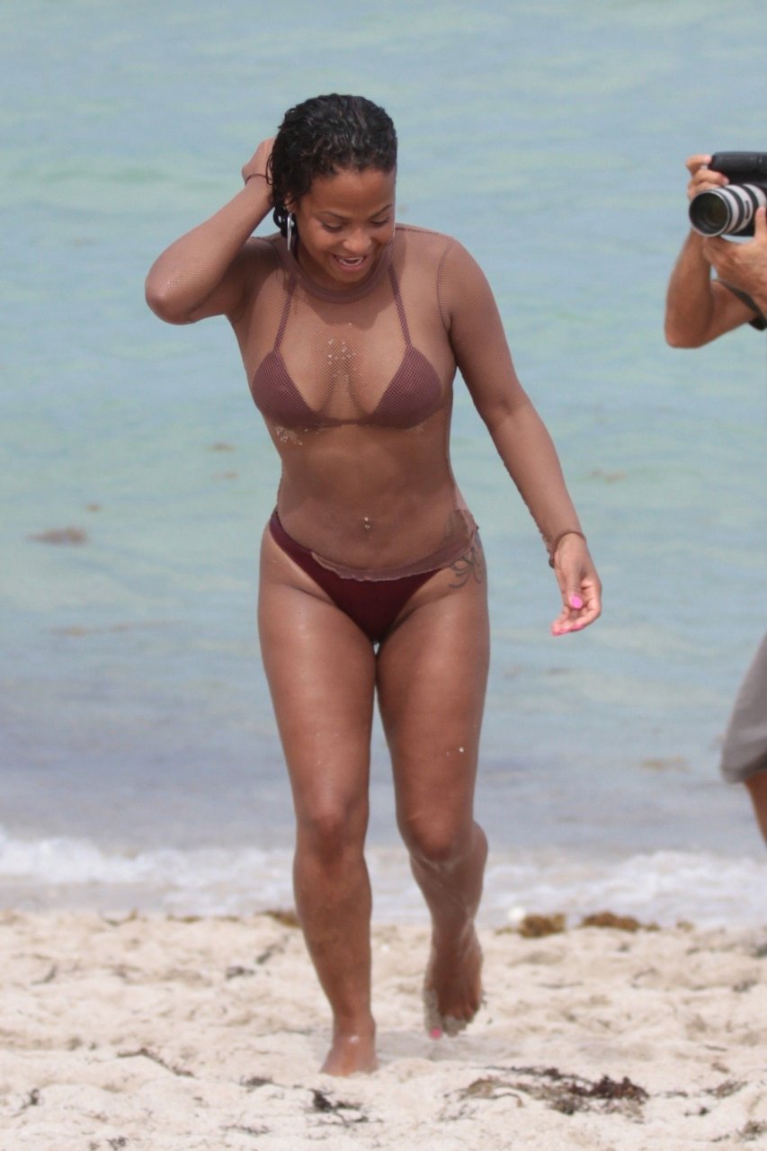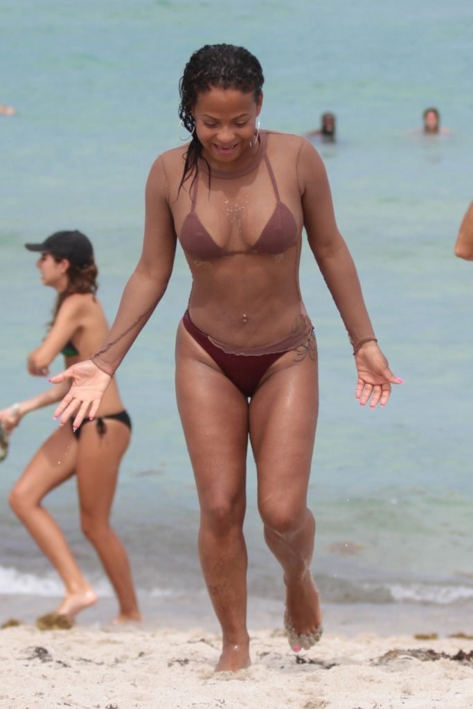 Cantante, cantautrice e attrice americana Christina Milian si gode la spiaggia in un bikini marrone, 22/07/2017.