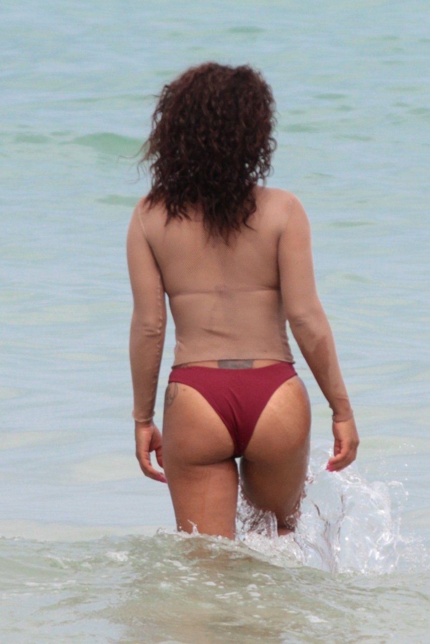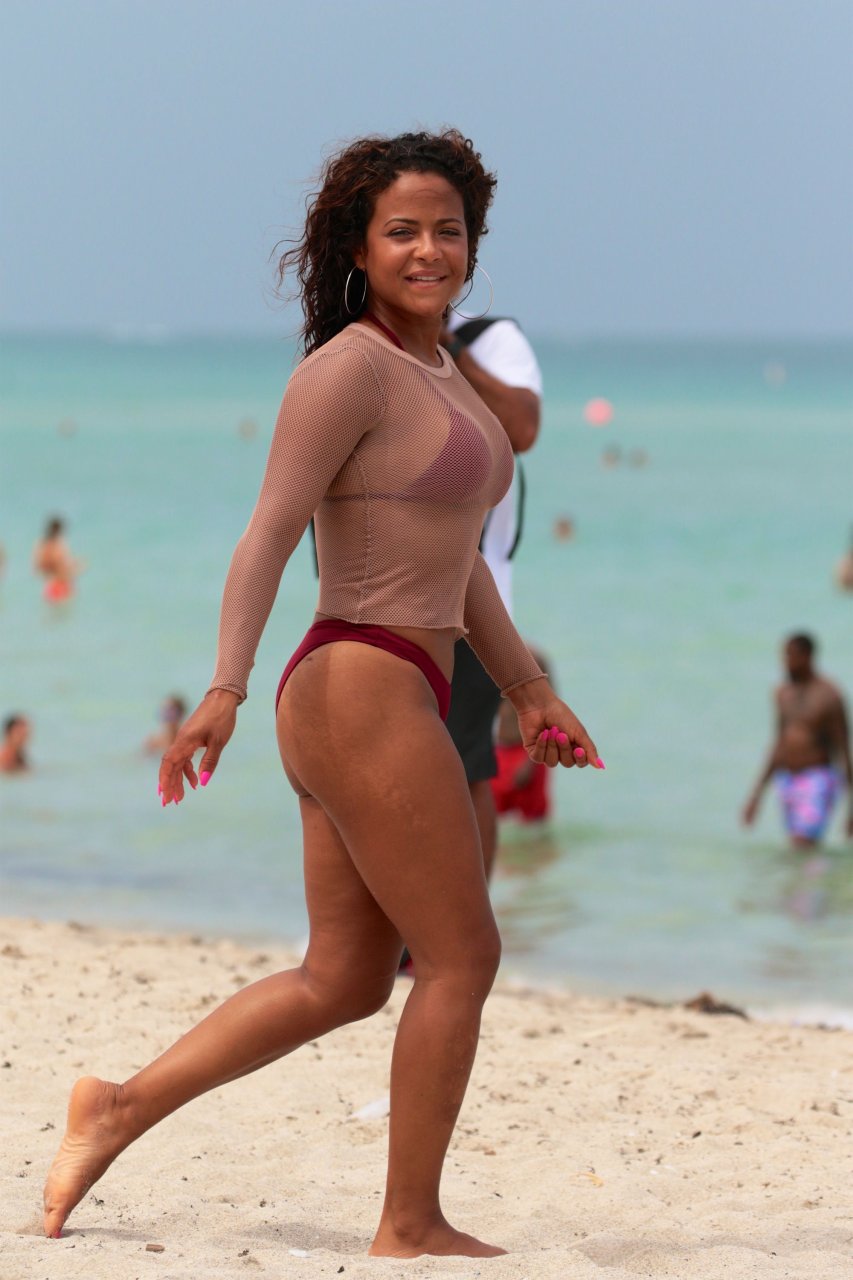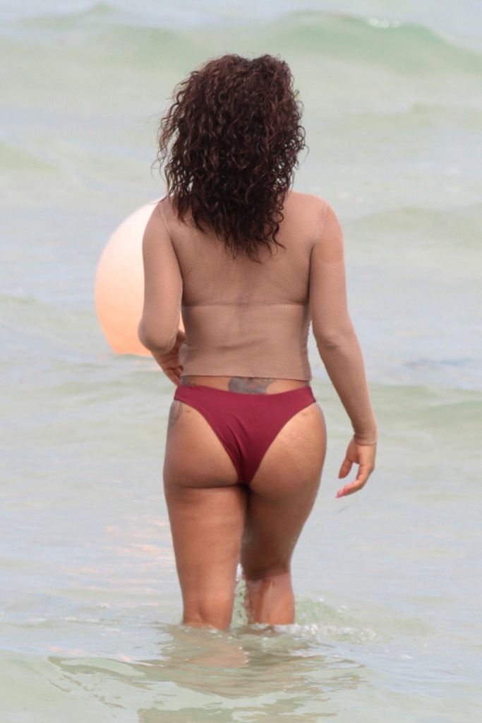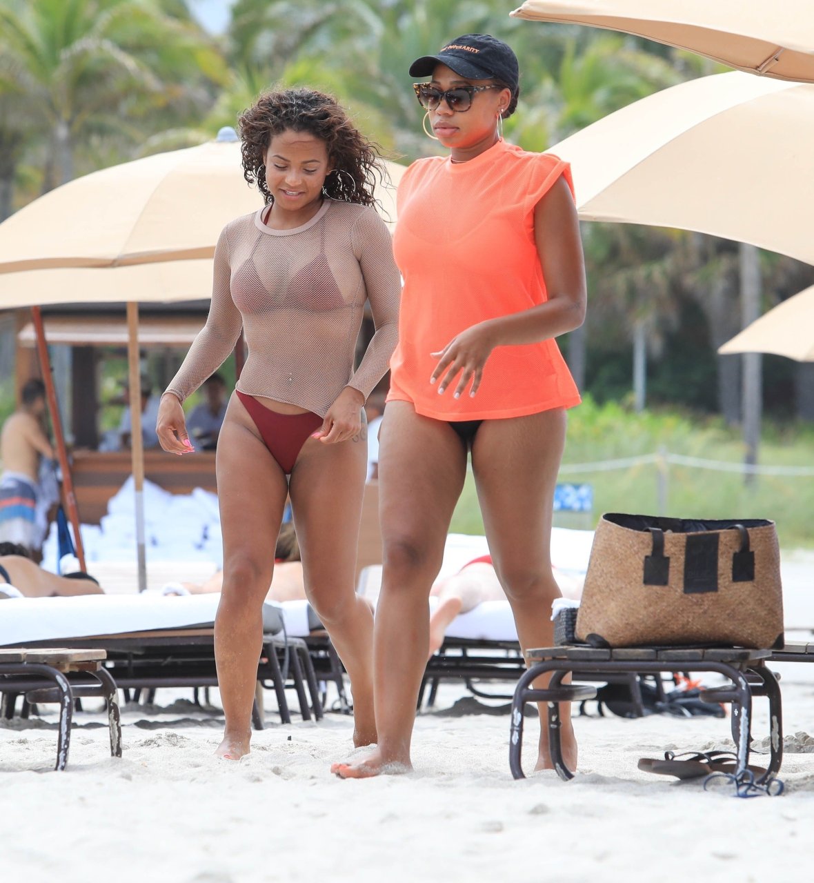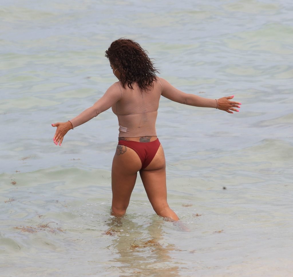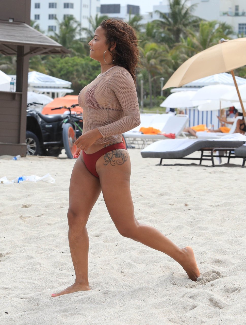 Cantante, cantautrice e attrice americana Christina Milian si gode la spiaggia in un bikini marrone, 22/07/2017.