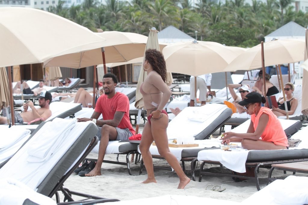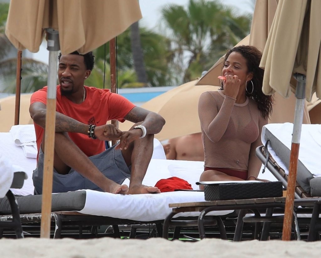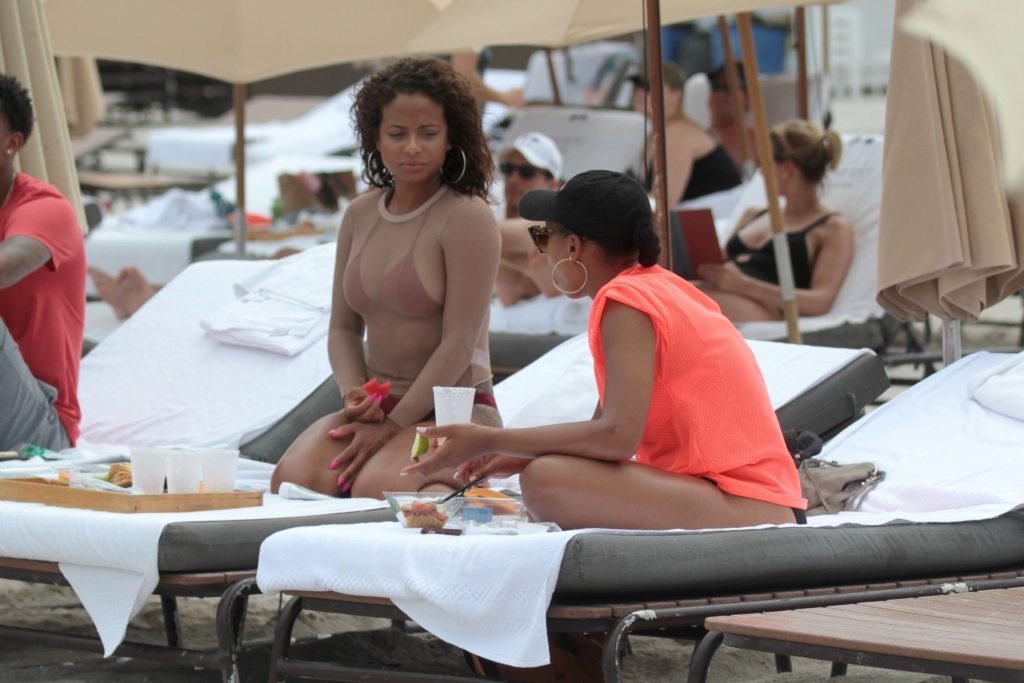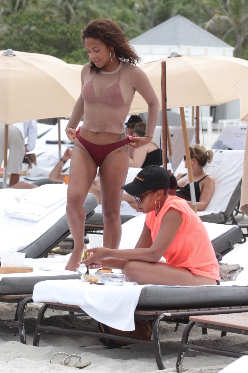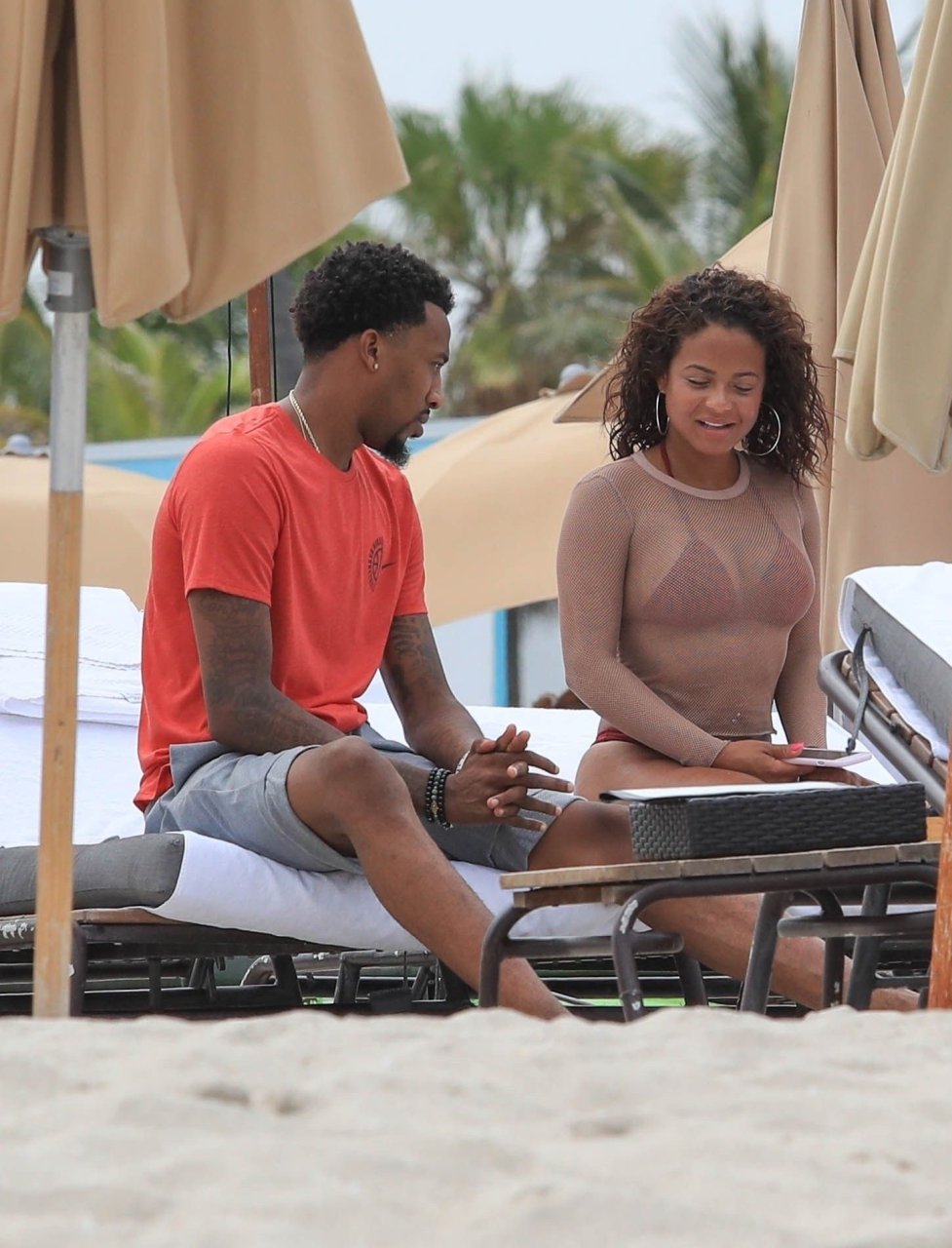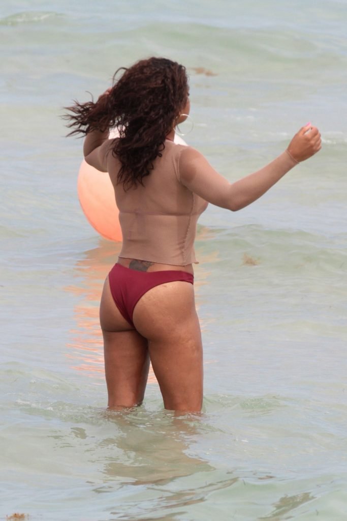 Cantante, cantautrice e attrice americana Christina Milian si gode la spiaggia in un bikini marrone, 22/07/2017.