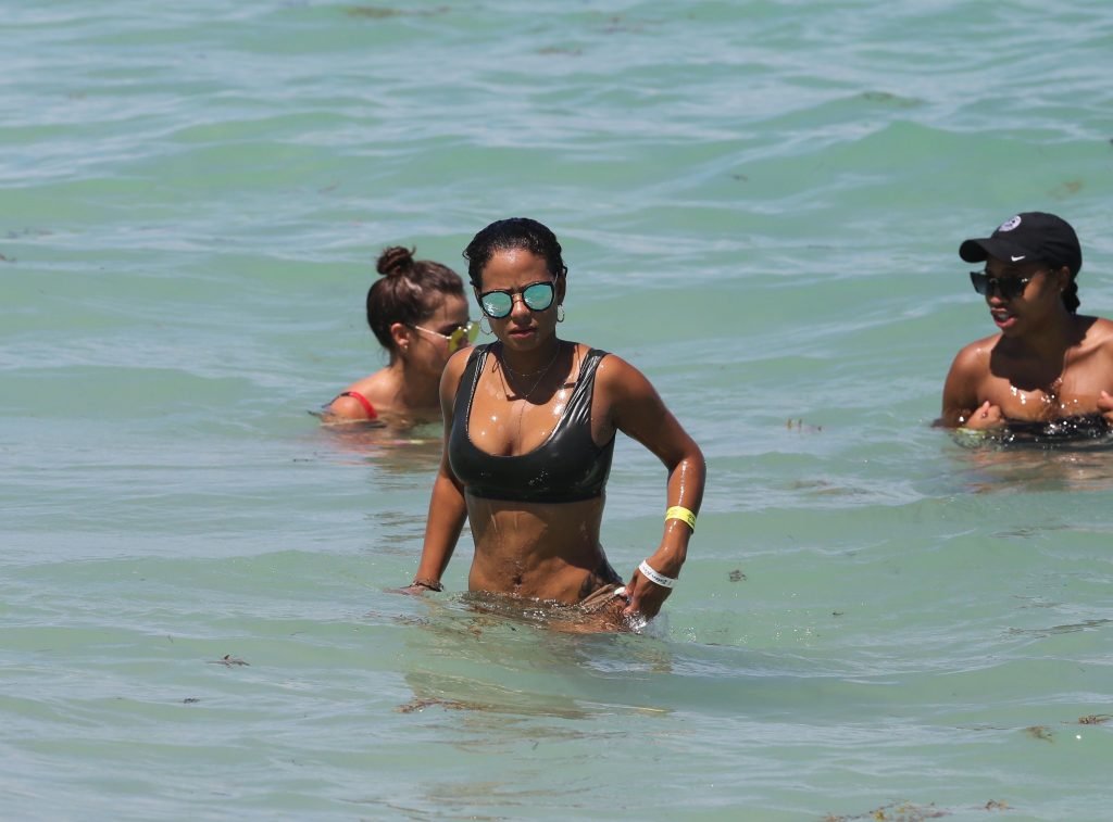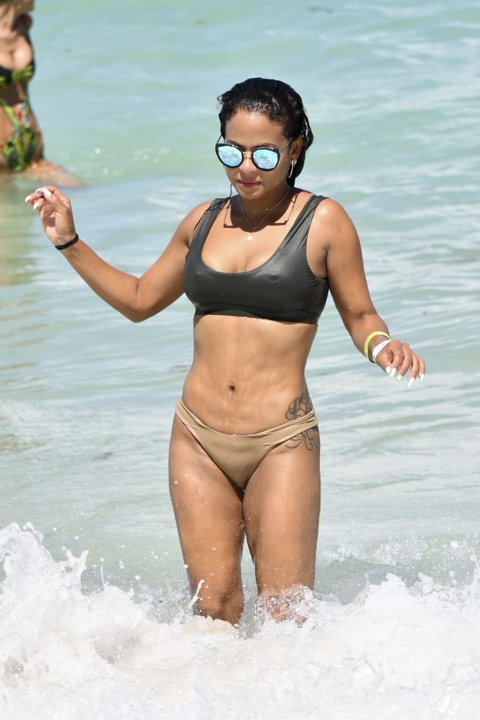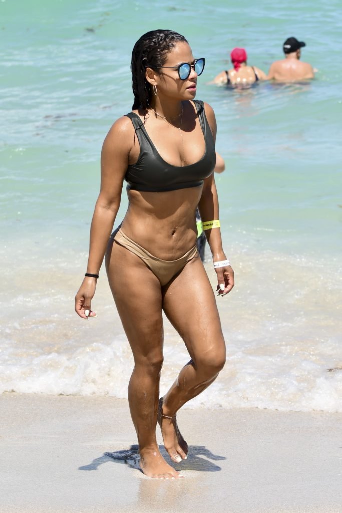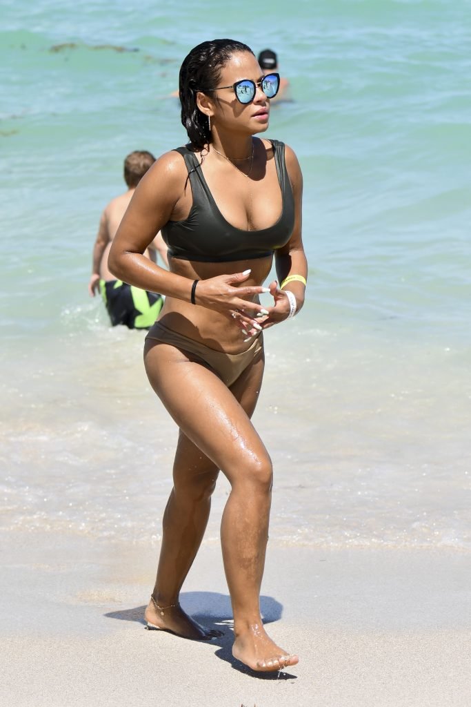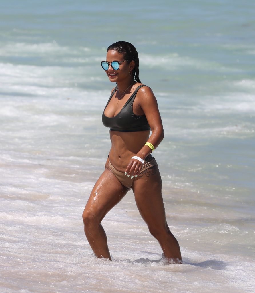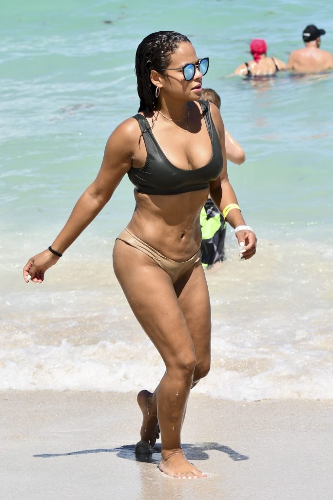 Christina Milian mostra il suo corpo sexy sulla spiaggia di Miami, 01/07/2017. Christina Milian è una cantante/autrice e attrice americana (East Los High, 2015). Età – 35.