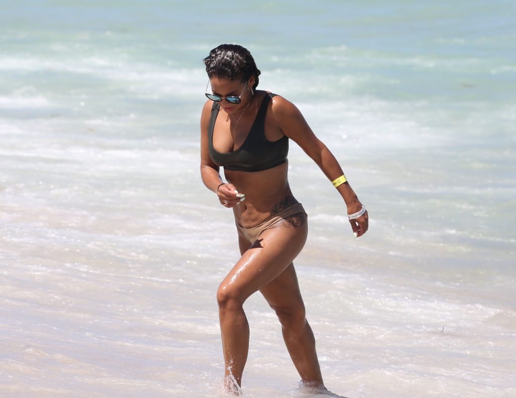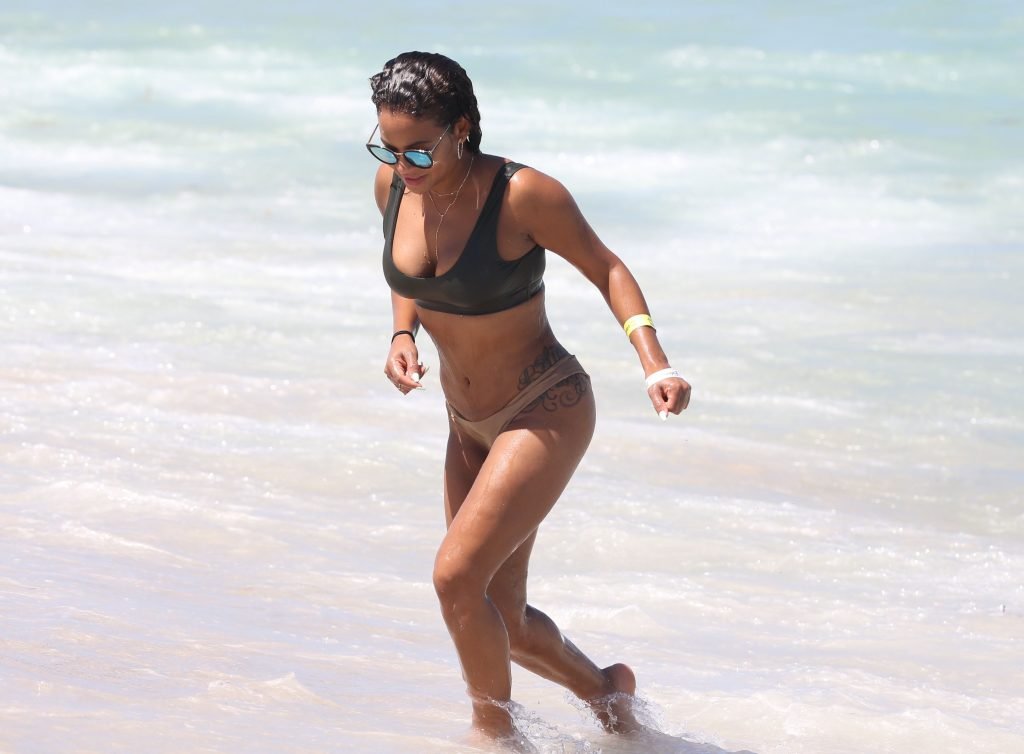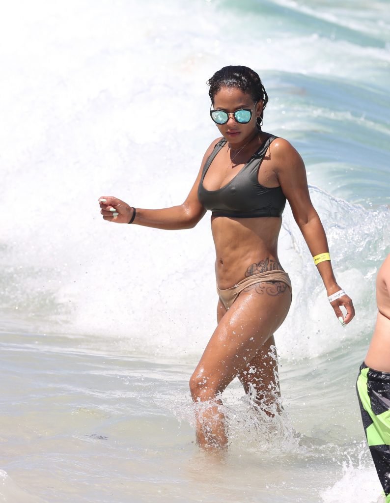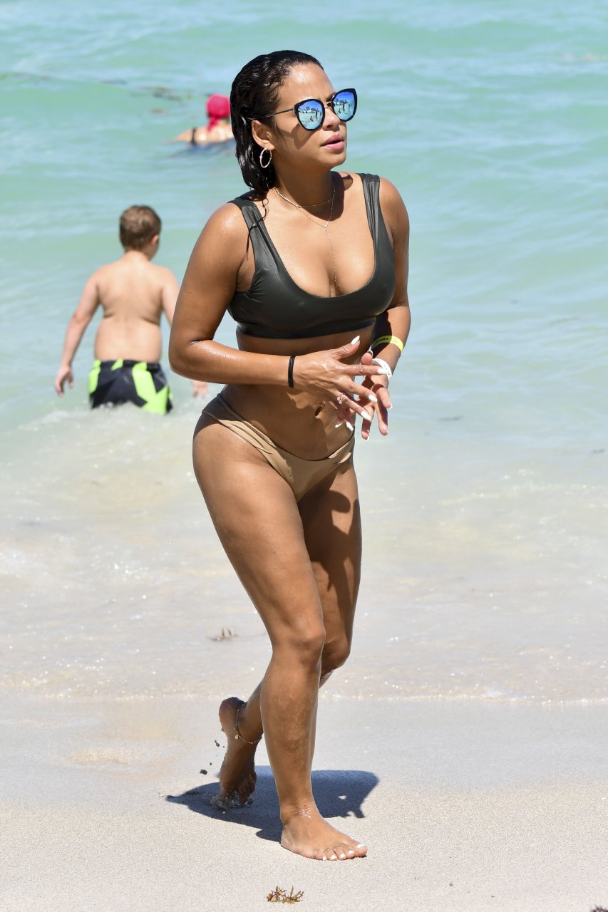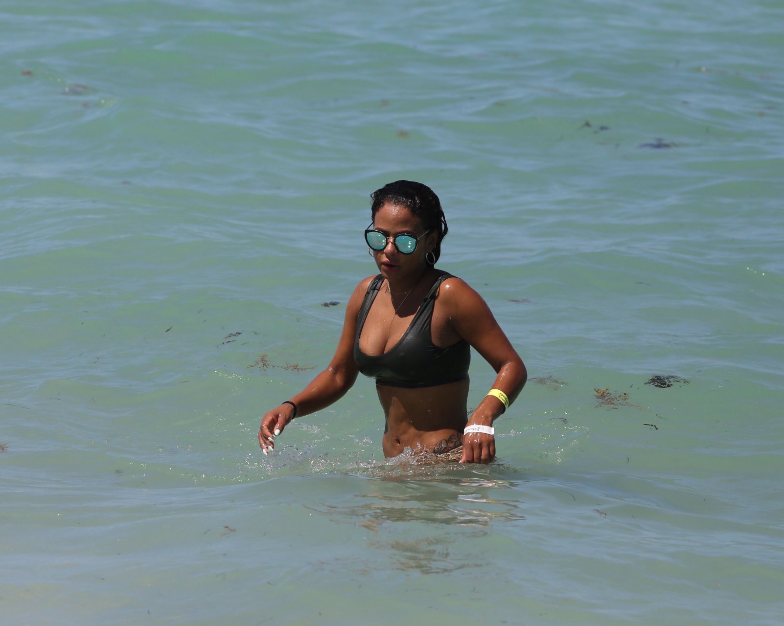 Christina Milian mostra il suo corpo sexy sulla spiaggia di Miami, 01/07/2017. Christina Milian è una cantante/autrice e attrice americana (East Los High, 2015). Età – 35.