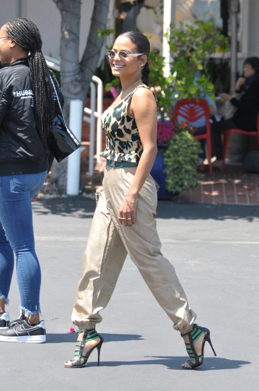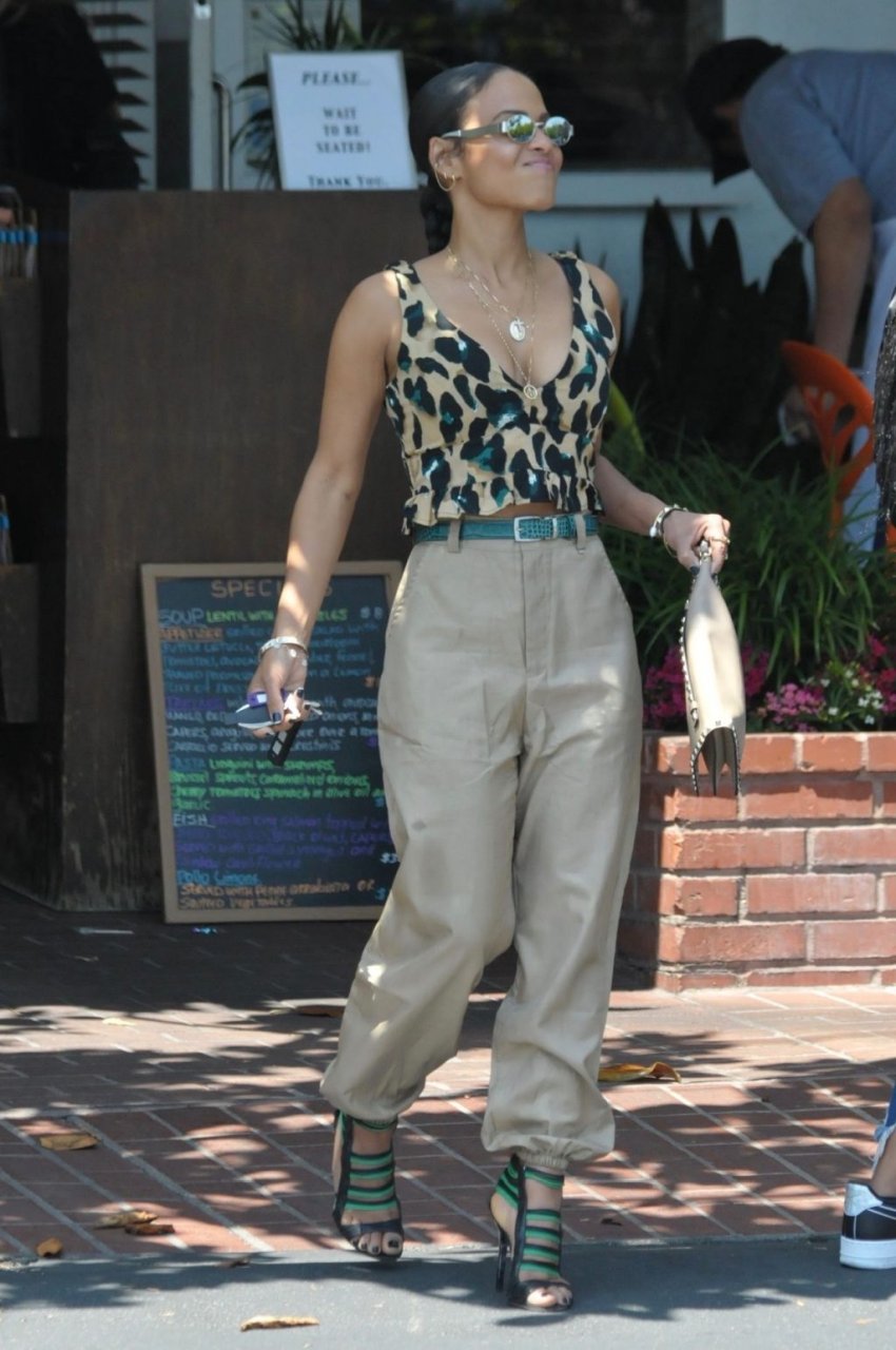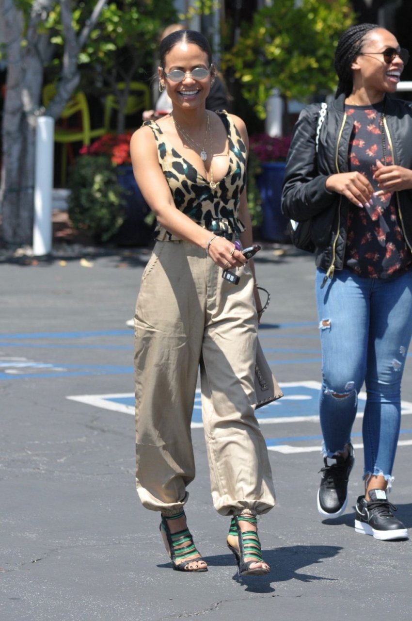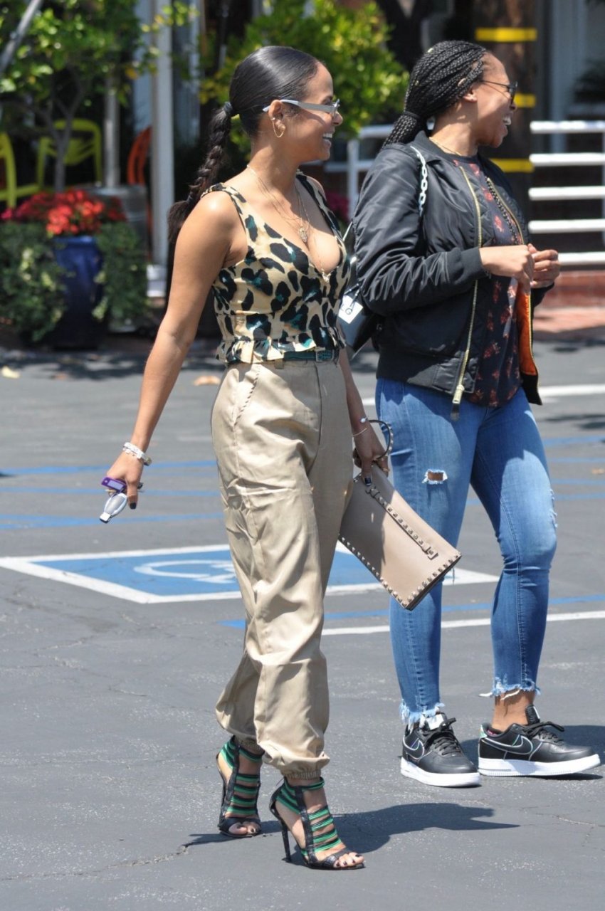 Christina Milian va a pranzo con amici in un elegante completo con stampa animalier da Fred Segal a West Hollywood, 28/05/2019.