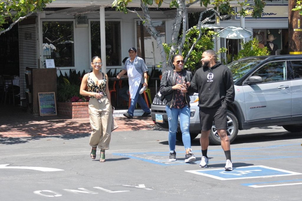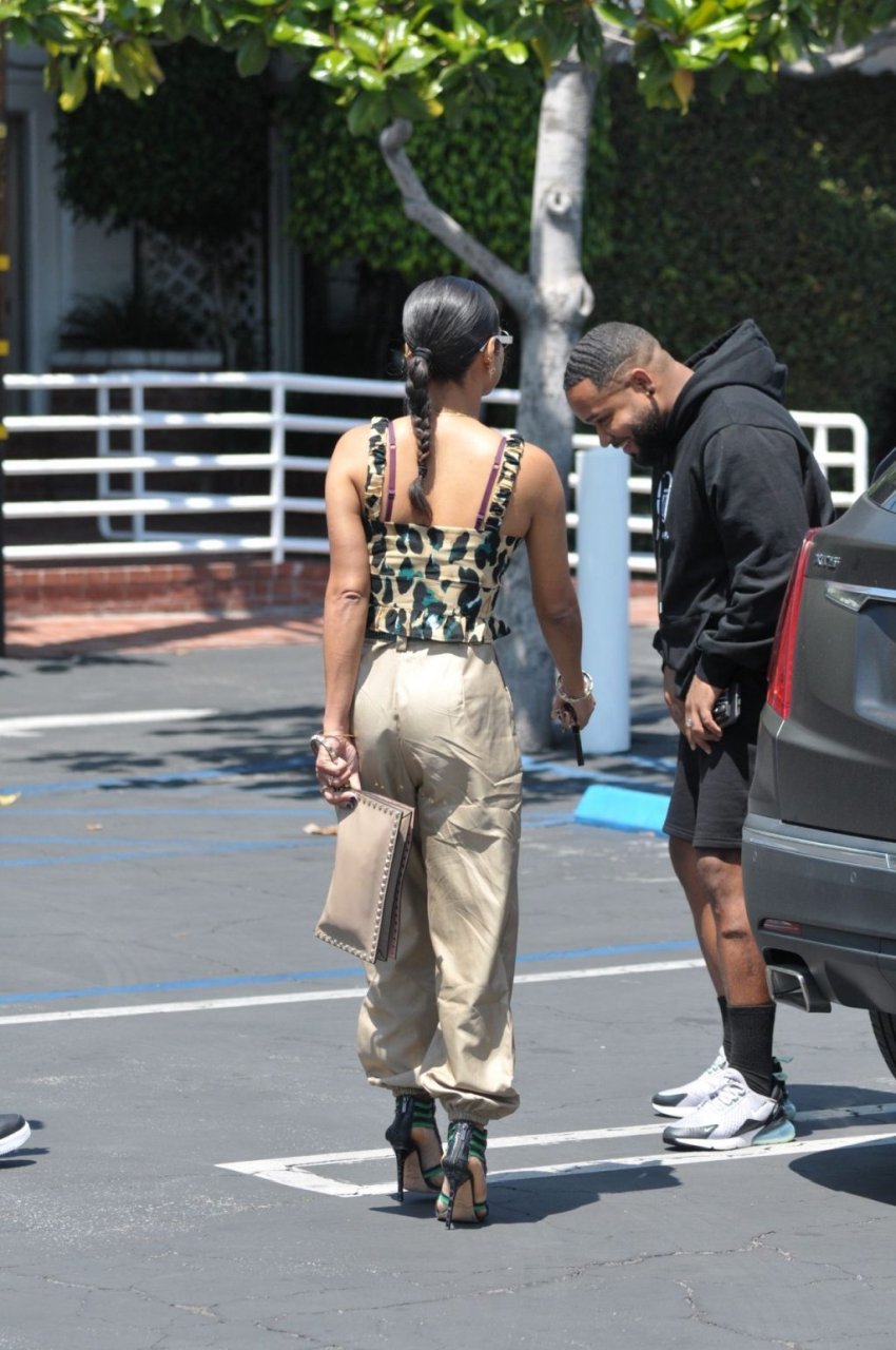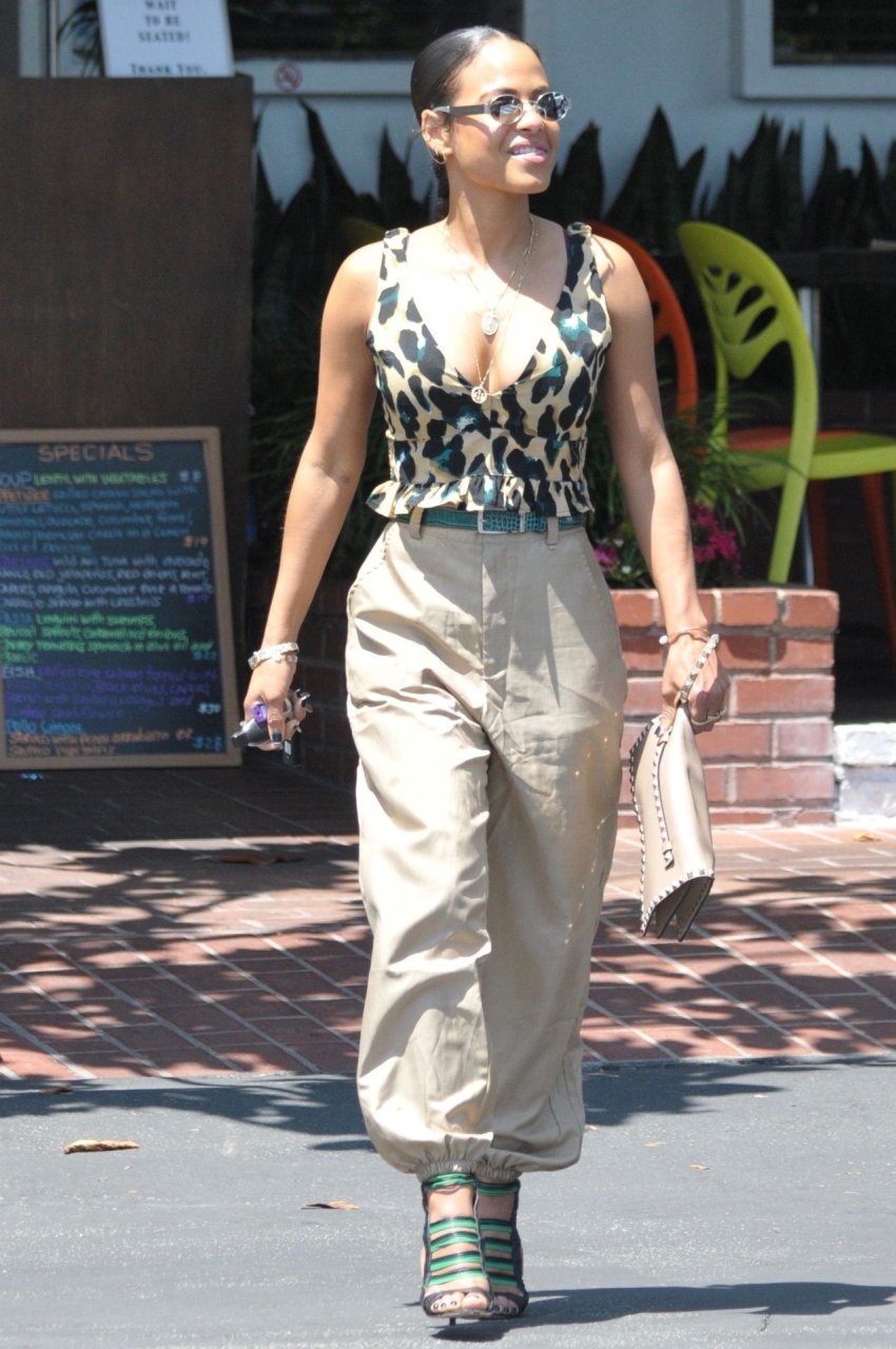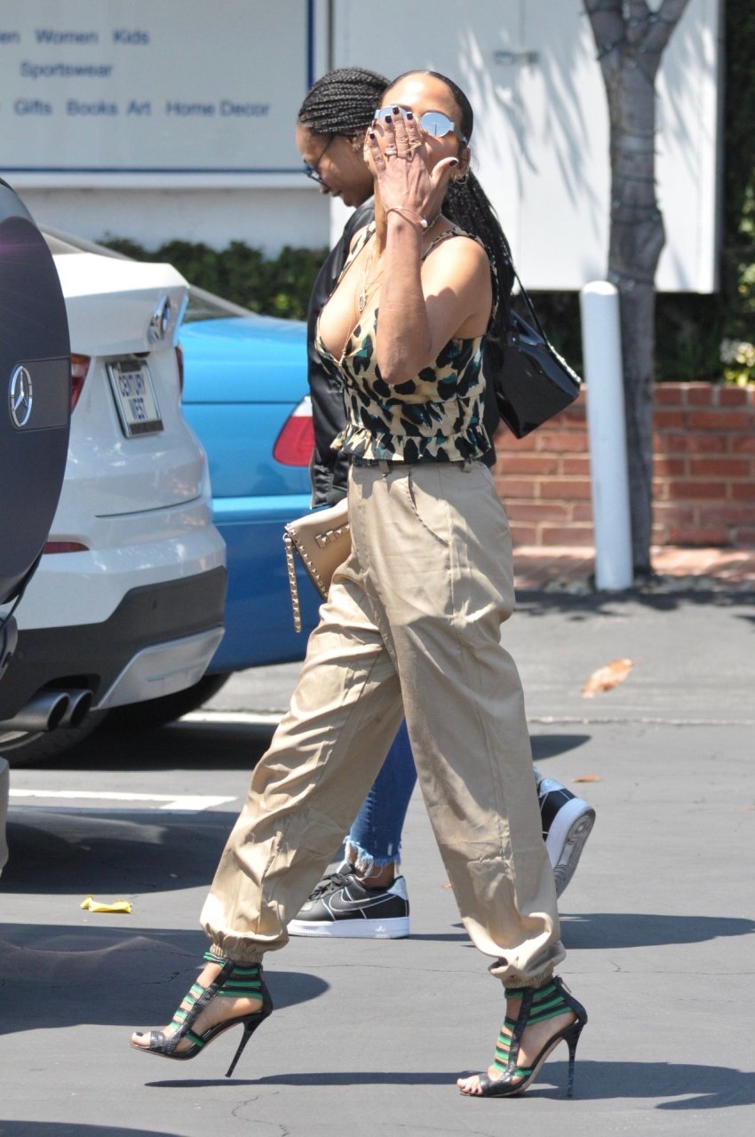 Christina Milian va a pranzo con amici in un elegante completo con stampa animalier da Fred Segal a West Hollywood, 28/05/2019.