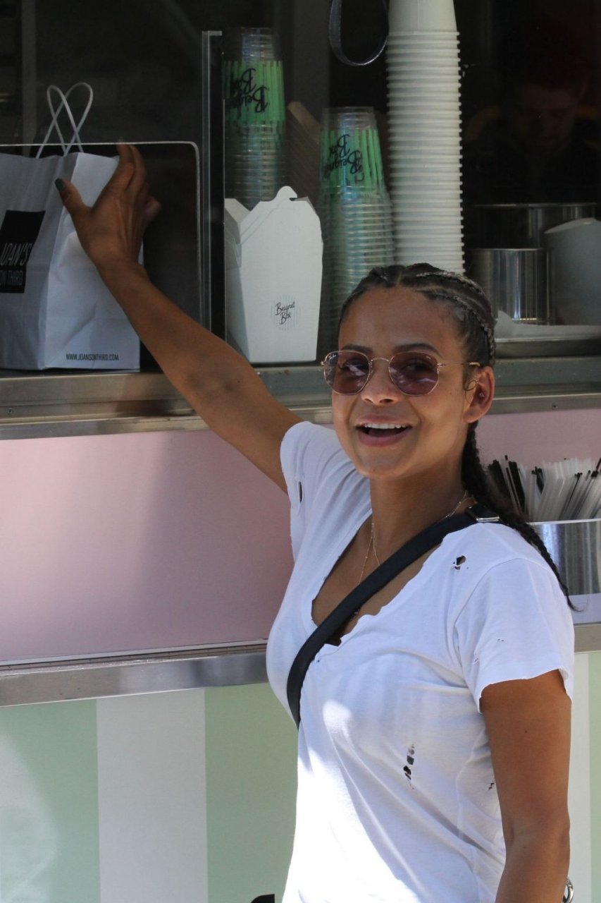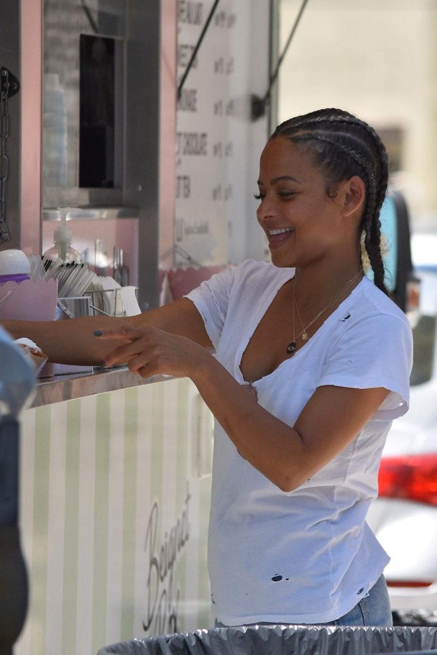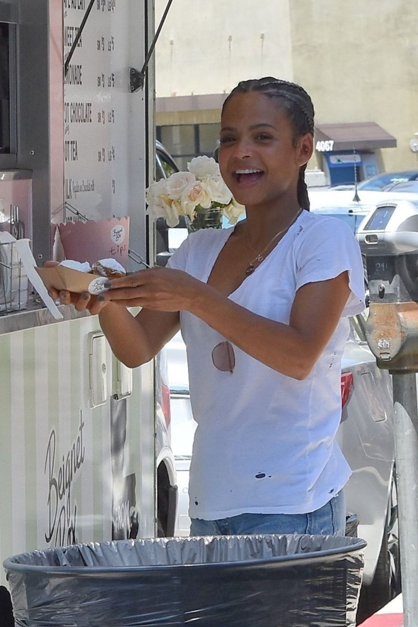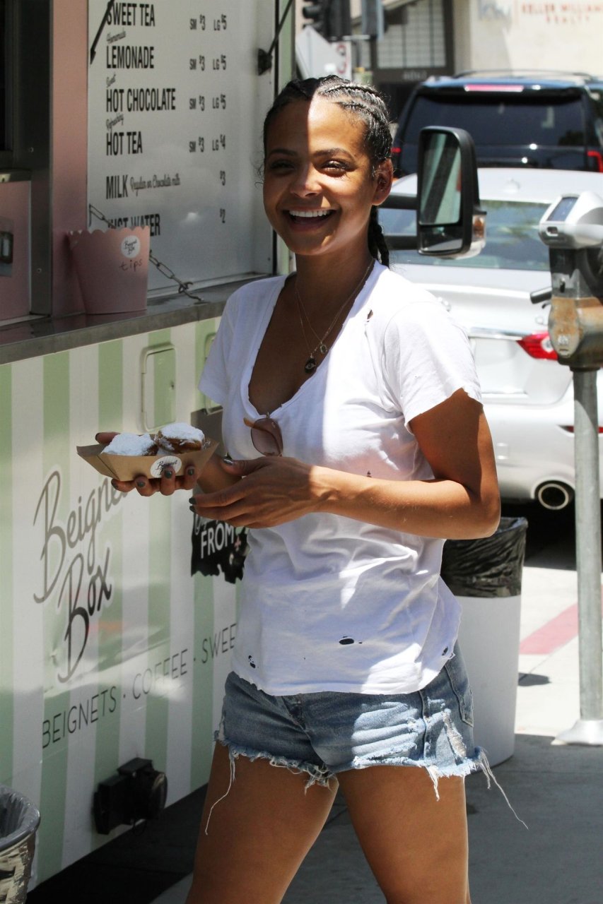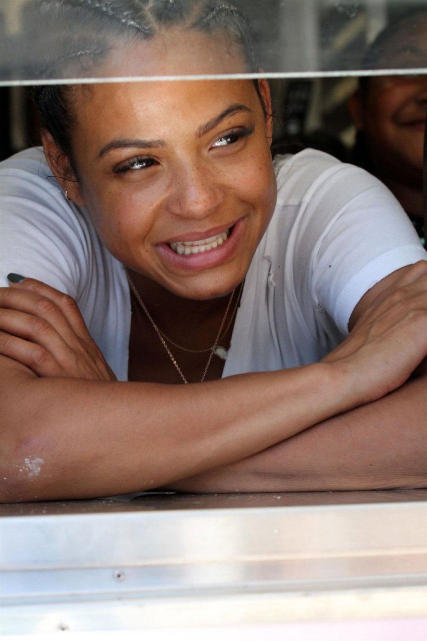 Attrice Christina Milian tutta sorridente mentre mostra le sue abilità con i dolci nella sua unità mobile Beignet Box a Studio City, 12/06/2019. Dopo il pranzo con sua figlia da Joan’s on Third, condivide alcuni dei suoi deliziosi Beignet con i fotografi.
