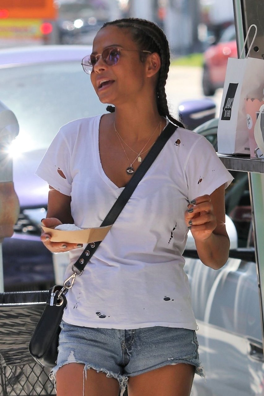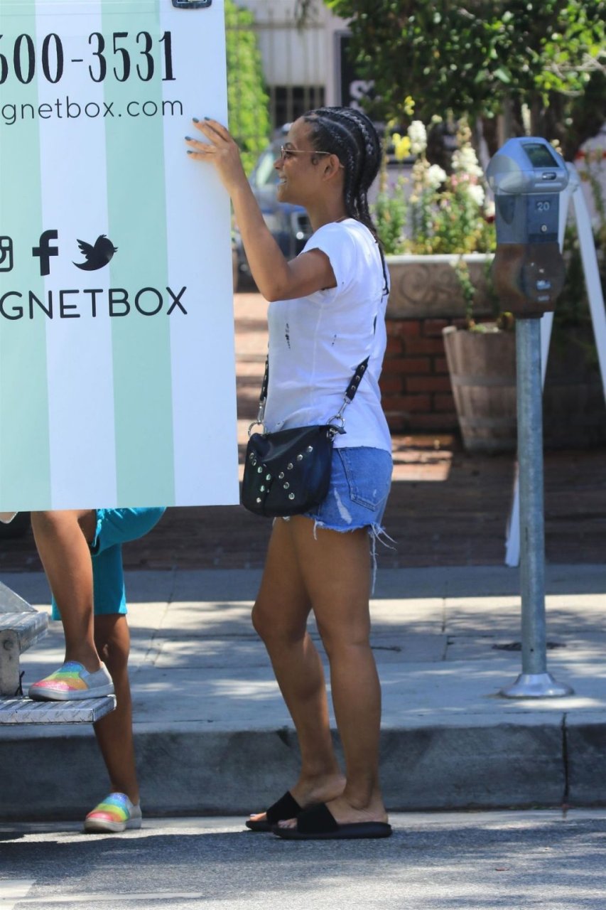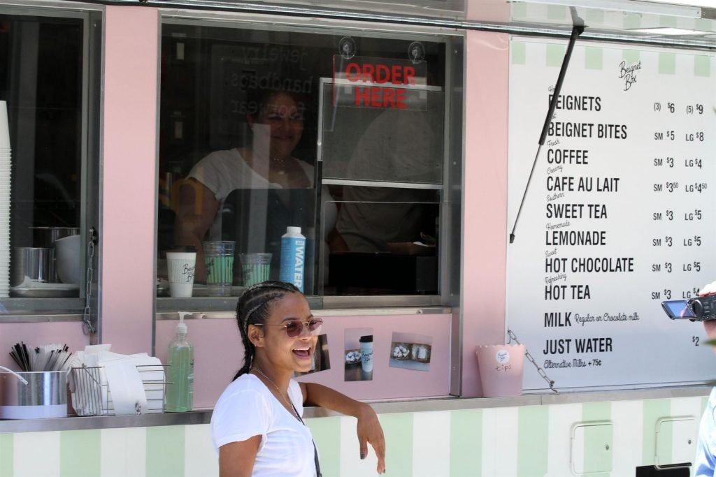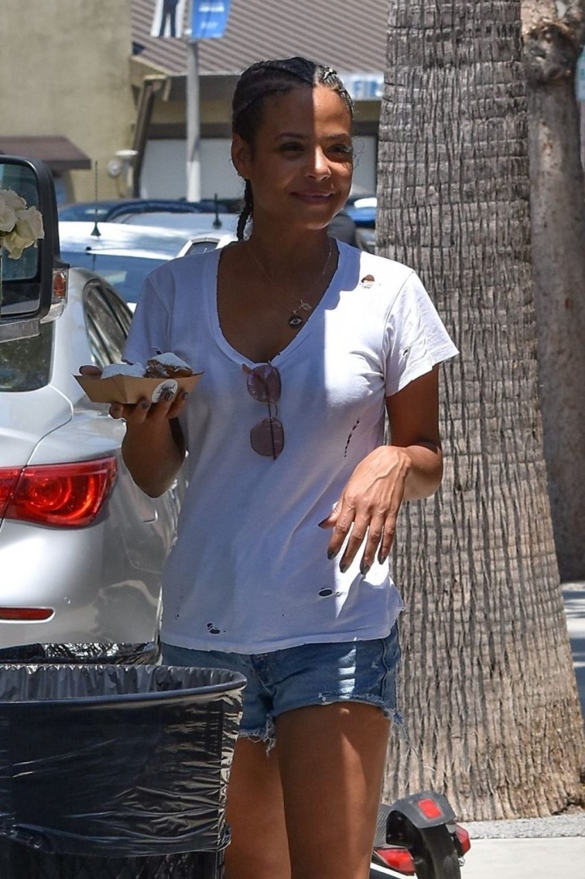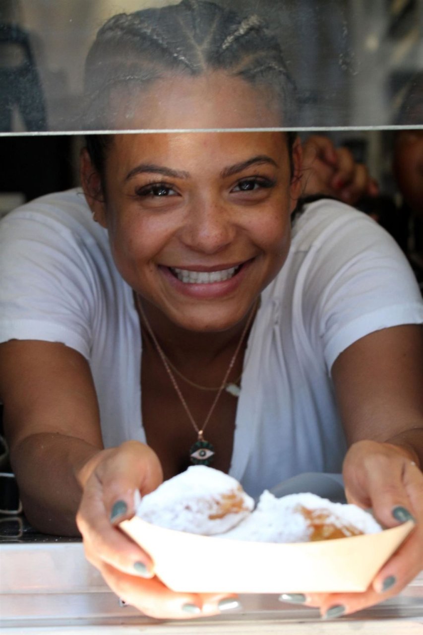 Attrice Christina Milian tutta sorridente mentre mostra le sue abilità con i dolci nella sua unità mobile Beignet Box a Studio City, 12/06/2019. Dopo il pranzo con sua figlia da Joan’s on Third, condivide alcuni dei suoi deliziosi Beignet con i fotografi.