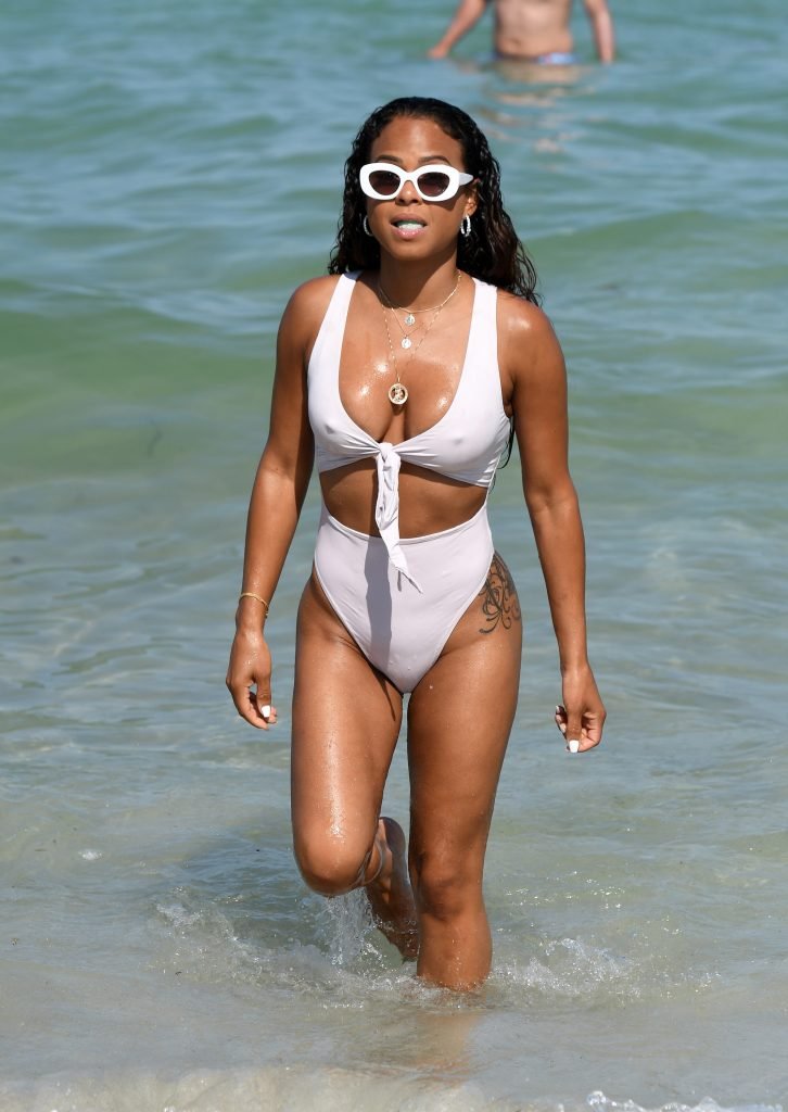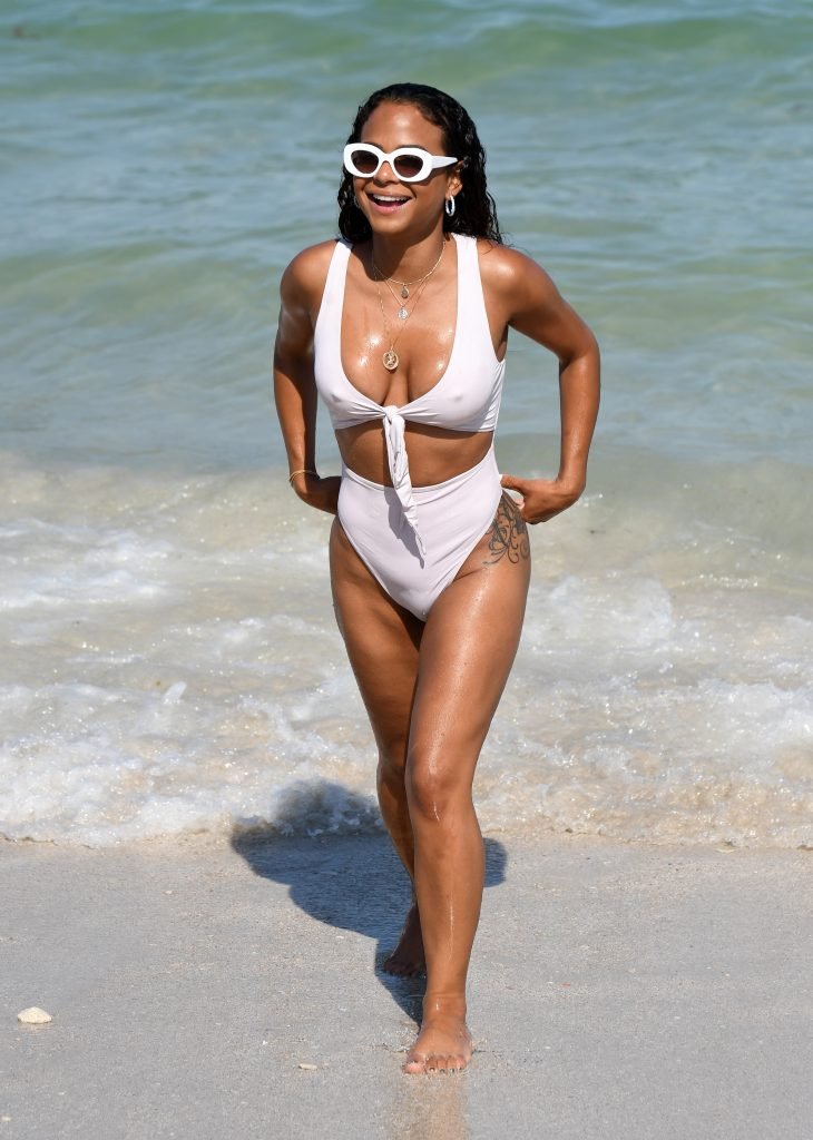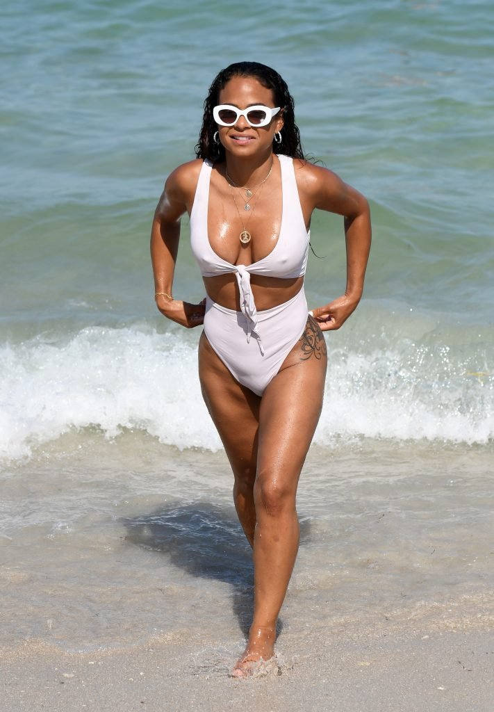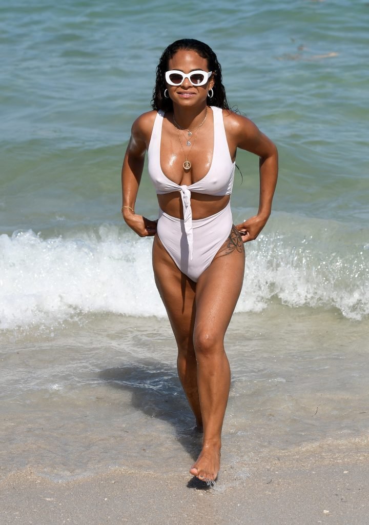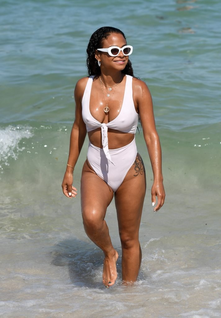La cantante americana Christina Milian ha perso peso e appare meglio. Il risultato del suo lavoro ha deciso di mostrarlo, arrivando in spiaggia a Miami con un bikini bianco, 29/04/2018. Presta attenzione al décolleté di Christina e al suo sedere!